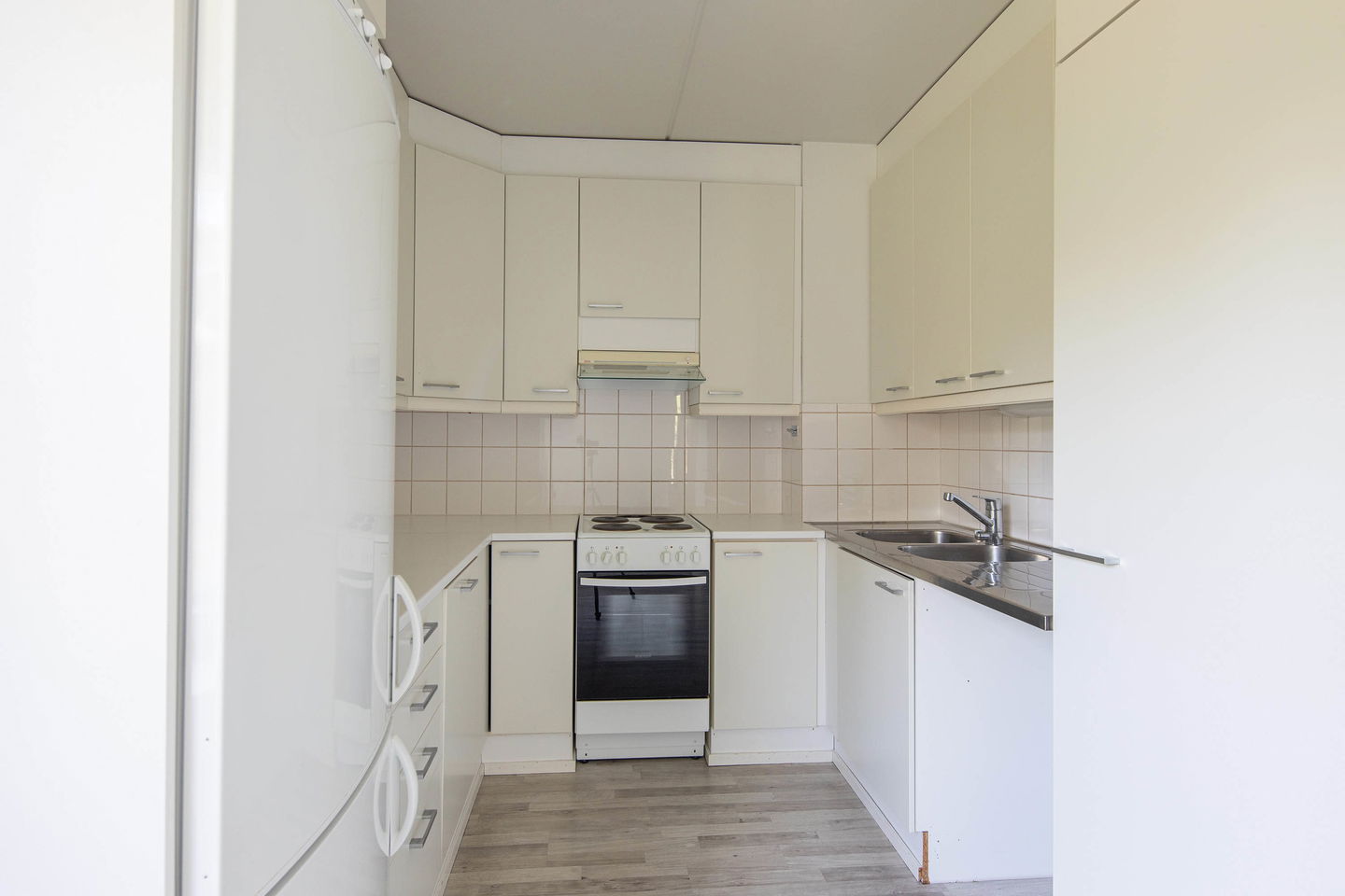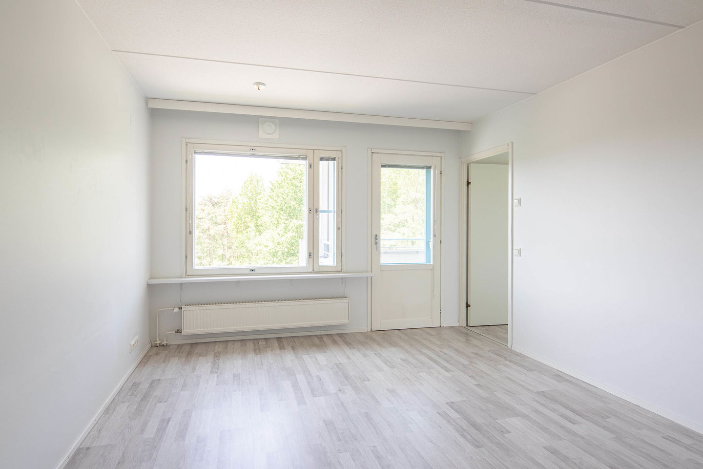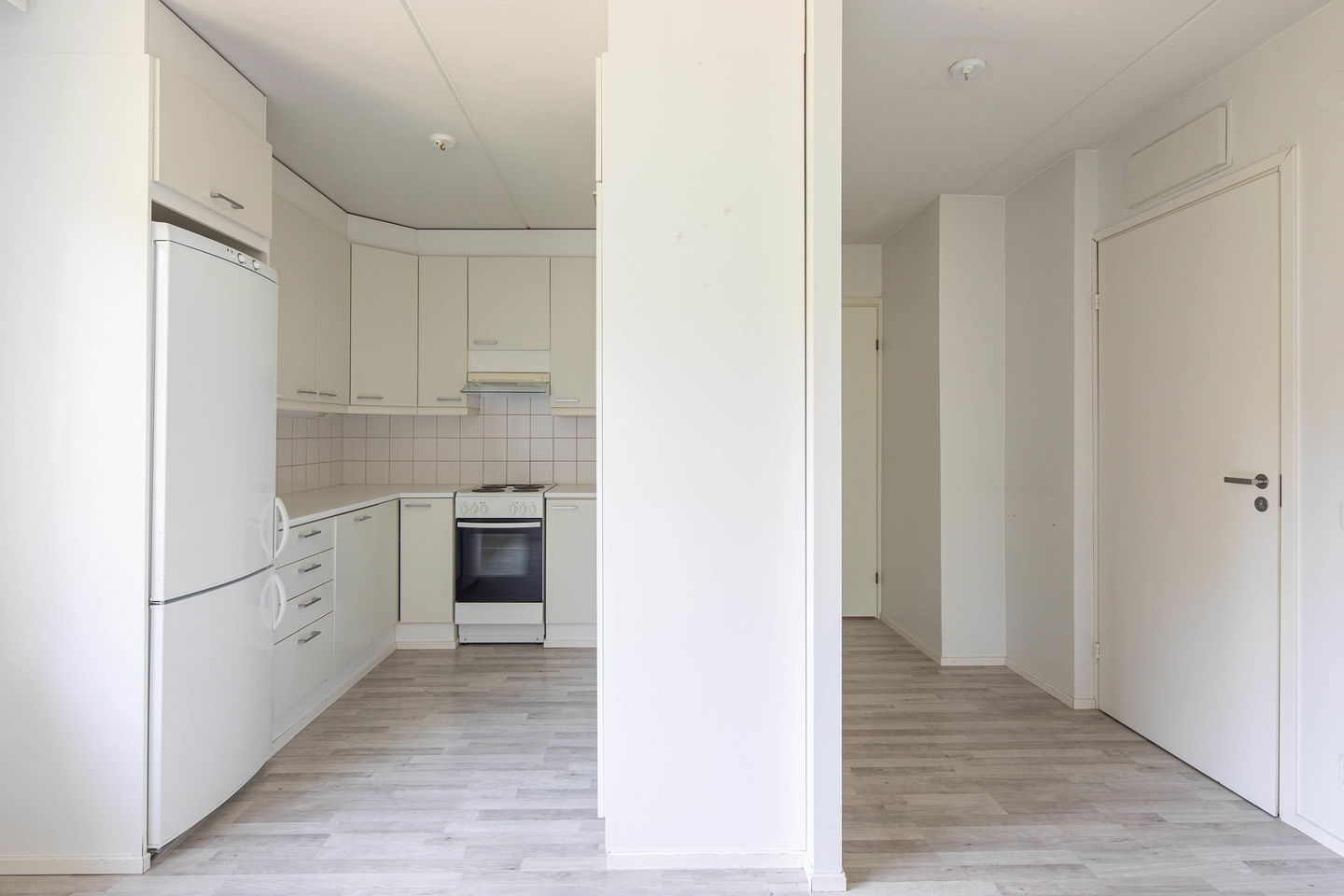 Keittiö tarjoaa runsaasti kaappi- ja työtilaa, ja se on sijoitettu käytännöllisesti lähelle olohuonetta. Olohuone on avara ja valoisa, ja se toimii kodin keskipisteenä.
