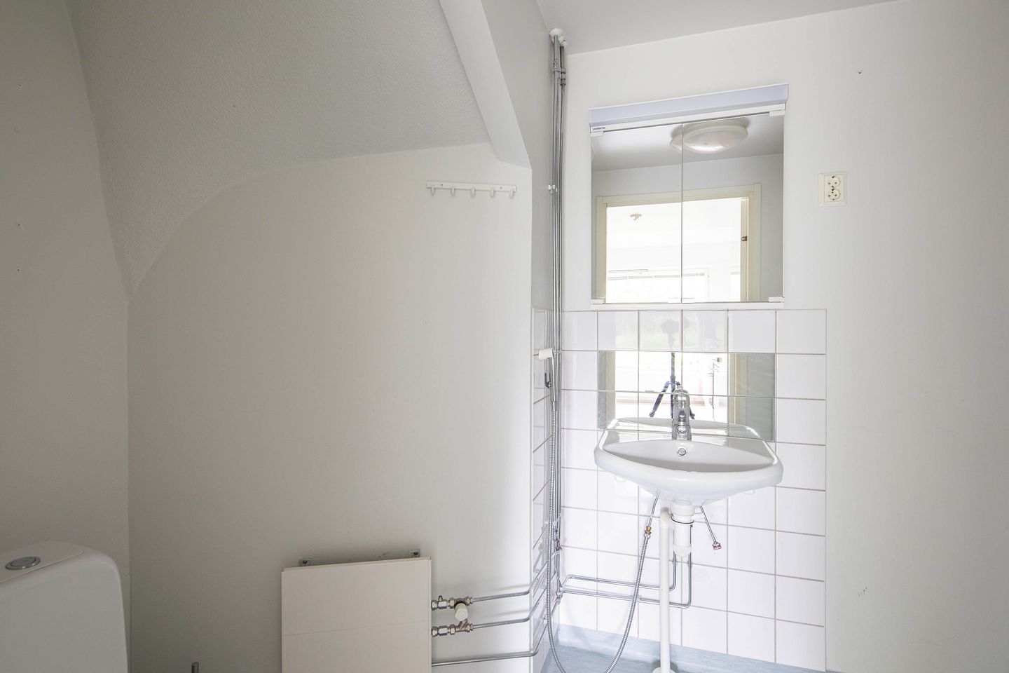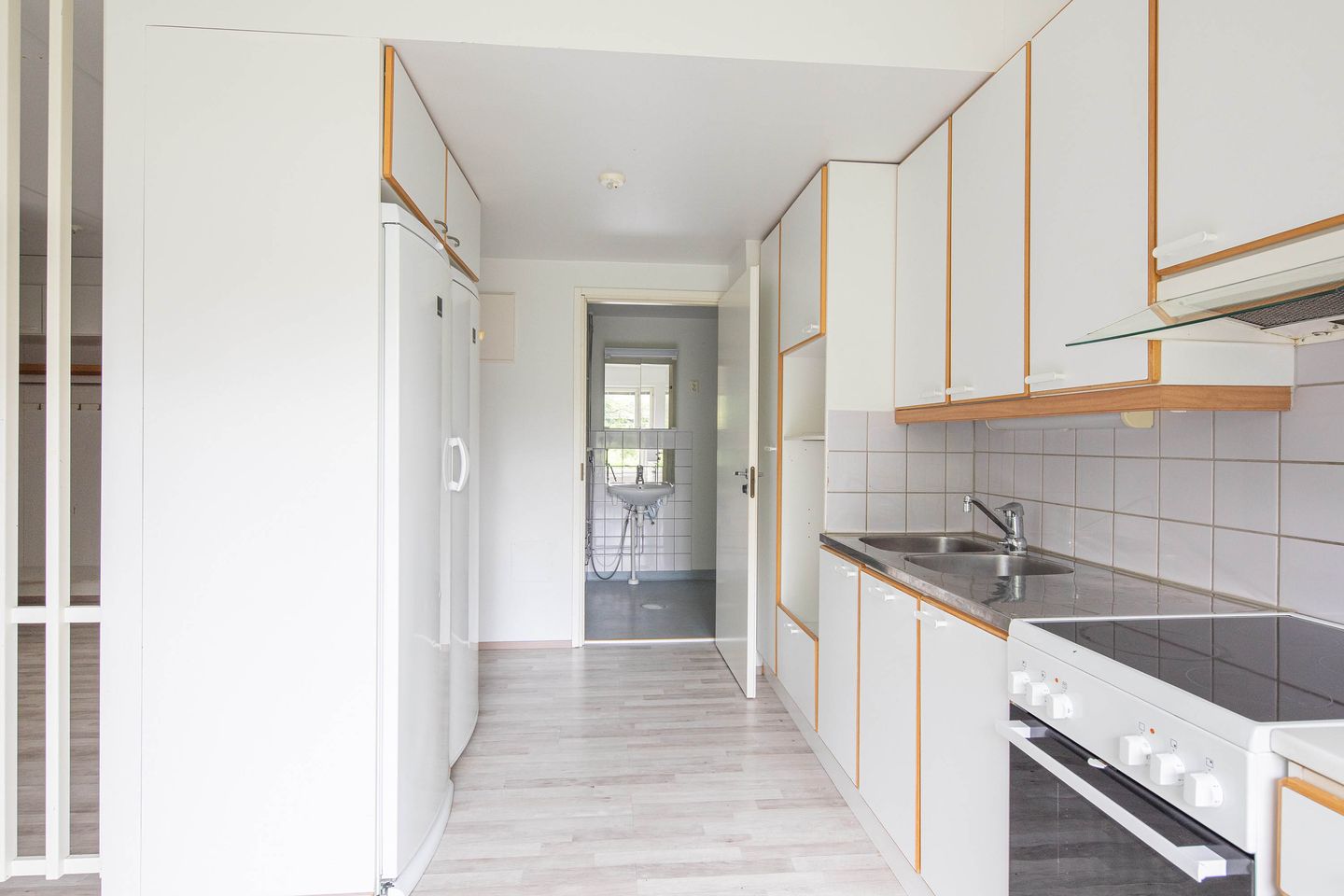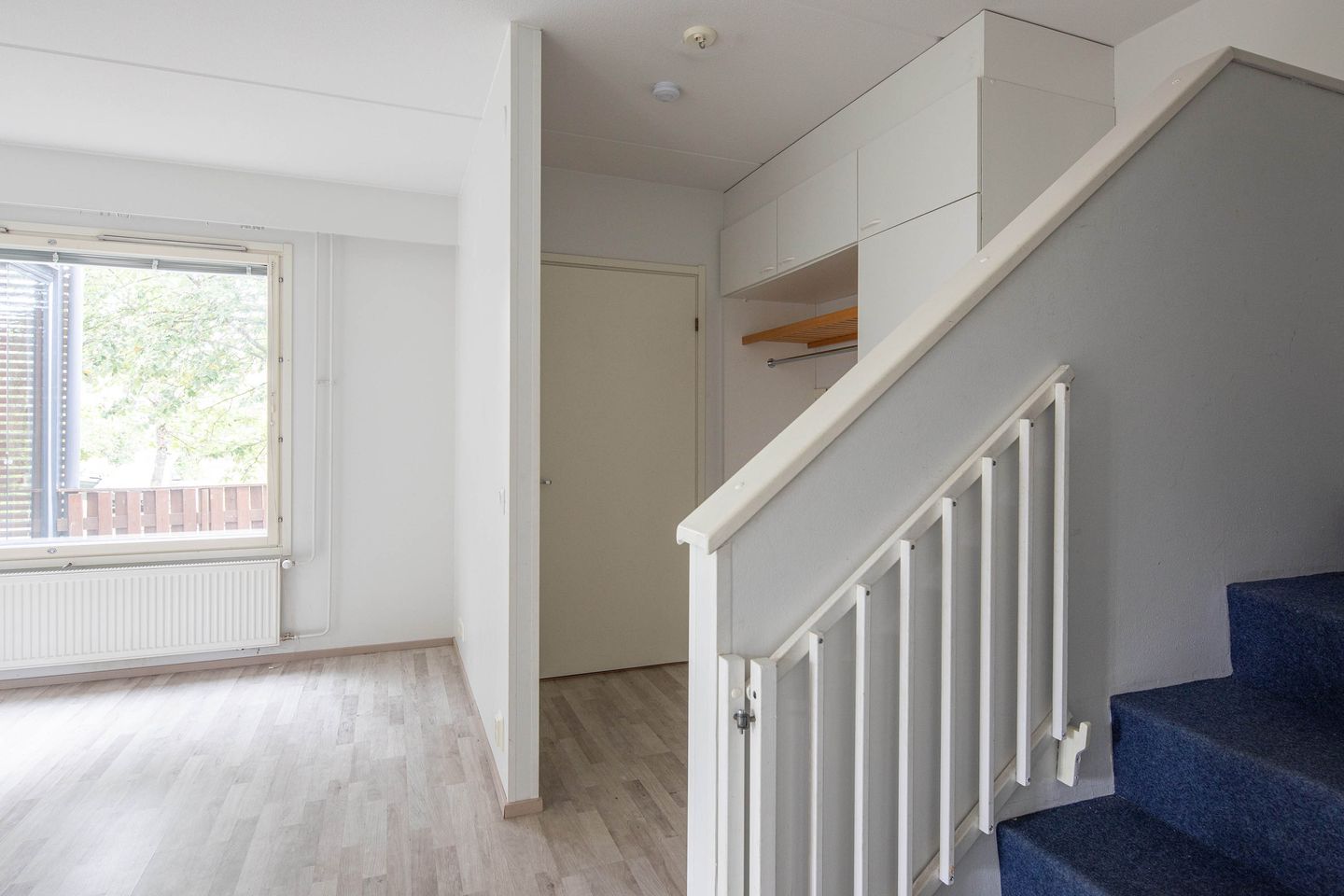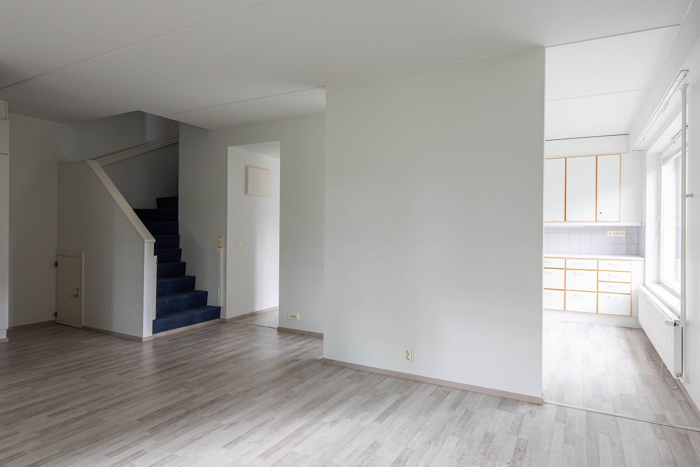 Tämä kaksikerroksinen huoneisto tarjoaa erinomaiset puitteet mukavaan ja käytännölliseen asumiseen. Alakerrassa sijaitsee avara olohuone, joka yhdistyy saumattomasti ruokailutilaan ja keittiöön. Keittiössä on runsaasti kaappi- ja laskutilaa. Lisäksi alakerrassa on erillinen WC ja kätevä varastotila portaiden alla.