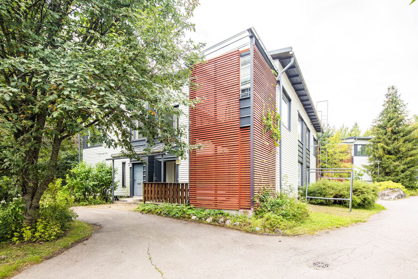 Rivitalokohde Helsingin Kivikossa, hyvien kulkuväylien äärellä. Kaikissa asunnoissa on oma sauna. Väljästi rakennettuja taloja, joiden väliin mahtuu puita ja pensaita.
