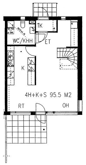 Tervetuloa tutustumaan tähän kaksikerroksiseen perheasuntoon. Alakerta toimii kodin sydämenä: avara olohuone yhdistyy saumattomasti ruokailutilaan ja keittiöön. Olohuoneesta pääsee suoraan suojaiselle takapihalle. Alakerrasta löytyy myös erillinen wc, kodinhoitotila