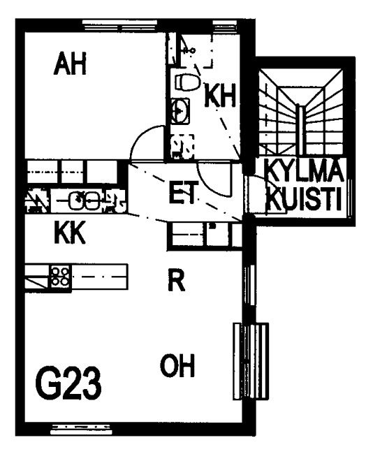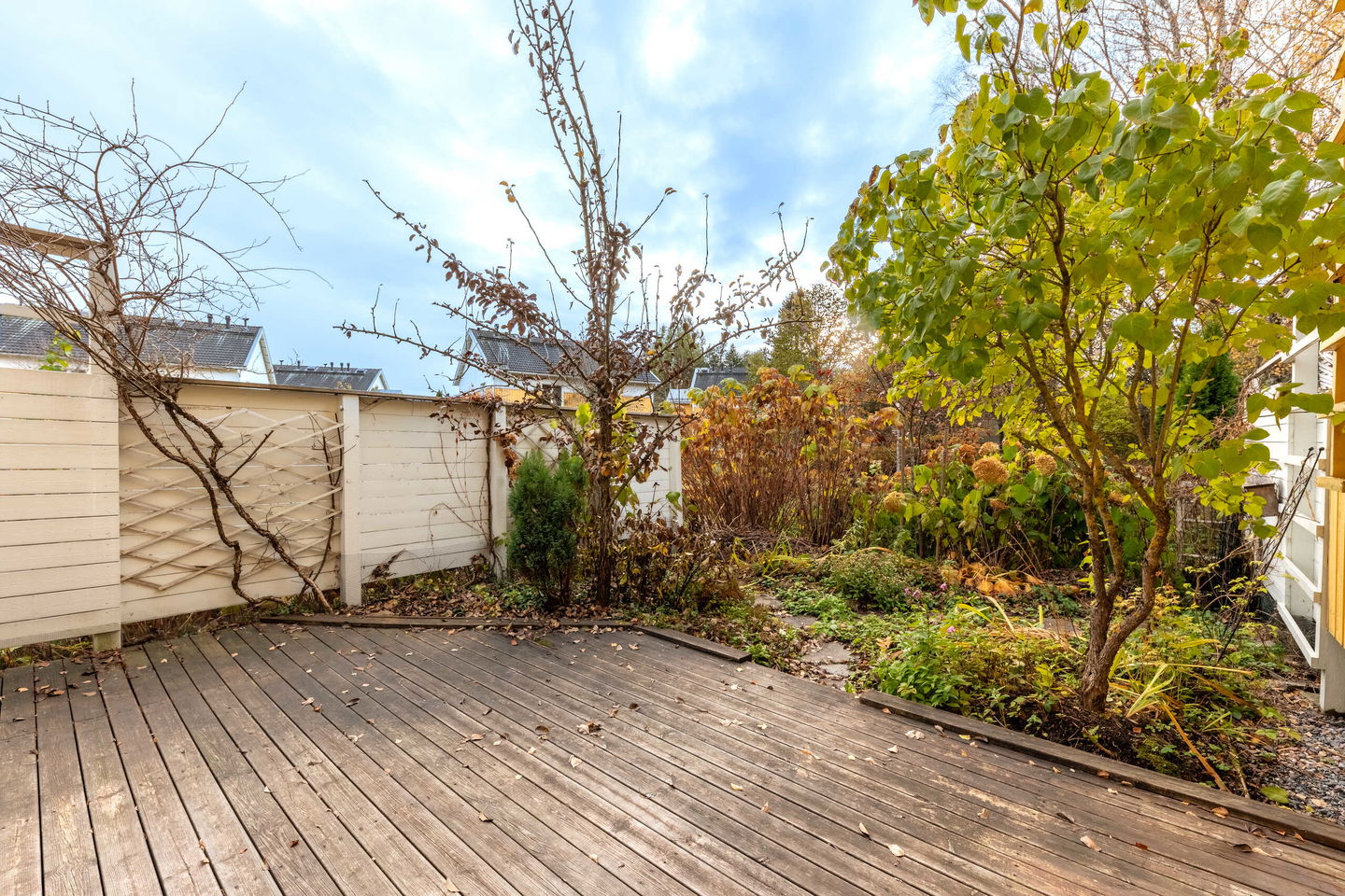 Kaksio omalla pienellä pihalla, jossa iso terassi ja paljon istutuksia. Asunnon piha sijaitsee 1. kerroksessa. Asunto sijaitsee 2. kerroksessa.