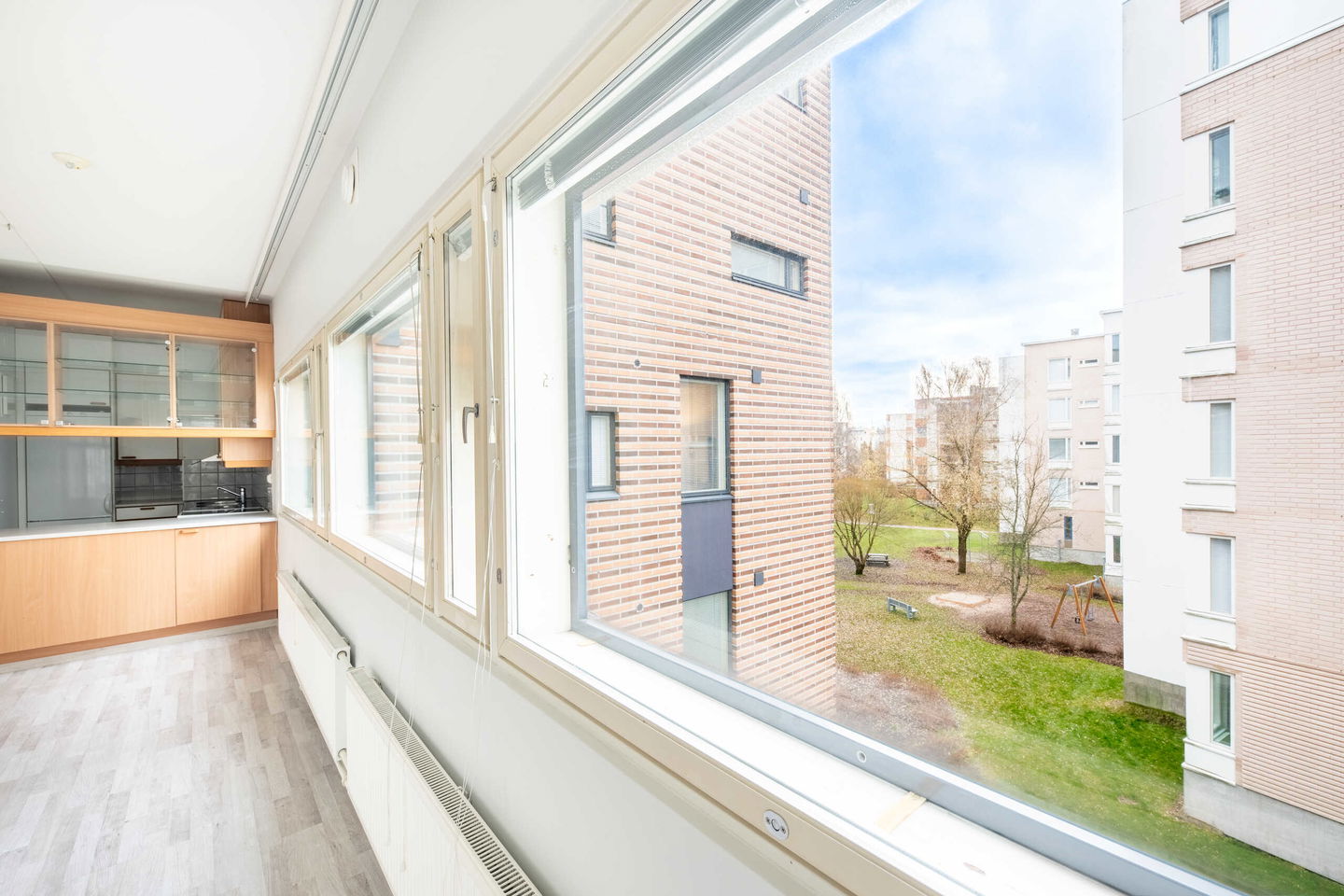 Viihtyisällä Veräjälaakson alueella sijaitseva kerrostalo. Rauhallinen sijainti päättyvän tien päässä. Vieressä vehreä siirtolapuutarha-alue. Noin 15 min kävelymatka joko Oulunkylän tai Pukinmäen juna-asemalle. Bussin 65 päätepysäkki kivenheiton päässä kohteesta.