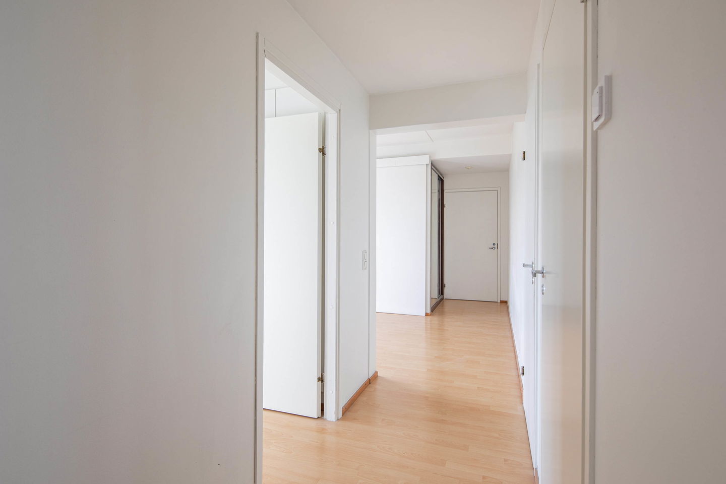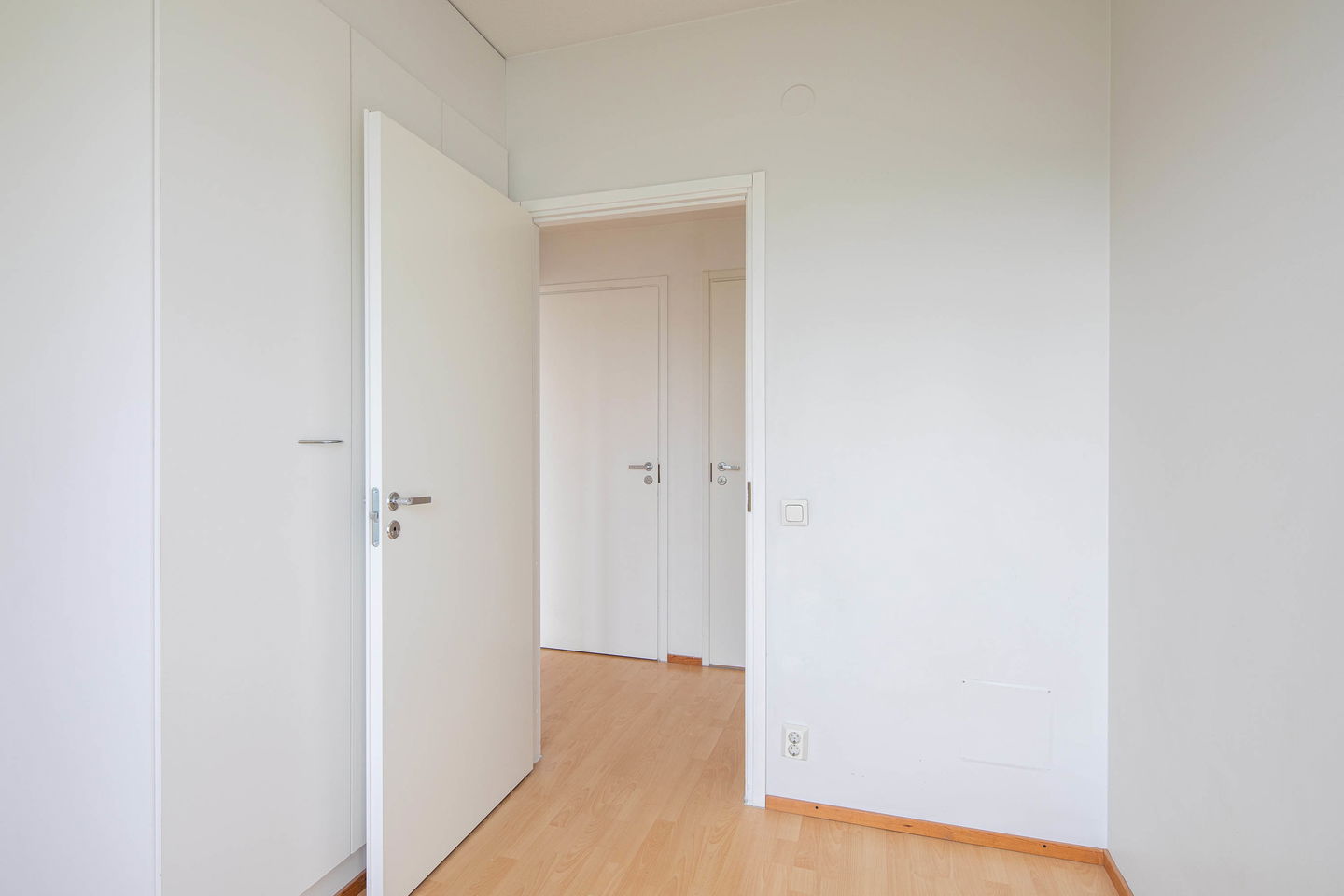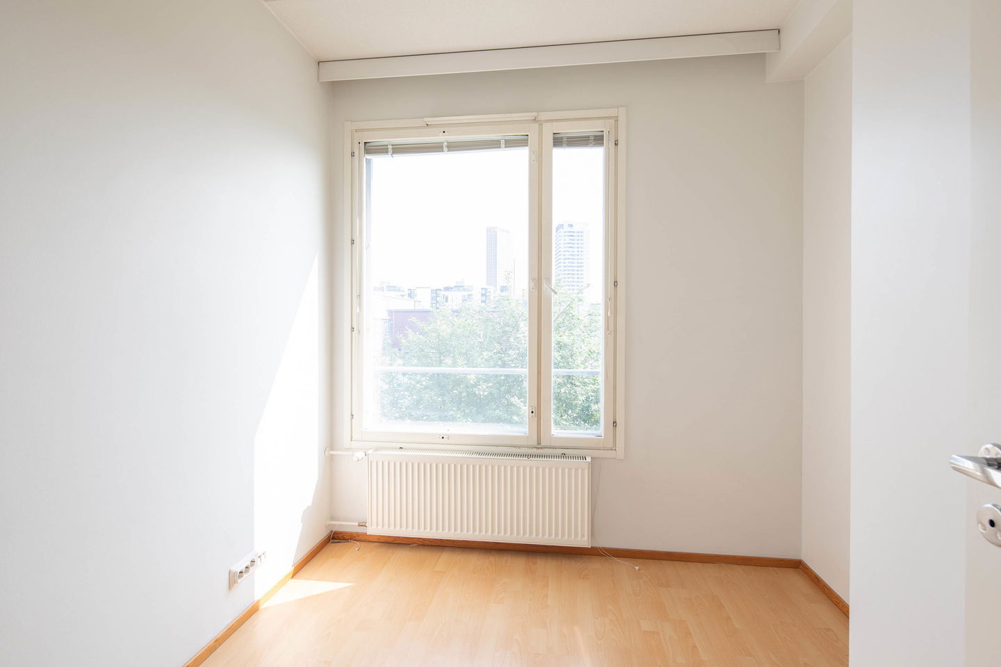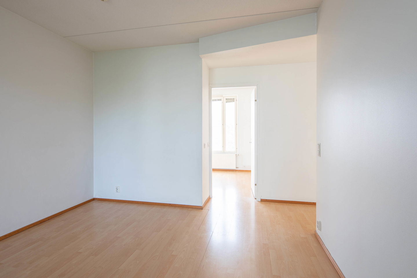 Kodissa on erillinen keittiö, johon mahtuu ruokapöytä, sekä tilava olohuone, josta on kulku lasitetulle parvekkeelle. Kaksi makuuhuonetta sijoittuvat vierekkäin, ja molemmissa on vaatekaapit säilytystilaa varten. Asunnossa on erillinen WC sekä kylpyhuone, jossa tilaa myös pesukoneelle.
