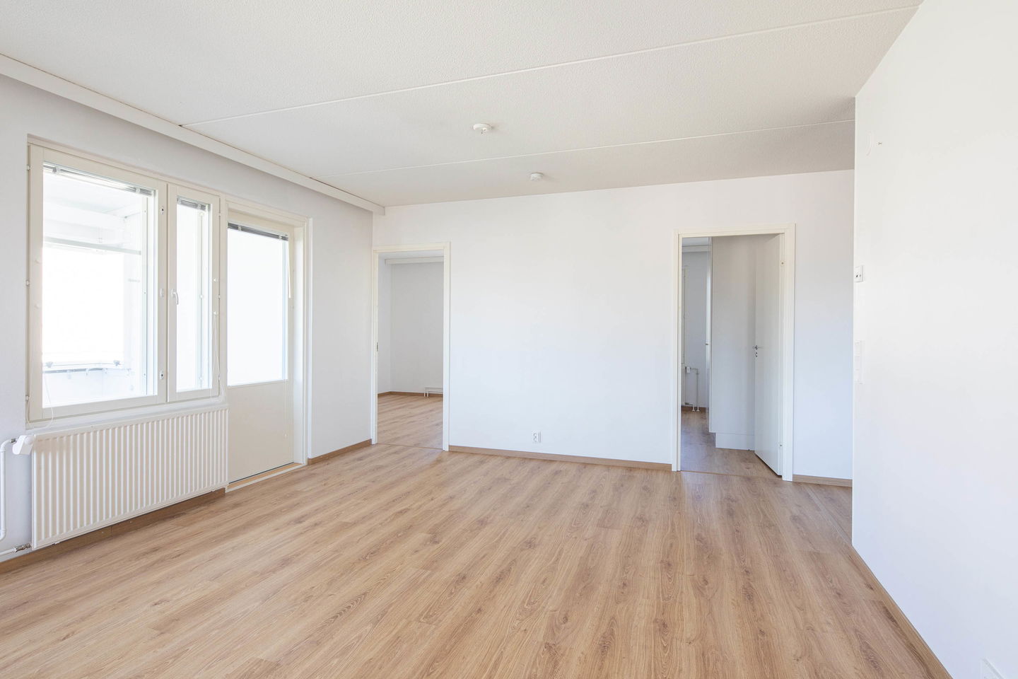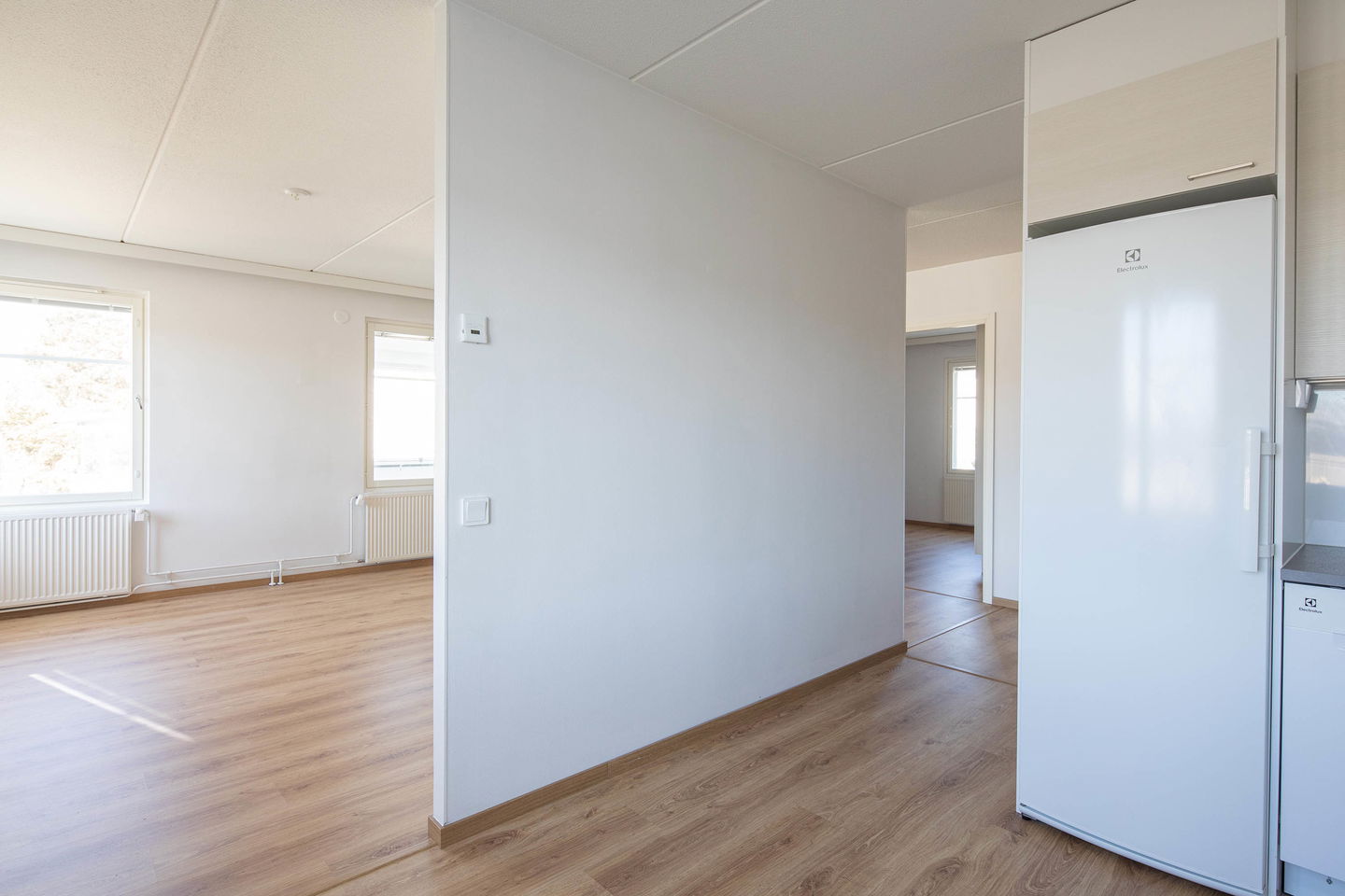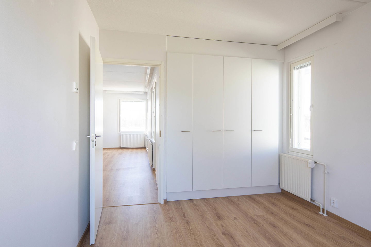 Asunnossa on kolme makuuhuonetta, jotka sijoittuvat rauhallisesti omalle alueelleen, tarjoten yksityisyyttä ja tilaa perheen tarpeisiin.