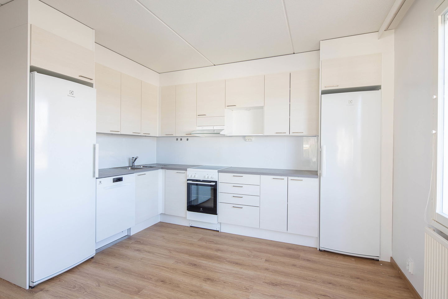 Avara olohuone yhdistyy keittiöön muodostaen suuren yhtenäisen oleskelutilan, joka sopii mainiosti yhdessäoloon ja arjen sujuvuuteen. Keittiössä on hyvin työskentelytilaa ja säilytysratkaisuja. Asunnossa on erillinen WC sekä tilava kylpyhuone, jossa on oma sauna. Lisäksi eteistilassa on käytännölliset säilytysratkaisut. Asuntoon kuuluu myös lasitettu parveke, joka tuo lisätilaa ja mahdollisuuden nauttia ulkoilmasta.