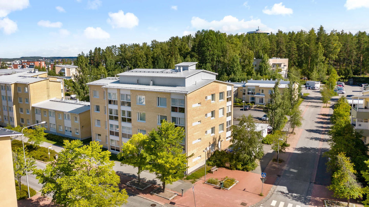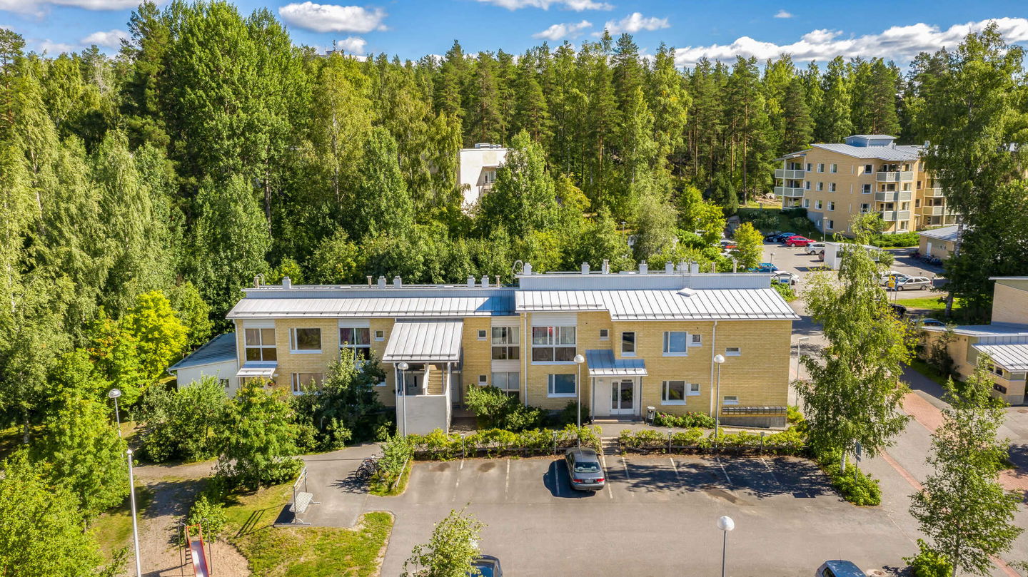 Jyväsjärvi rantaraitteineen muutaman sadan metrin päässä. Läheltä löytyy koulu, perhepuisto, useampi ruokakauppa, liikuntapaikkoja ja koirapuisto.