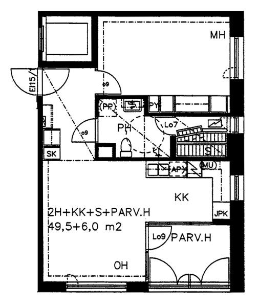 55,5 m2, 2H+K+S+PARV.H