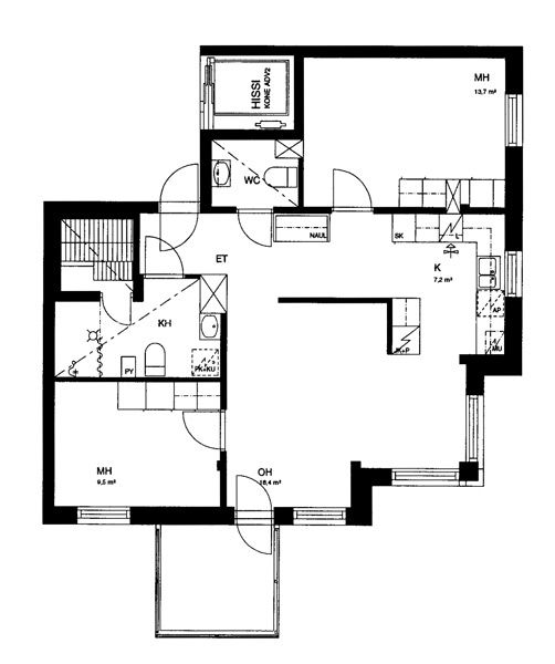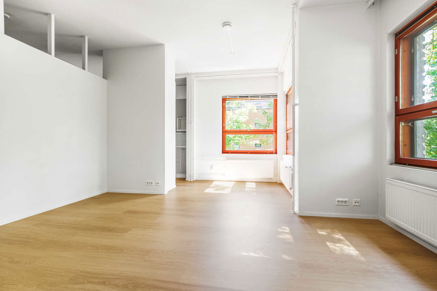 Tämä hyvin suunniteltu ja valoisa kolmio sijaitsee talon 2. kerroksessa, ja talossa on hissi, mikä tekee arjesta sujuvaa. Kulmahuoneiston ansiosta luonnonvalo kulkee läpi asunnon useasta suunnasta, ja tilat tuntuvat avarilta.