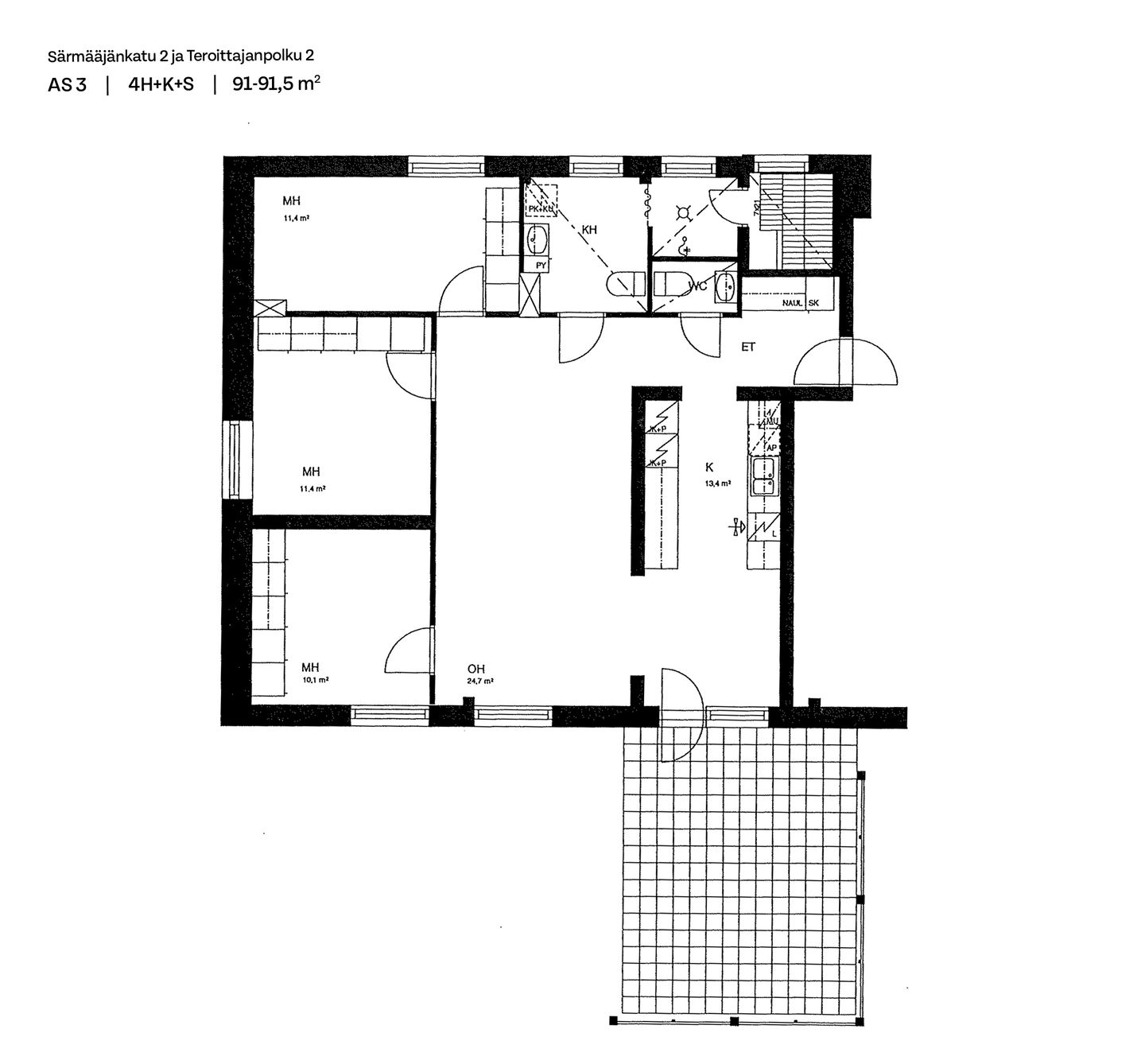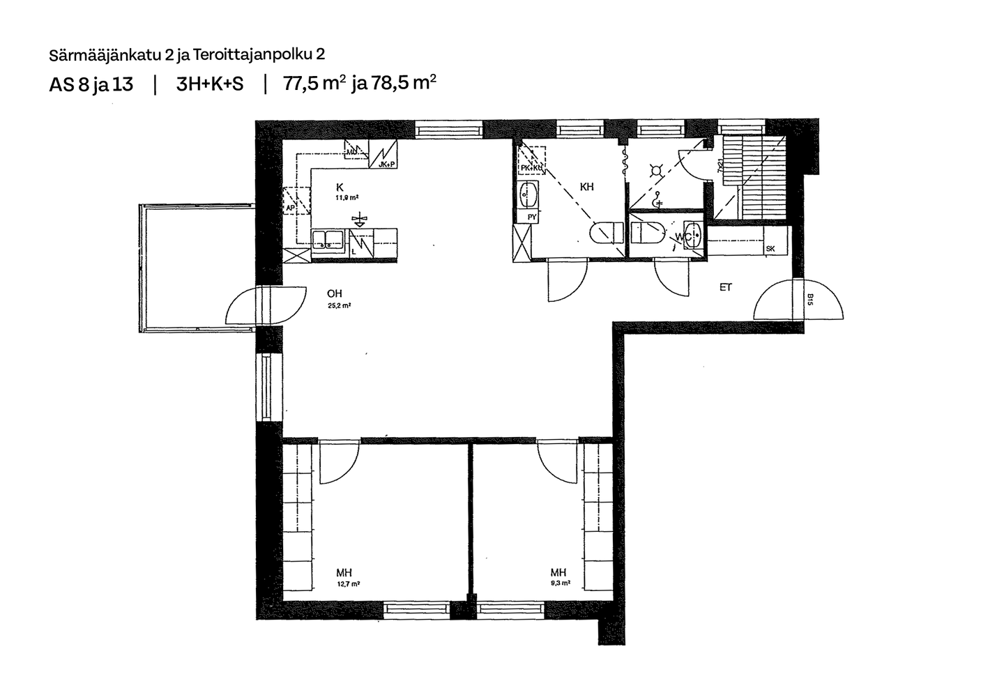 Kulmahuoneisto, oma sauna ja erillään sijaitsevat makuuhuoneet – tilaa ja toimivuutta arkeen