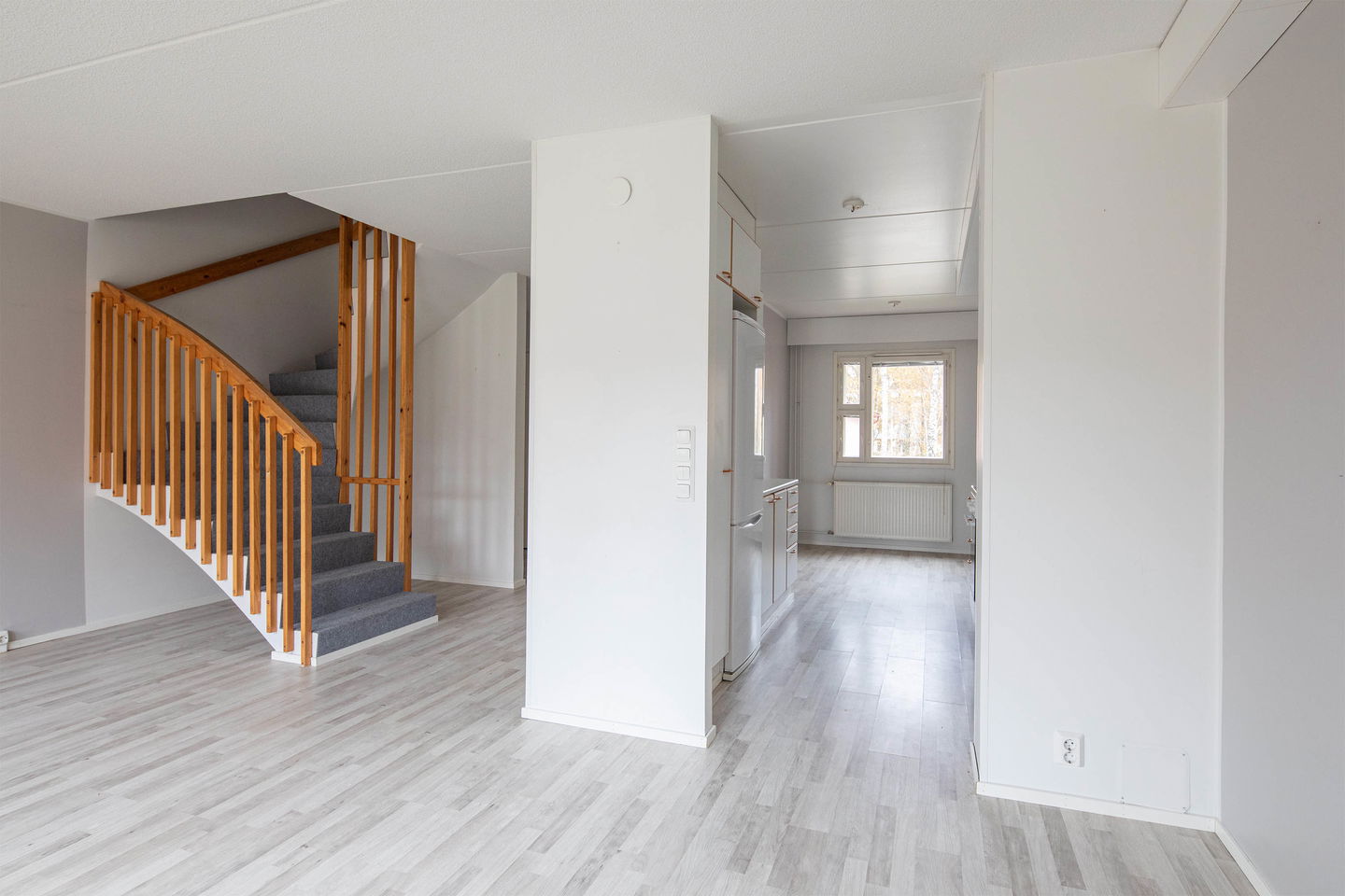 Yleisilmeeltään perussiisti asunto jossa on paljon myös alkuperäistä pintaa mutta on hyvin säilynyt. Alakerrassa on keittiö, erillinen wc ja tilava olohuone josta kulku takapihan terassille. Takapihalle paistaa päivällä aurinko ja kesällä pihan pusikot antavat hyvin näkösuojaa naapuritaloyhtiöön. Yläkerrassa on kolme makuuhuonetta ja kylpyhuone sekä sauna. Alakerran tiloissa on vaalean sävyinen laminaattilattia ja yläkerrassa muovimatto. Uudelle asukkaalle tarjoamme seinämaalit veloituksetta jos itse haluaa vielä pintoja raikastaa. Oma ulkovarasto heti sisäänkäynnin yhteydessä ja erillinen irtainvarastotila vss-tilassa. Autopaikka on myös saatavilla. Luonto ja ulkoilureitit lähellä, ja Nikkilän keskustan palvelut ovat myös lyhyen matkan päässä.