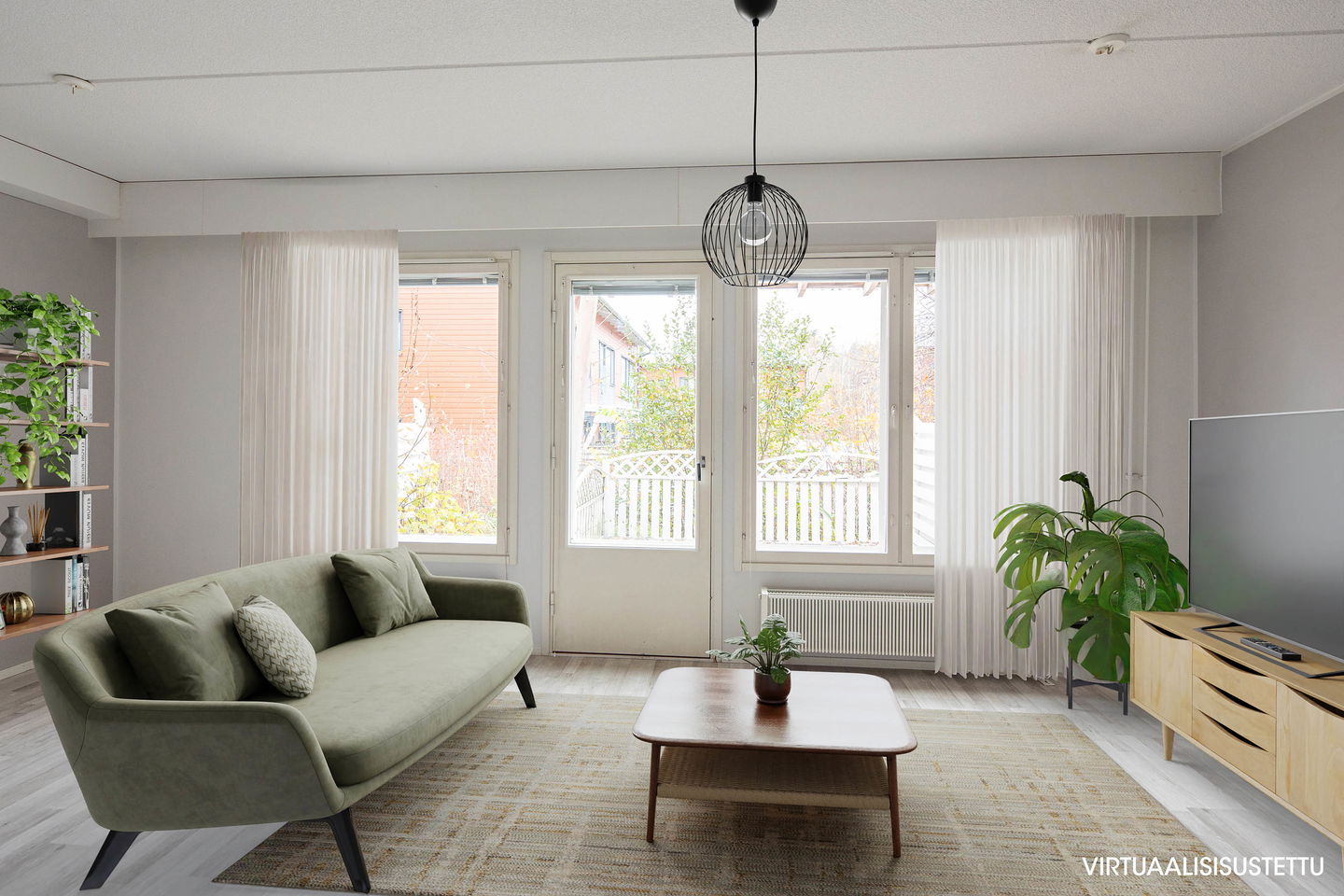 Rivitalot ovat kolmioita ja neliöitä ja pihapiiristä löytyy ihana yhteinen grillialue sekä lapsille pihapiiristä leikkipaikka. Kohteessa on omatoimiviherhoito.
