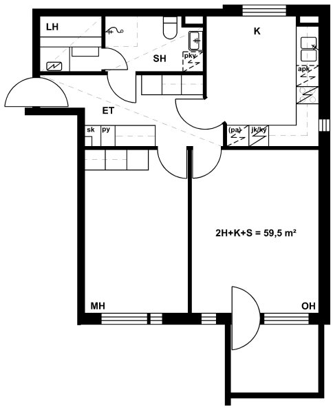 59,5 m2, 2H+K+S