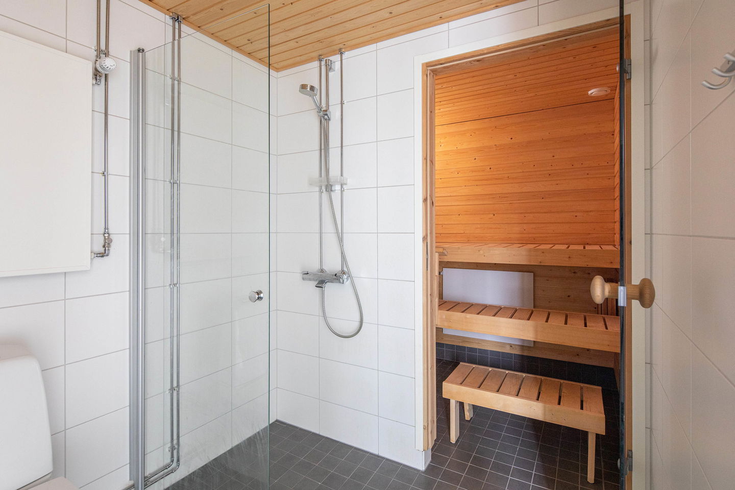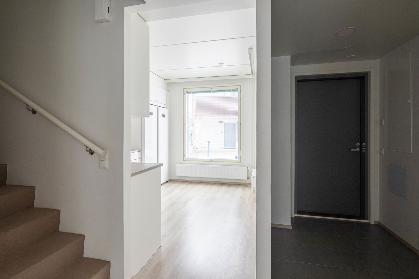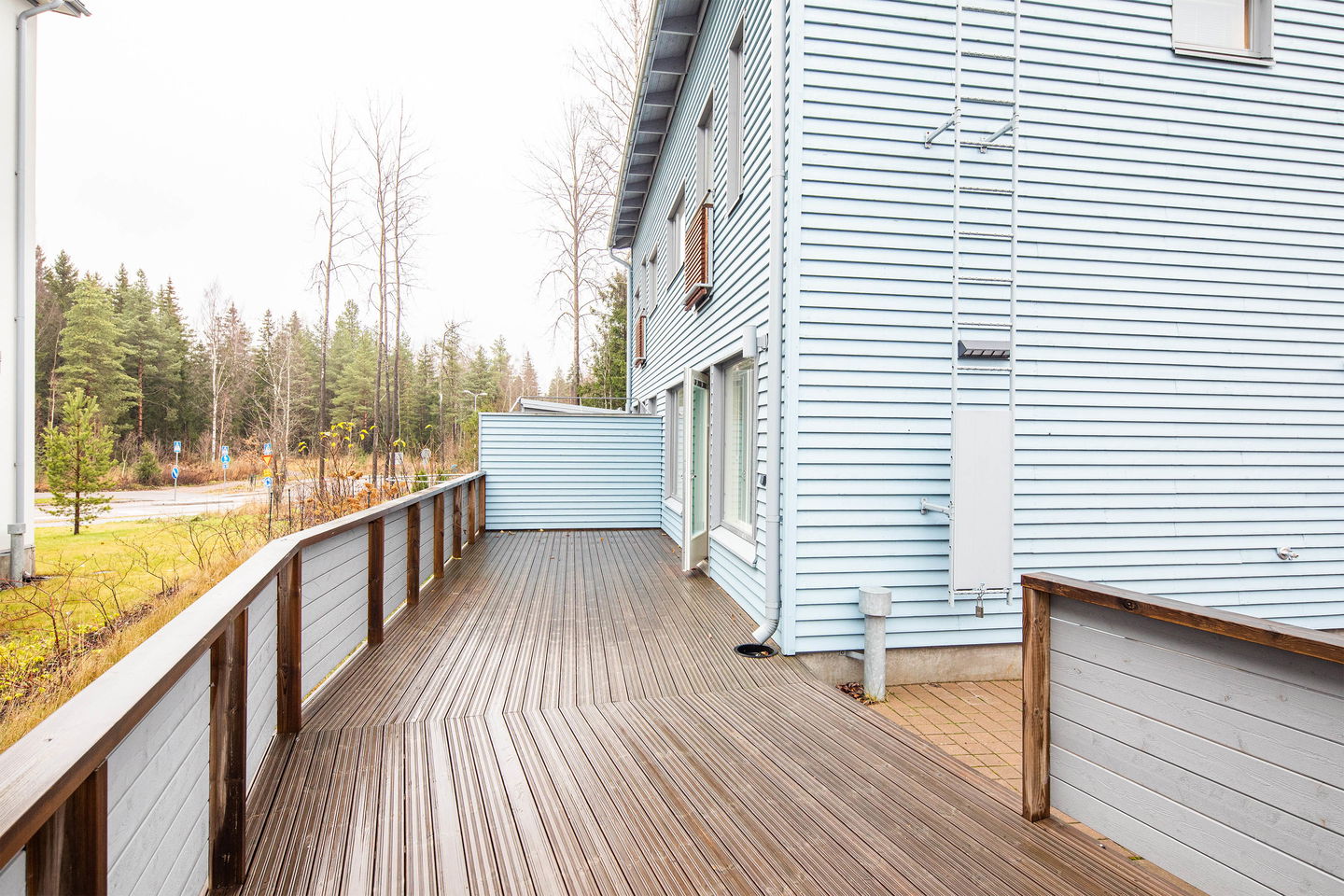 Asunnossa on tehty muutostyönä pohjapiirroksen mukainen väliseinäratkaisu olohuoneeseen (pohjapiirroksen mukaan asunto on 4-5h+k+s) sekä ulkoterassille turvallisuutta lisäävä kaide.