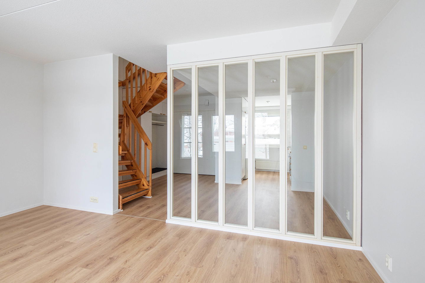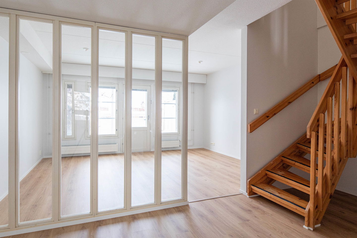 Tervetuloa valoisaan ja toimivaan kaksikerroksiseen rivitalokotiin! Alakerran olohuone jatkuu omalle pihalle, ja tilaa jakaa olohuoneen ja ruokailutilan välissä oleva avoin seinä, joka tuo huoneisiin luonnetta ja selkeyttää käyttöä. Keittiö on kätevästi ruokailutilan yhteydessä. Alakerrassa myös erillinen wc ja sisääntulon yhteydessä tilava varasto.