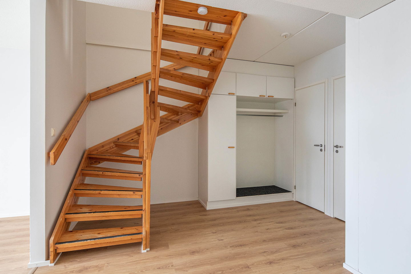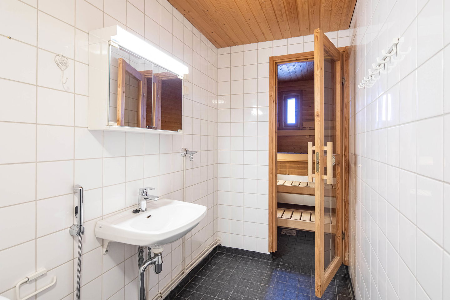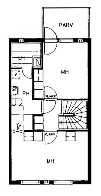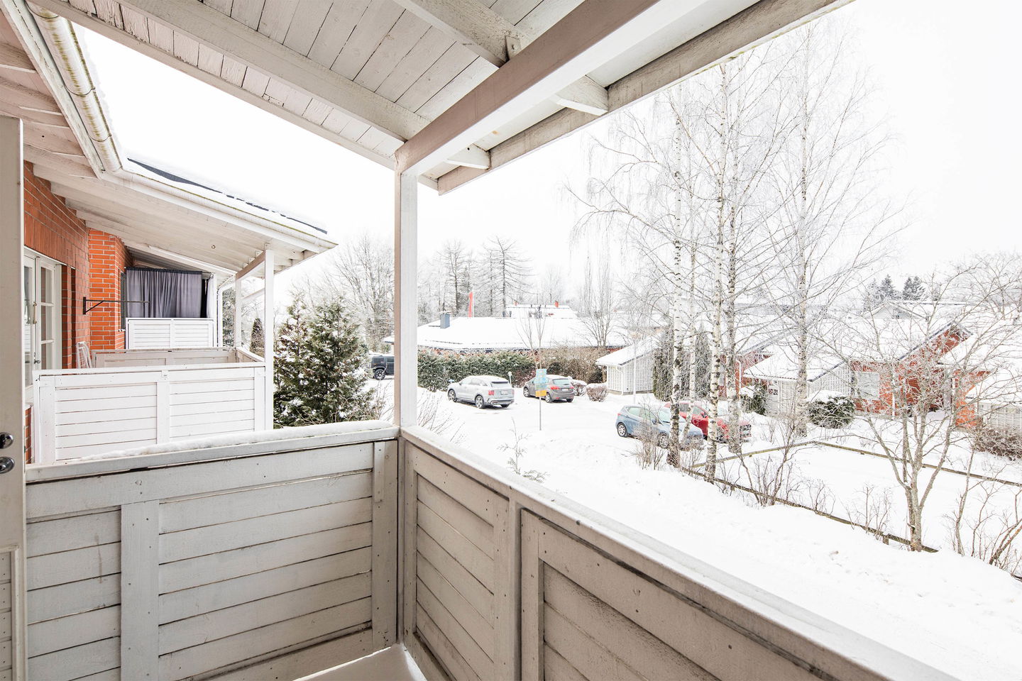 Yläkerrassa sijaitsevat kaksi hyvän kokoista makuuhuonetta, kylpyhuone sekä oma sauna. Toisesta makuuhuoneesta on kulku parvekkeelle, joka tarjoaa rauhallisen paikan rentoutua.
