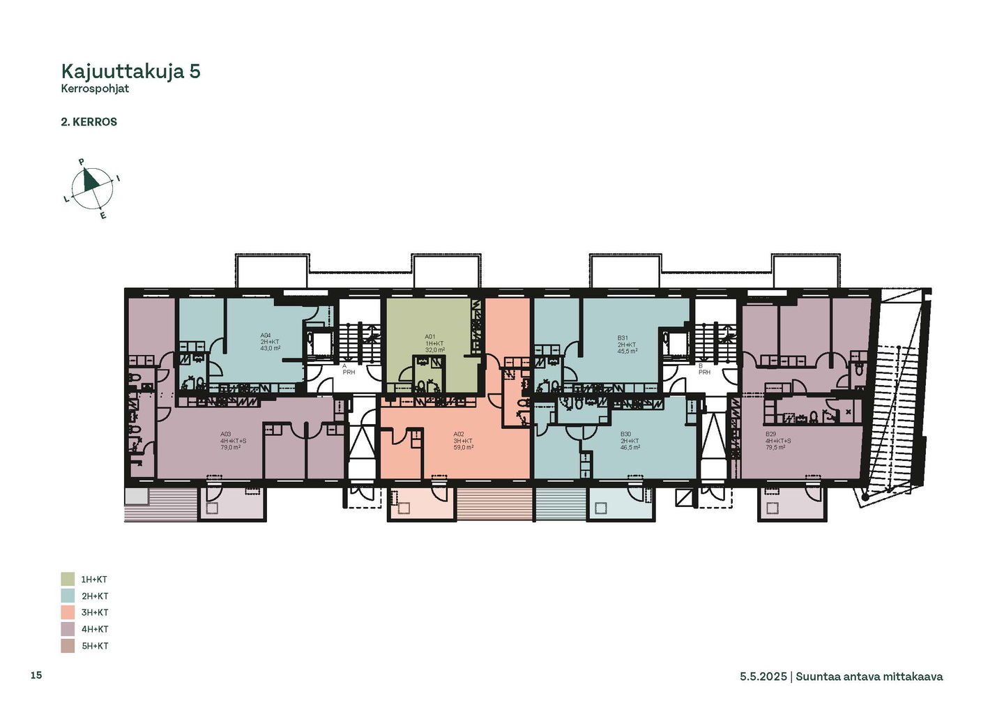 Kahdeksankerroksisen asuintaloon tulee yhteensä 50 kotia, joiden huoneistokoot vaihtelevat yksiöistä viisihuoneisiin perheasuntoihin. Pohjaratkaisuissa on valinnanvaraa ja hyvin suunnitellut tilat tuovat toimivuutta pienimpiinkin koteihin. Yksiöissä on kätevä alkovi, ja useissa kaksioissakin vaatehuone, joka voi palvella myös työtilana. Muutamissa kodeissa parvekkeelta on suorakäynti omalle, viherpeukaloa inspiroivalle terassipihalle. Asuntojen materiaalivalintoihin pääsee vaikuttamaan vielä tammikuun aikana.