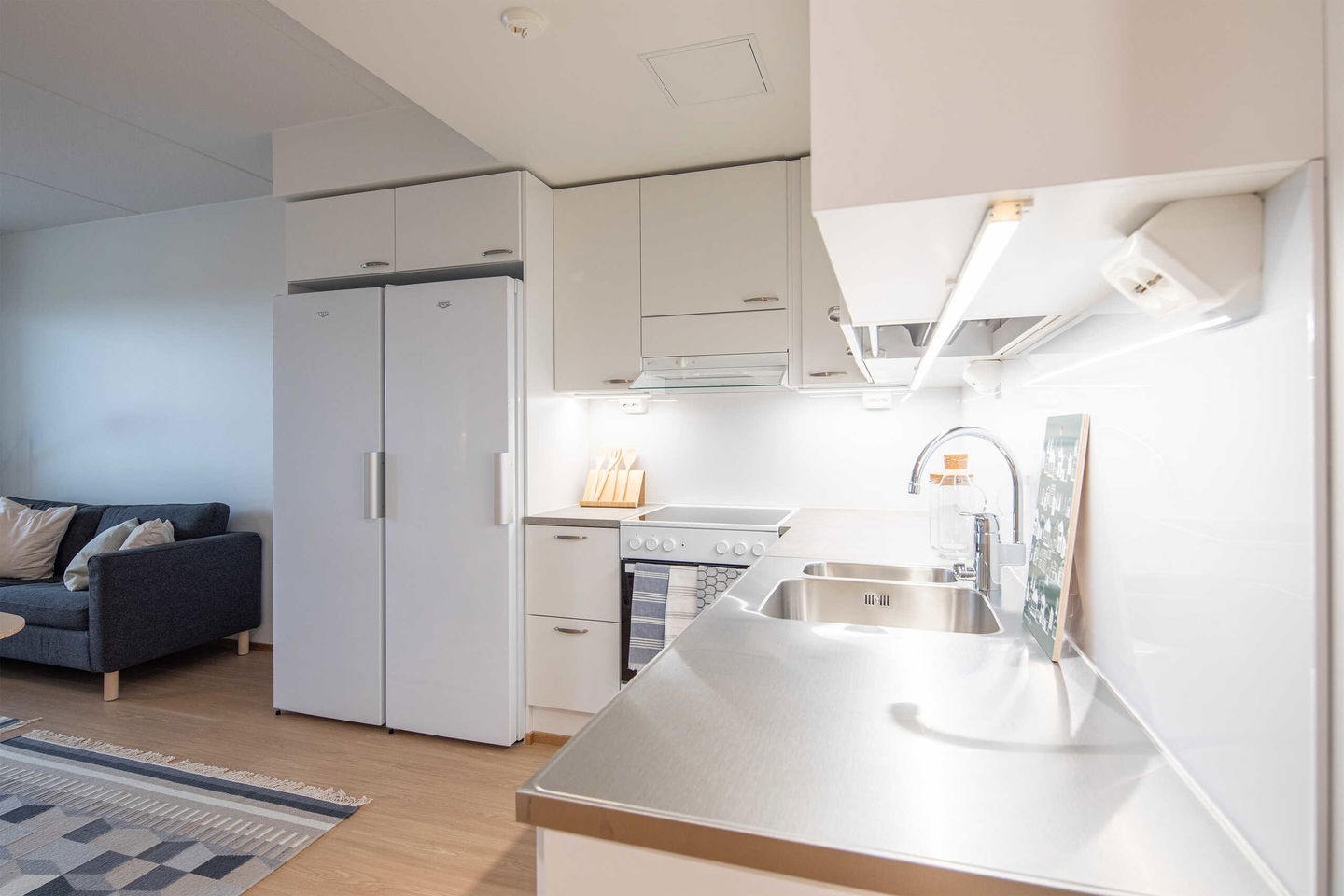 Tervetuloa B-rapun toisen kerroksen asuntojen (1h, 2h, 4h) esittelyyn keskiviikkona 11.2.2026 klo 16.30-17. Esittely tapahtuu keskeneräisellä rakennustyömaalla, jonka vuoksi kulku ei välttämättä ole täysin esteetön. Vapaisiin asuntoihin on jatkuva haku. Kaikki vapaat asunnot eivät näy nettisivuilla, olethan yhteydessä, mikäli haluat asuntotarjouksen jostain tietystä asunnosta tai kerroksesta: karita.koppinen@asuntosaatio.fi Asuntosäätiön asumisoikeuskohde nousee hienolle paikalle aivan Finnoon lintualtaiden tuntumaan! Valmistumisaika on 29.4.2026, jolloin myös muutto voi alkaa. Upeat ulkoilureitit luontoon ja merenrantaan ovat vain muutaman askeleen päässä kodistasi. Rauhallisen kulmakorttelin viereen on suunnitteilla päiväkoti ja koulu ja läheltä löytyy myös Kiikaripuisto. Metro- ja bussiyhteys sekä arjen lähipalvelut ovat mukavan kävelymatkan päässä. Vaalean, kahdeksankerroksisen talon kahteen rappukäytävään valmistuu yhteensä 103 valoisaa, hyväpohjaista asumisoikeuskotia. Huoneistokoot vaihtelevat yksiöistä viiden huoneen + keittiön asuntoihin, joiden asuinpinta-alat vaihtelevat välillä 27,5m2-110m2. Ylimmistä B-rapun kerroksista avautuvat näkymät merelle asti ja pohjakerroksen muutamissa kodeissa on suojaisat pihaterassit. Viuhkamaisen rakennuksen laaja, aurinkoinen piha-alue avautuu lännen suuntaan. Monipuolisesta huoneistovalikoimasta löytyy toimiva koti kaikenlaisiin elämänvaiheisiin, niin sinkkuasukkaalle kuin isommallekin perheelle. Sälekaihtimet ja astianpesukone on kaikissa huoneistoissa valmiiksi asennettuna. Suurimmissa kodeissa arjen sujuvuutta lisäävät kodinhoitohuone sekä erillinen jääkaappi ja kaappipakastin. Talon moderni, sähköinen lukitusjärjestelmä tuo turvaa kulkemiseen. Naapuruston yhteisessä käytössä on talopesula kuivaushuoneineen, kerhotilat sekä makoisat löylyt tarjoavat saunaosastot. Lisäksi löytyvät ulkoiluväline- ja lastenvaunuvarastot. Koteihin lisää oleskelutilaa tuovat lasitetut parvekkeet, joilta avautuvat eturivin paikat muuttolintujen bongaukseen. Finnoonkartanonkadulla viihtyy koko perhe! Onnella on osoite.