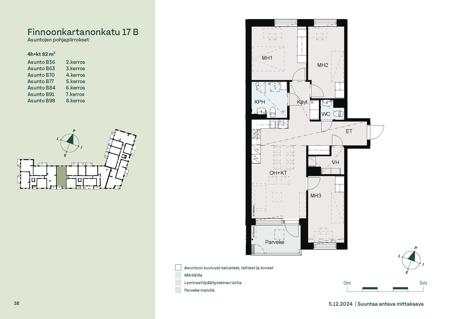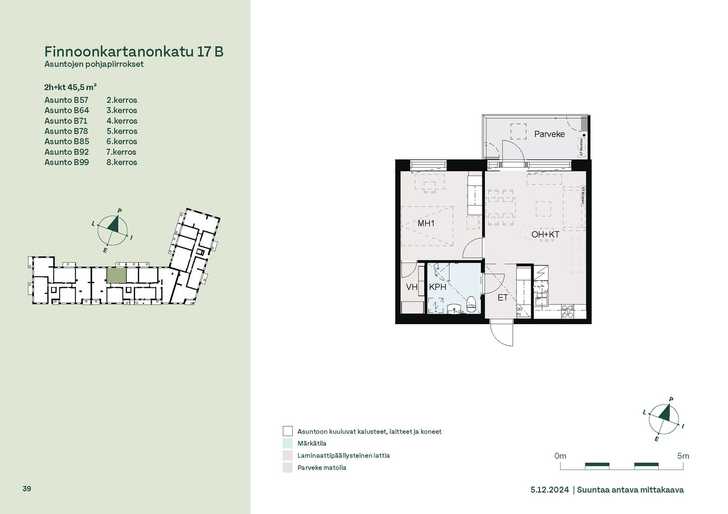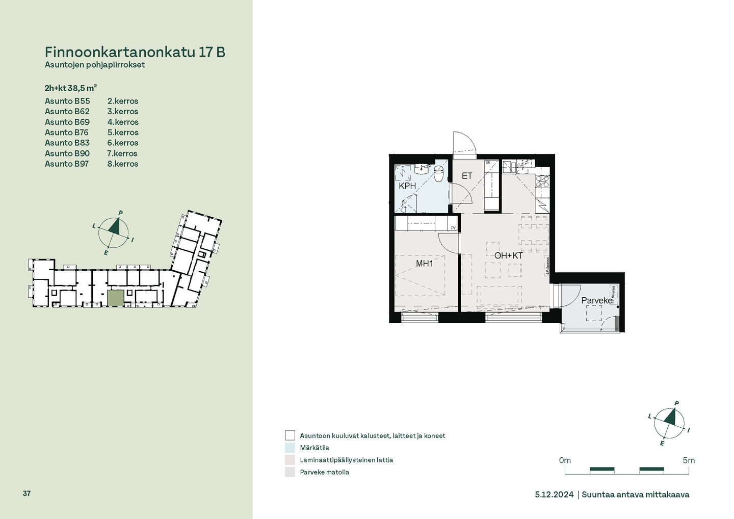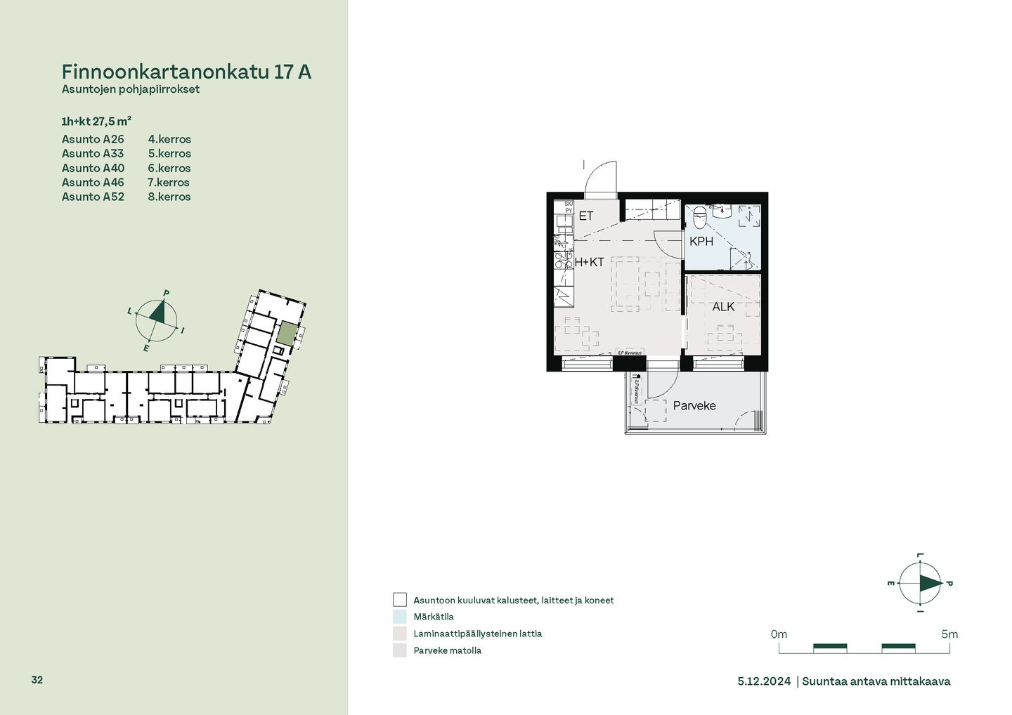 Tervetuloa B-rapun toisen kerroksen asuntojen (1h, 2h, 4h) esittelyyn keskiviikkona 11.2.2026 klo 16.30-17. Esittely tapahtuu keskeneräisellä rakennustyömaalla, jonka vuoksi kulku ei välttämättä ole täysin esteetön. Vapaisiin asuntoihin on jatkuva haku. Kaikki vapaat asunnot eivät näy nettisivuilla, olethan yhteydessä, mikäli haluat asuntotarjouksen jostain tietystä asunnosta tai kerroksesta: karita.koppinen@asuntosaatio.fi Asuntosäätiön asumisoikeuskohde nousee hienolle paikalle aivan Finnoon lintualtaiden tuntumaan! Valmistumisaika on 29.4.2026, jolloin myös muutto voi alkaa. Upeat ulkoilureitit luontoon ja merenrantaan ovat vain muutaman askeleen päässä kodistasi. Rauhallisen kulmakorttelin viereen on suunnitteilla päiväkoti ja koulu ja läheltä löytyy myös Kiikaripuisto. Metro- ja bussiyhteys sekä arjen lähipalvelut ovat mukavan kävelymatkan päässä. Vaalean, kahdeksankerroksisen talon kahteen rappukäytävään valmistuu yhteensä 103 valoisaa, hyväpohjaista asumisoikeuskotia. Huoneistokoot vaihtelevat yksiöistä viiden huoneen + keittiön asuntoihin, joiden asuinpinta-alat vaihtelevat välillä 27,5m2-110m2. Ylimmistä B-rapun kerroksista avautuvat näkymät merelle asti ja pohjakerroksen muutamissa kodeissa on suojaisat pihaterassit. Viuhkamaisen rakennuksen laaja, aurinkoinen piha-alue avautuu lännen suuntaan. Monipuolisesta huoneistovalikoimasta löytyy toimiva koti kaikenlaisiin elämänvaiheisiin, niin sinkkuasukkaalle kuin isommallekin perheelle. Sälekaihtimet ja astianpesukone on kaikissa huoneistoissa valmiiksi asennettuna. Suurimmissa kodeissa arjen sujuvuutta lisäävät kodinhoitohuone sekä erillinen jääkaappi ja kaappipakastin. Talon moderni, sähköinen lukitusjärjestelmä tuo turvaa kulkemiseen. Naapuruston yhteisessä käytössä on talopesula kuivaushuoneineen, kerhotilat sekä makoisat löylyt tarjoavat saunaosastot. Lisäksi löytyvät ulkoiluväline- ja lastenvaunuvarastot. Koteihin lisää oleskelutilaa tuovat lasitetut parvekkeet, joilta avautuvat eturivin paikat muuttolintujen bongaukseen. Finnoonkartanonkadulla viihtyy koko perhe! Onnella on osoite.