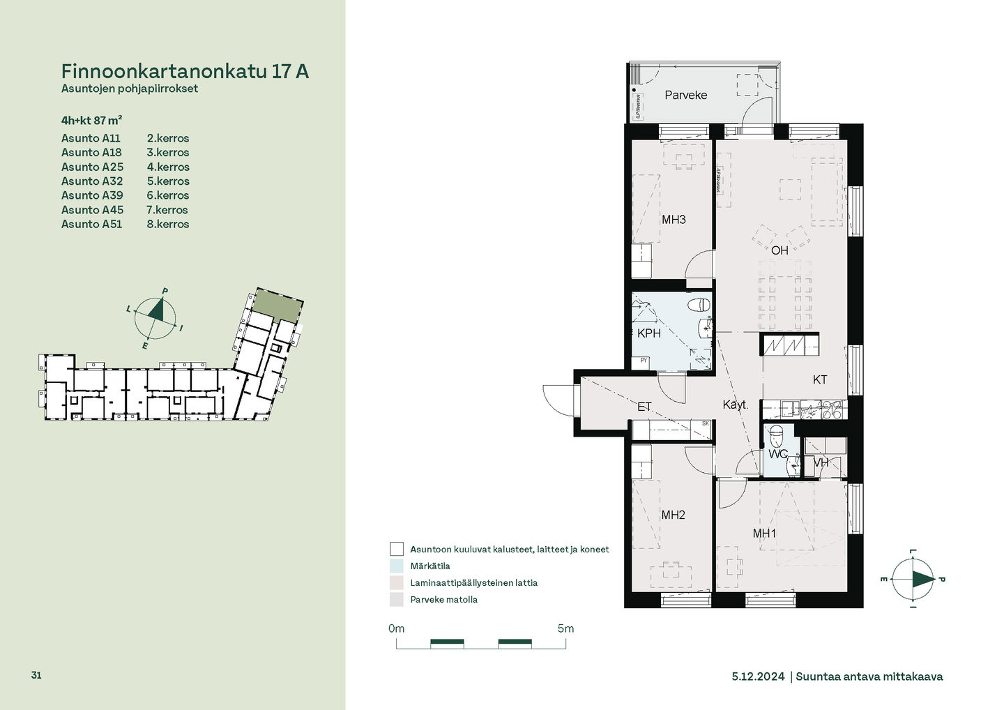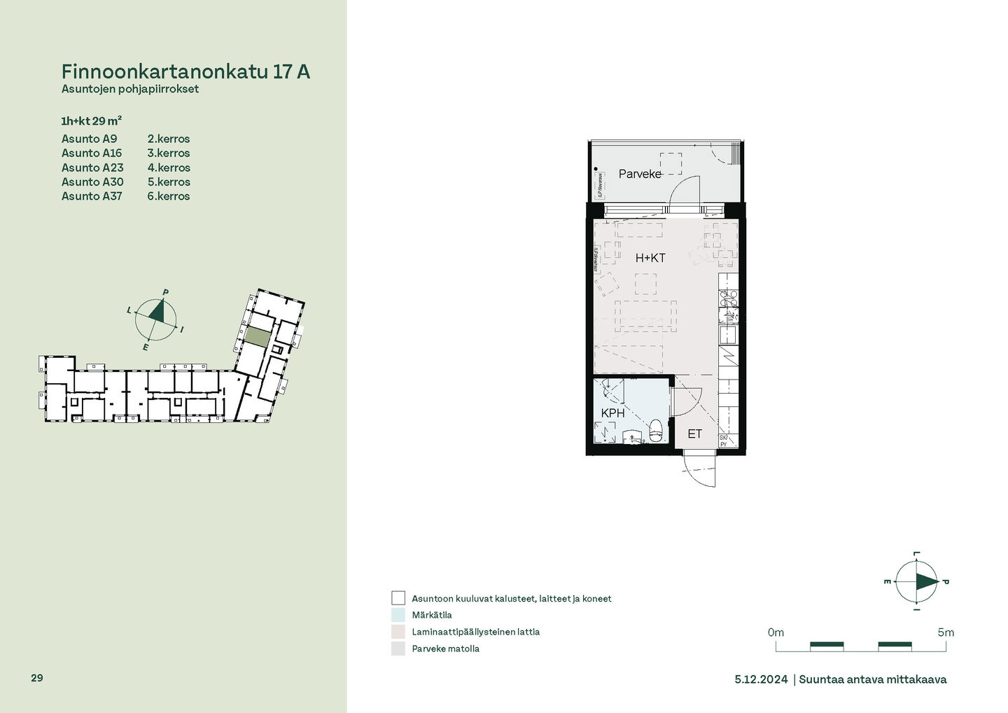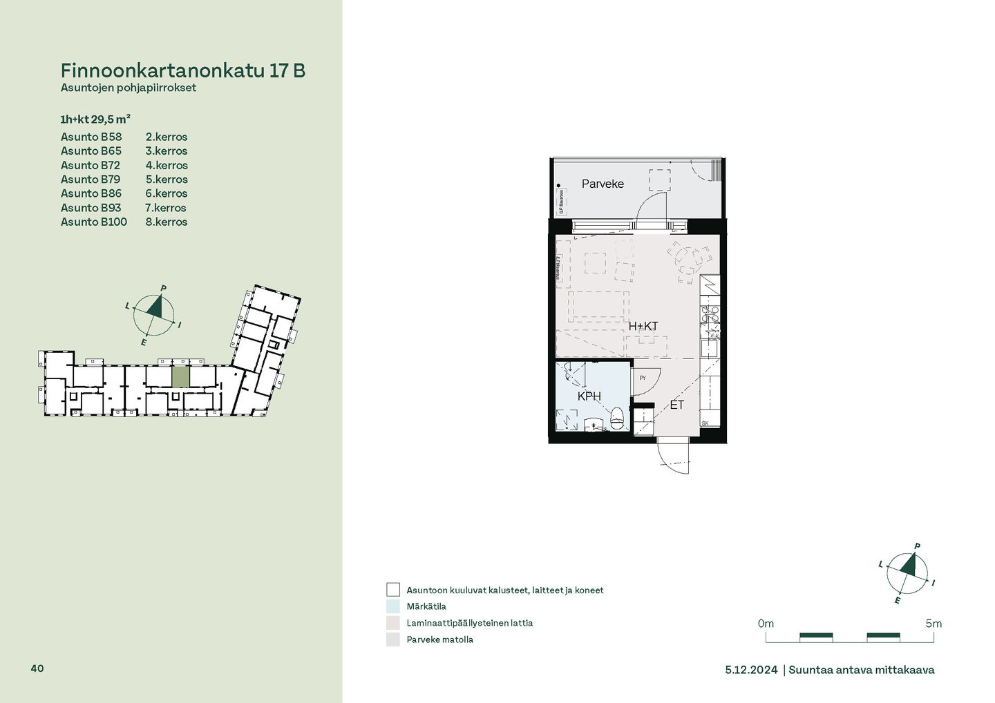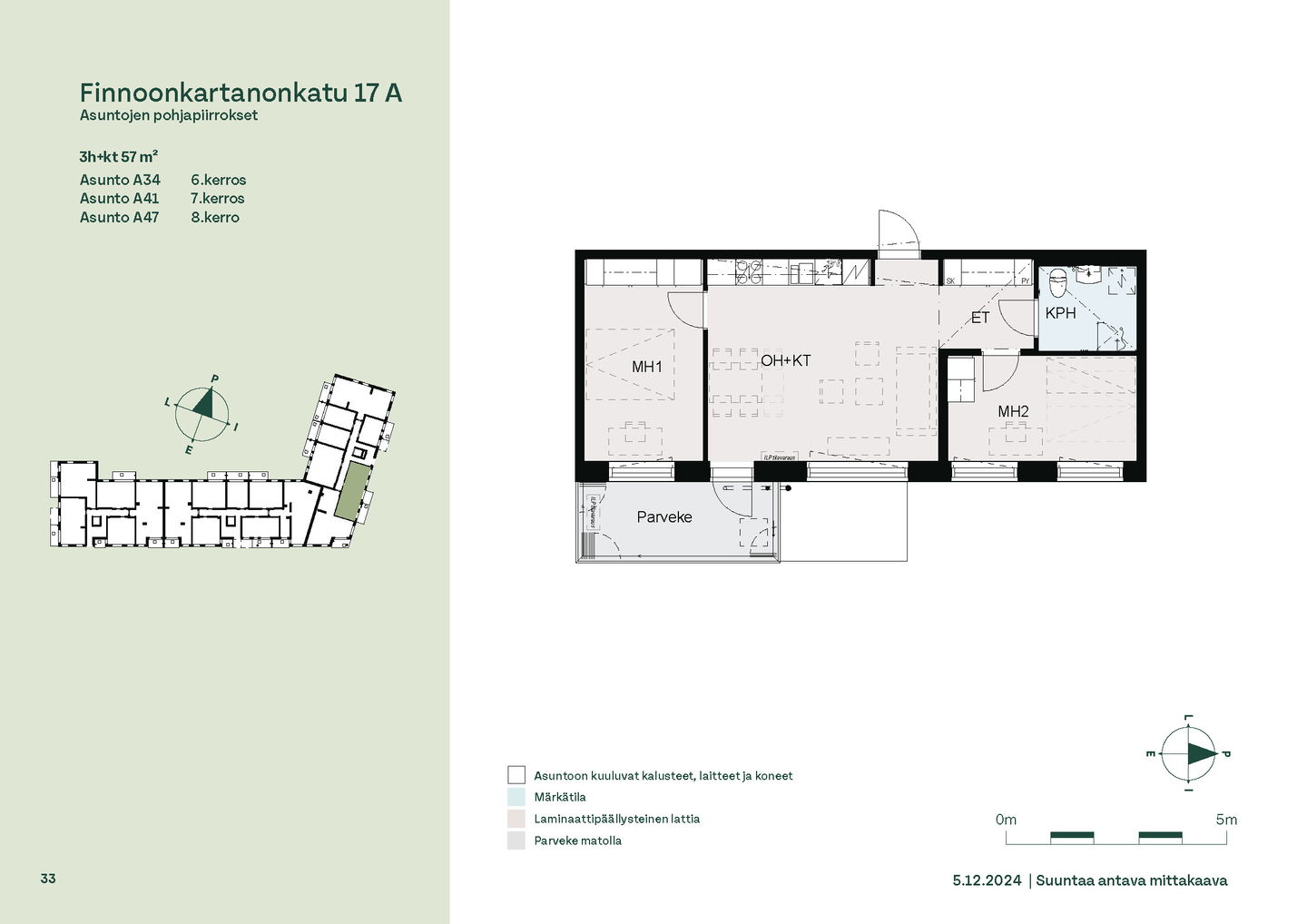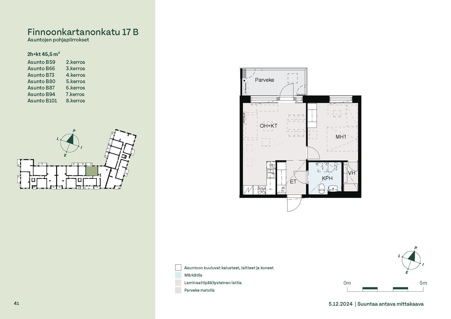 Tervetuloa B-rapun toisen kerroksen asuntojen (1h, 2h, 4h) esittelyyn keskiviikkona 11.2.2026 klo 16.30-17. Esittely tapahtuu keskeneräisellä rakennustyömaalla, jonka vuoksi kulku ei välttämättä ole täysin esteetön. Vapaisiin asuntoihin on jatkuva haku. Kaikki vapaat asunnot eivät näy nettisivuilla, olethan yhteydessä, mikäli haluat asuntotarjouksen jostain tietystä asunnosta tai kerroksesta: karita.koppinen@asuntosaatio.fi Asuntosäätiön asumisoikeuskohde nousee hienolle paikalle aivan Finnoon lintualtaiden tuntumaan! Valmistumisaika on 29.4.2026, jolloin myös muutto voi alkaa. Upeat ulkoilureitit luontoon ja merenrantaan ovat vain muutaman askeleen päässä kodistasi. Rauhallisen kulmakorttelin viereen on suunnitteilla päiväkoti ja koulu ja läheltä löytyy myös Kiikaripuisto. Metro- ja bussiyhteys sekä arjen lähipalvelut ovat mukavan kävelymatkan päässä. Vaalean, kahdeksankerroksisen talon kahteen rappukäytävään valmistuu yhteensä 103 valoisaa, hyväpohjaista asumisoikeuskotia. Huoneistokoot vaihtelevat yksiöistä viiden huoneen + keittiön asuntoihin, joiden asuinpinta-alat vaihtelevat välillä 27,5m2-110m2. Ylimmistä B-rapun kerroksista avautuvat näkymät merelle asti ja pohjakerroksen muutamissa kodeissa on suojaisat pihaterassit. Viuhkamaisen rakennuksen laaja, aurinkoinen piha-alue avautuu lännen suuntaan. Monipuolisesta huoneistovalikoimasta löytyy toimiva koti kaikenlaisiin elämänvaiheisiin, niin sinkkuasukkaalle kuin isommallekin perheelle. Sälekaihtimet ja astianpesukone on kaikissa huoneistoissa valmiiksi asennettuna. Suurimmissa kodeissa arjen sujuvuutta lisäävät kodinhoitohuone sekä erillinen jääkaappi ja kaappipakastin. Talon moderni, sähköinen lukitusjärjestelmä tuo turvaa kulkemiseen. Naapuruston yhteisessä käytössä on talopesula kuivaushuoneineen, kerhotilat sekä makoisat löylyt tarjoavat saunaosastot. Lisäksi löytyvät ulkoiluväline- ja lastenvaunuvarastot. Koteihin lisää oleskelutilaa tuovat lasitetut parvekkeet, joilta avautuvat eturivin paikat muuttolintujen bongaukseen. Finnoonkartanonkadulla viihtyy koko perhe! Onnella on osoite.