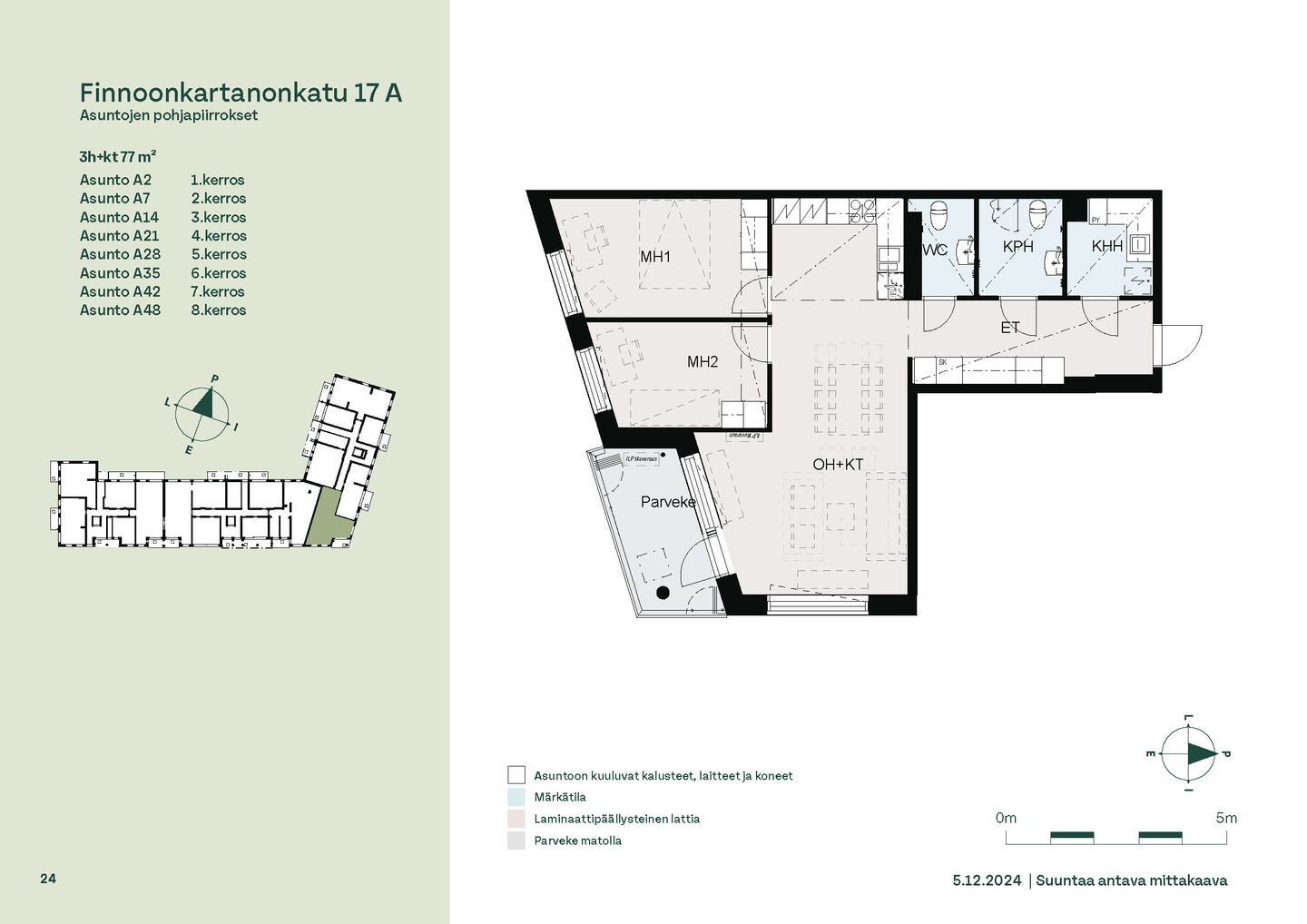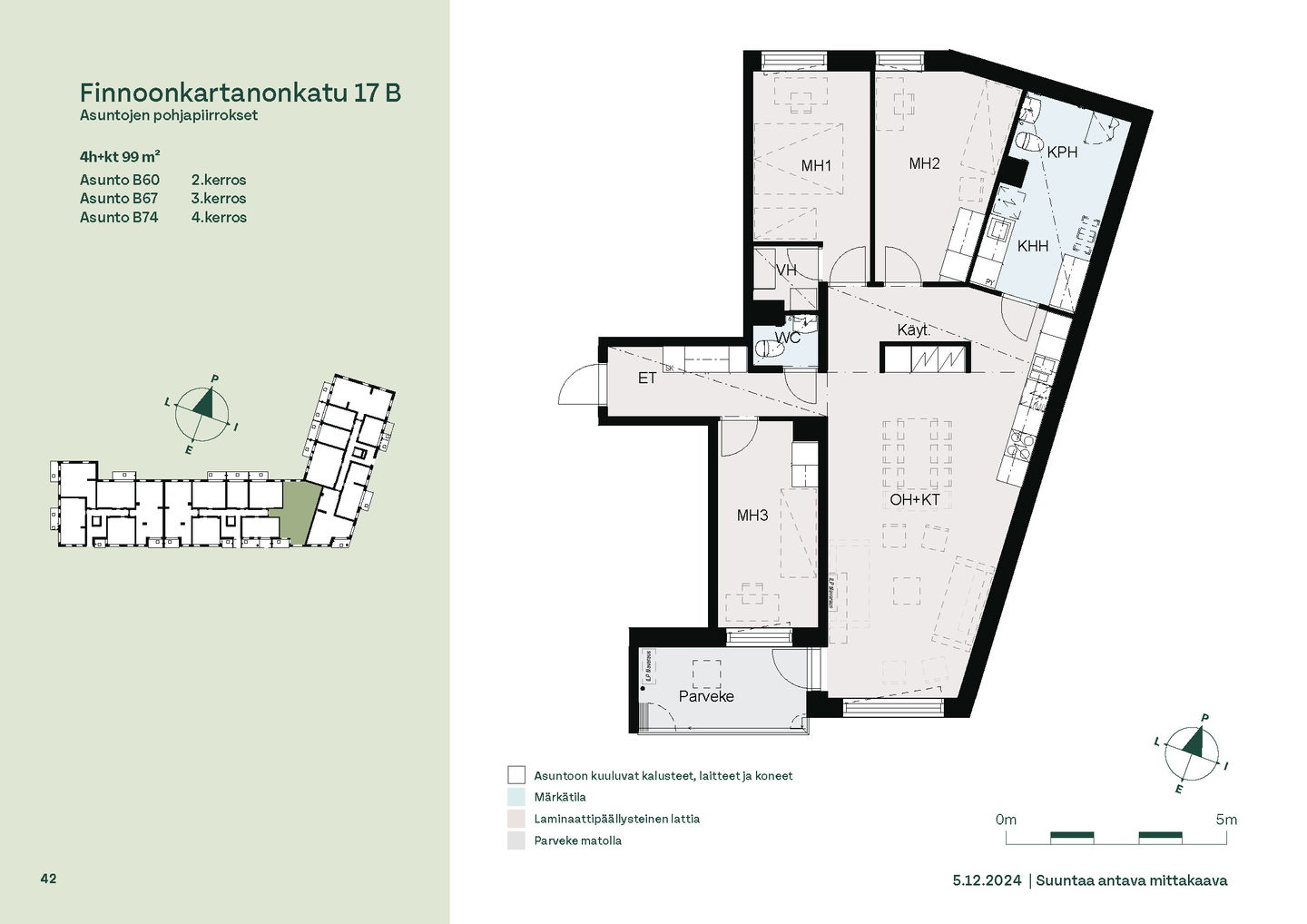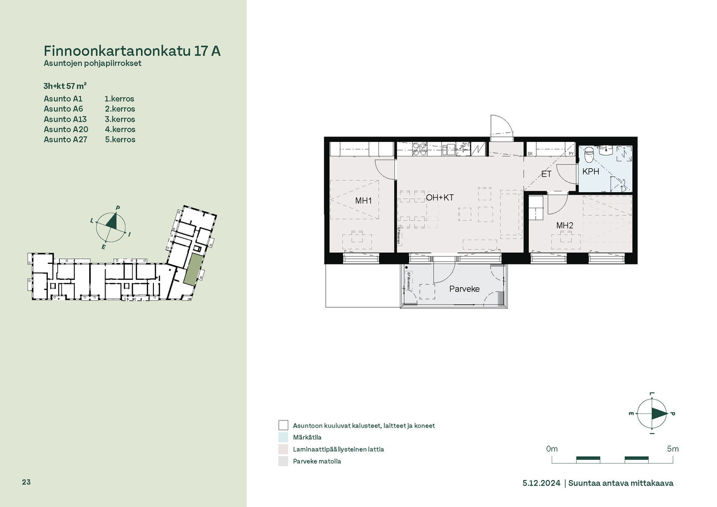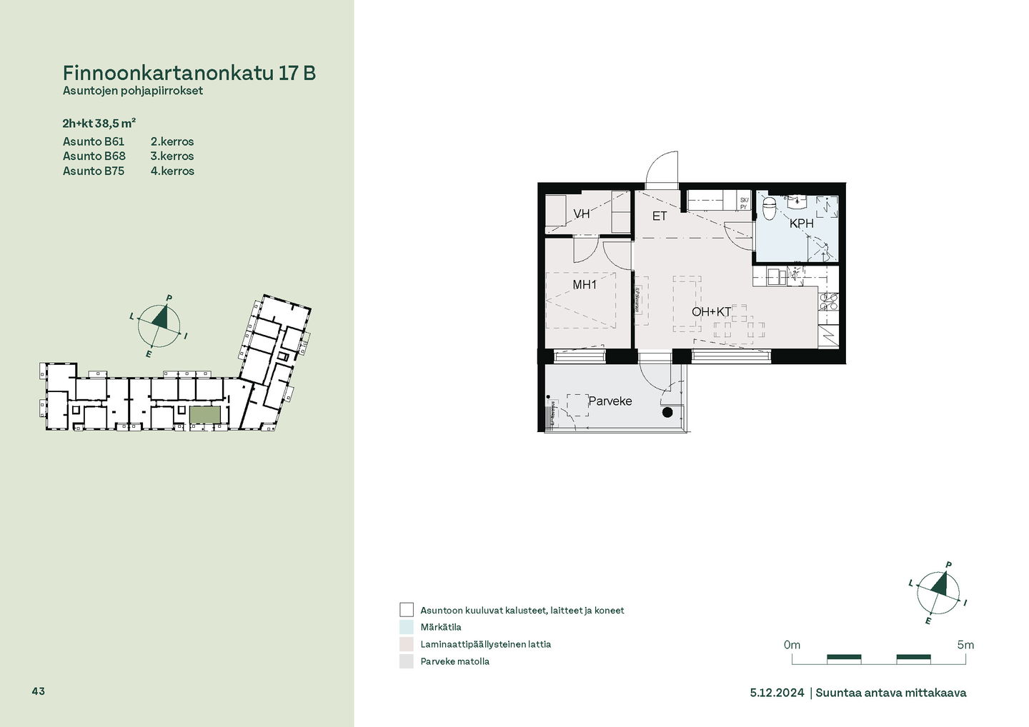 Tervetuloa B-rapun toisen kerroksen asuntojen (1h, 2h, 4h) esittelyyn keskiviikkona 11.2.2026 klo 16.30-17. Esittely tapahtuu keskeneräisellä rakennustyömaalla, jonka vuoksi kulku ei välttämättä ole täysin esteetön. Vapaisiin asuntoihin on jatkuva haku. Kaikki vapaat asunnot eivät näy nettisivuilla, olethan yhteydessä, mikäli haluat asuntotarjouksen jostain tietystä asunnosta tai kerroksesta: karita.koppinen@asuntosaatio.fi Asuntosäätiön asumisoikeuskohde nousee hienolle paikalle aivan Finnoon lintualtaiden tuntumaan! Valmistumisaika on 29.4.2026, jolloin myös muutto voi alkaa. Upeat ulkoilureitit luontoon ja merenrantaan ovat vain muutaman askeleen päässä kodistasi. Rauhallisen kulmakorttelin viereen on suunnitteilla päiväkoti ja koulu ja läheltä löytyy myös Kiikaripuisto. Metro- ja bussiyhteys sekä arjen lähipalvelut ovat mukavan kävelymatkan päässä. Vaalean, kahdeksankerroksisen talon kahteen rappukäytävään valmistuu yhteensä 103 valoisaa, hyväpohjaista asumisoikeuskotia. Huoneistokoot vaihtelevat yksiöistä viiden huoneen + keittiön asuntoihin, joiden asuinpinta-alat vaihtelevat välillä 27,5m2-110m2. Ylimmistä B-rapun kerroksista avautuvat näkymät merelle asti ja pohjakerroksen muutamissa kodeissa on suojaisat pihaterassit. Viuhkamaisen rakennuksen laaja, aurinkoinen piha-alue avautuu lännen suuntaan. Monipuolisesta huoneistovalikoimasta löytyy toimiva koti kaikenlaisiin elämänvaiheisiin, niin sinkkuasukkaalle kuin isommallekin perheelle. Sälekaihtimet ja astianpesukone on kaikissa huoneistoissa valmiiksi asennettuna. Suurimmissa kodeissa arjen sujuvuutta lisäävät kodinhoitohuone sekä erillinen jääkaappi ja kaappipakastin. Talon moderni, sähköinen lukitusjärjestelmä tuo turvaa kulkemiseen. Naapuruston yhteisessä käytössä on talopesula kuivaushuoneineen, kerhotilat sekä makoisat löylyt tarjoavat saunaosastot. Lisäksi löytyvät ulkoiluväline- ja lastenvaunuvarastot. Koteihin lisää oleskelutilaa tuovat lasitetut parvekkeet, joilta avautuvat eturivin paikat muuttolintujen bongaukseen. Finnoonkartanonkadulla viihtyy koko perhe! Onnella on osoite.