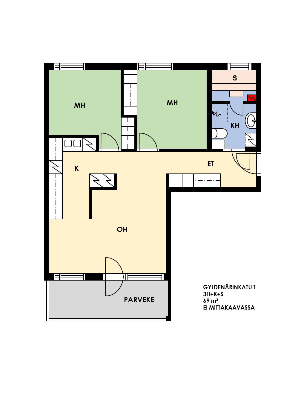 Apartments and floor plans: Gyldenärinkatu 1, Kerrostalo