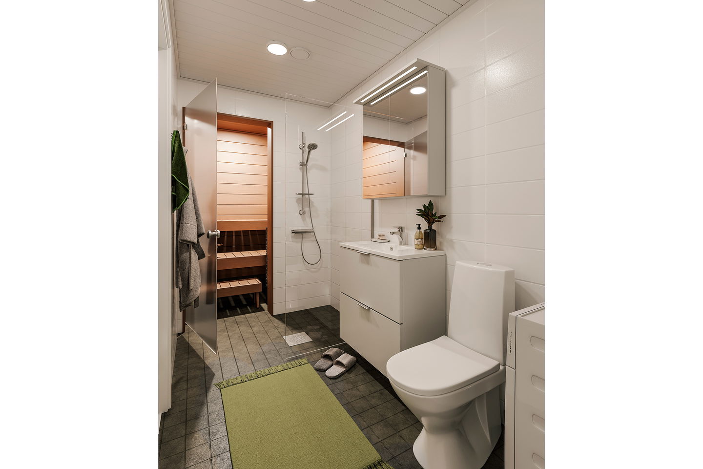 Hyvin suunnitellut, kaksikerroksiset kolmiot ja neliöt sopivat kaiken kokoisille perheille. Kaikissa huoneistoissa on arjen luksusta tuova oma sauna, josta astelet suoraan omalle terassille tai pihalle vilvoittelemaan. Jokaiseen asuntoon kuuluu myös oma irtaimistovarasto sekä lämmityspistorasialla varustettu autopaikka.