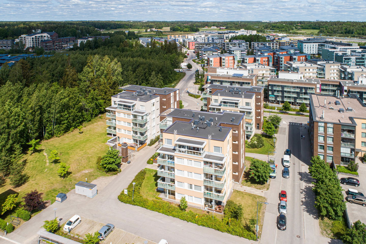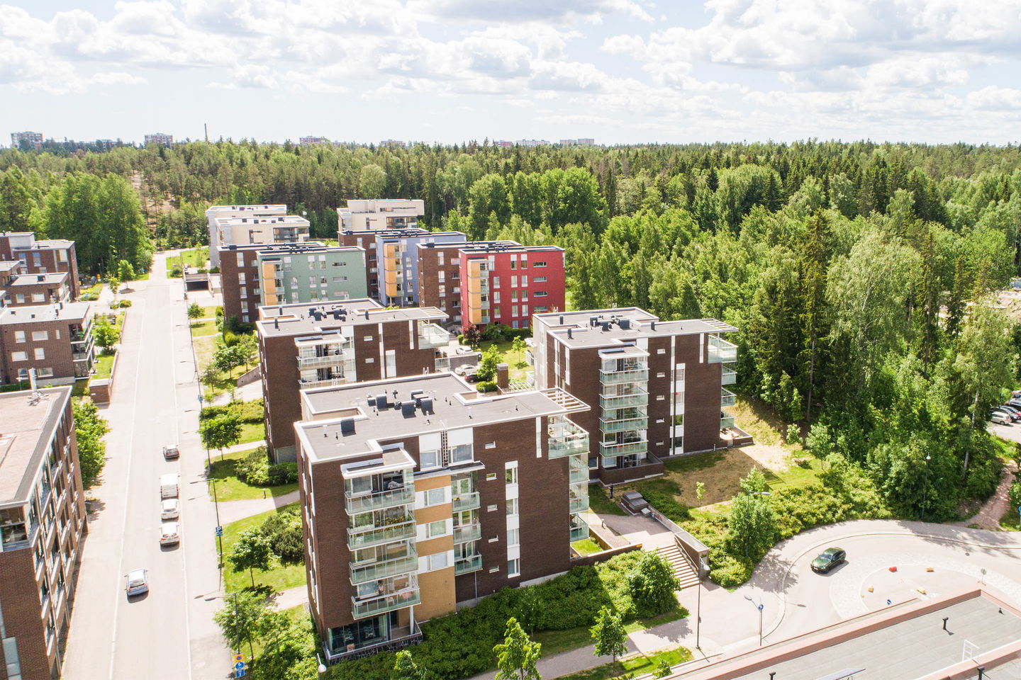 Viihtyisä, kolmen kerrostalon muodostama kohde, jossa on asuntoja yksiöistä kaksioihin ja kolmioihin sekä viiden huoneen asuntoja. Asukkaiden käytössä on A-talossa ilmainen kerhohuone, jossa asukkaat voivat järjestää esimerkiksi perhejuhlia, ja jossa asukastoimiskunta järjestää asukastapahtumia. Kohteessa on maalampö. Talot sijaitsevat heti rauhallisella sijainnilla Keskuspuiston vieressä, joten ulkoilemaan pääsee lähes suoraan kotiovelta ja useista kodeista on metsäiset näkymät.