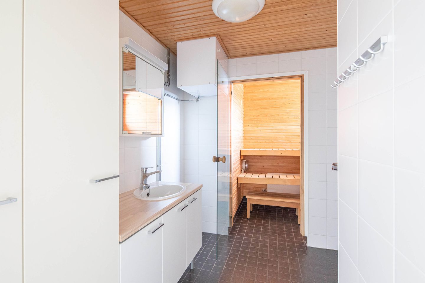 Suuret ikkunat valaisevat kodin kauniisti, ja sälekaihtimet mahdollistavat valon ja lämpötilan säädön. Lasitettu viherhuone sekä lasitettu parveke tarjoavat monipuolista lisätilaa niin työskentelyyn, harrastuksiin kuin rentoutumiseen.