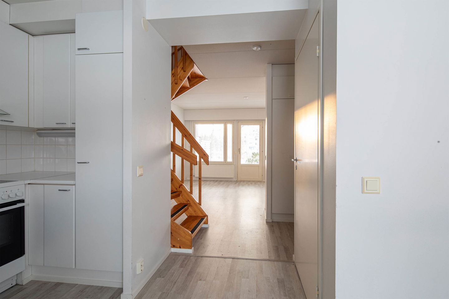 Vapautumassa kodikas ja toimivapohjainen kaksitasoinen koti, jossa tilat jakautuvat erinomaisesti arjen ja rauhoittumisen tarpeisiin. Alakerrassa sijaitsevat keittiö ja olohuone muodostavat avaran ja yhtenäisen oleskelutilan, josta on kulku omalle ulko-oleskelualueelle. Keittiössä on hyvin työskentelytilaa sekä kätevästi sijoitetut kodinkoneet, ja eteinen tarjoaa toimivat säilytysratkaisut.