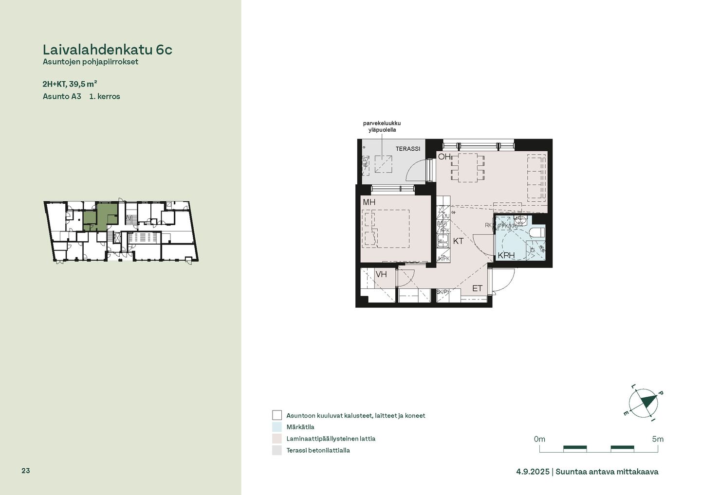 Vapaisiin asuntoihin on jatkuva haku. Helsingin trendikkäimpiin lukeutuvaan Herttoniemen kaupunginosaan nousee uusia asumisoikeuskoteja erinomaisten kulkuyhteyksien ulottuville. Tyylikäs tiilimuurattu kerrostalo tarjoaa 31 asuntoa erilaisiin tarpeisiin, yksiöistä aina isompiin nelihuoneisiin koteihin. Asuntojen arvioitu valmistumisaika on 8-11/2026 (tarkentuu lähempänä valmistumista). Laivalahdenkadun asunnot tarjoavat upeat puitteet kotikokeille. Tilavissa keittiöissä mahtuu järjestämään isojakin illalliskutsuja, ja isoimmissa asunnoissa on myös tyylikkäät, tasotilaa lisäävät saarekkeet. Suurten ikkunoiden ansiosta kodit kylpevät valossa, ja tilaratkaisut tukevat erilaisia elämäntilanteita. Kodeissa on panostettu suuriin makuuhuoneisiin, joihin mahtuu helposti esimerkiksi etätyöpiste tai lastensänky. Monesta kodista löytyy myös kätevä vaatehuone ja kylpyhuoneesta erotettu pieni WC. Herttoniemessä luonto on aina lähellä, ja tässä kohteessa siihen on panostettu myös pihapiirissä. Kortteli kätkee sisäänsä rauhallisen viherpihan, joka on suojassa autoliikenteeltä. Terassien istutukset ja viherkatto tuovat maisemaan vehreyttä. Arkea helpottavat asukkaille varatut yhteiset tilat, kuten kerhohuone ja talopesula. Kellarikerroksen varastot lisäävät säilytystilaa, ja autoille on varattu pysäköintitilaa pihakannen alta. Kotiovelta on alle kilometrin matka Herttoniemen metroasemalle sekä kauppakeskus Hertsiin, josta löytyvät monet arkea helpottavat palvelut ja liikkeet.
