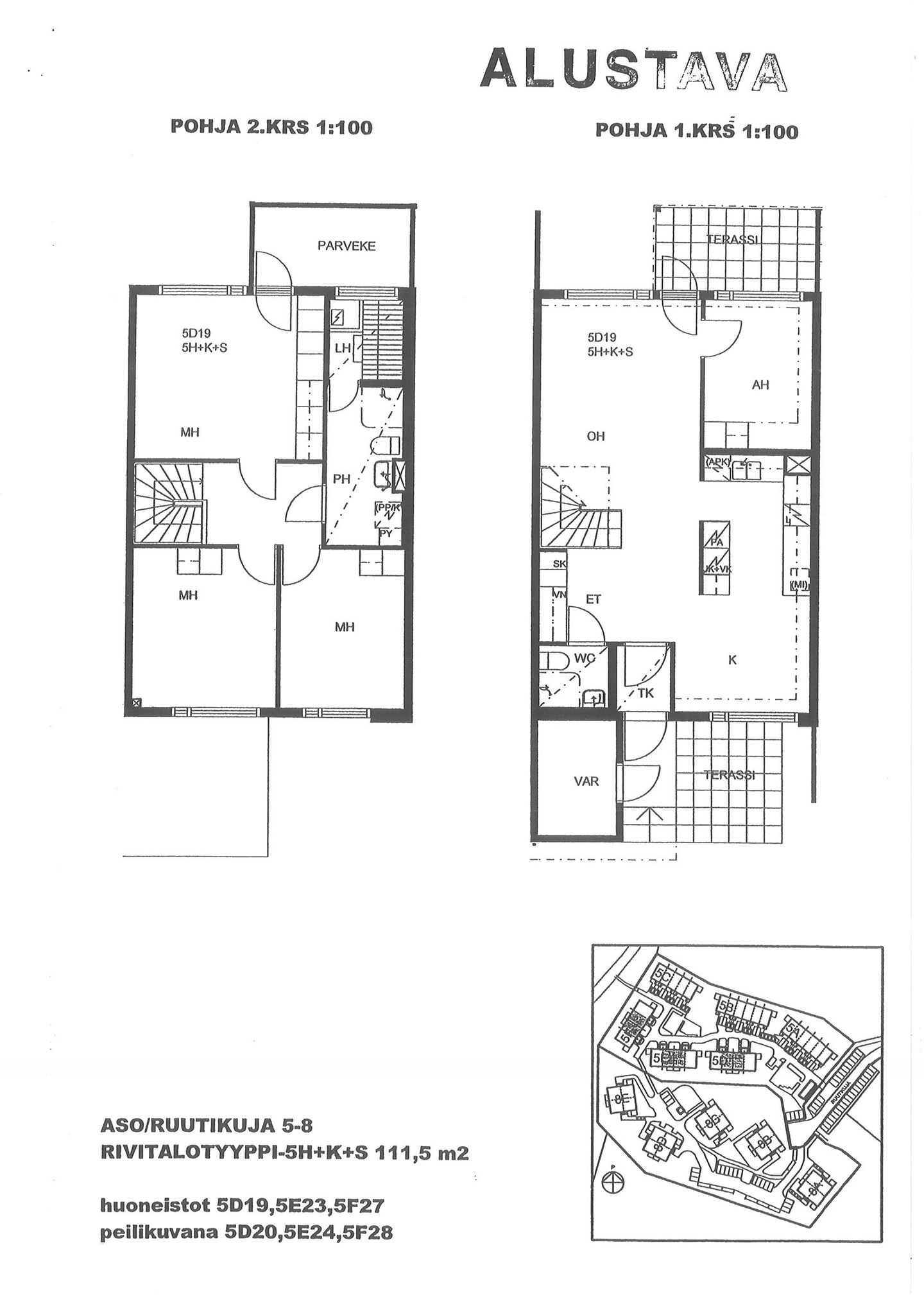 Apartments and floor plans: Ruutikuja 5 ja 8, Piharakennus, Rivitalo