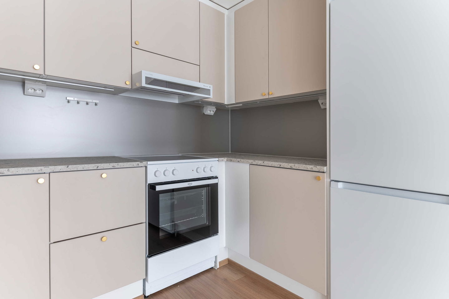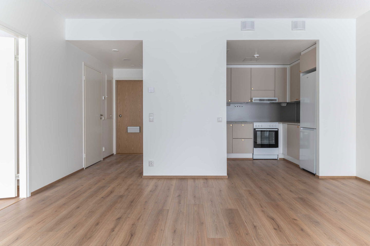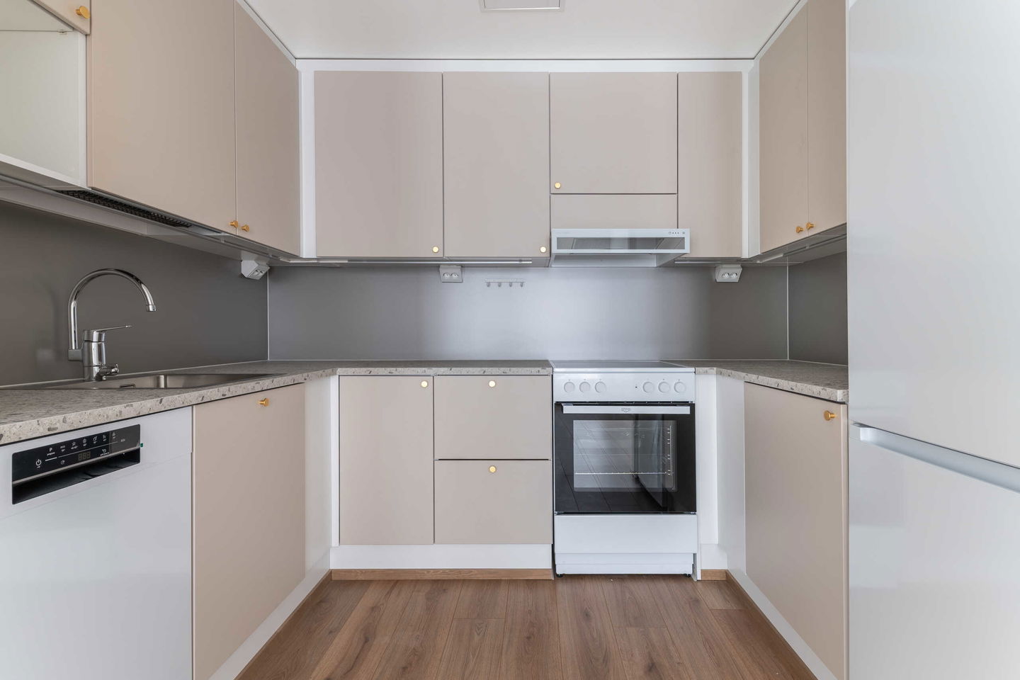 Tämä hyvin suunniteltu kaksio tarjoaa arjen mukavuutta ja tehokasta tilankäyttöä. Asunnon sydän on U-mallinen keittiö, joka hurmaa runsaalla työ- ja laskutilallaan. Keittiö on kuin tehty ruoanlaitosta nauttivalle – kaapistoja ja tasopintaa riittää, ja kokonaisuus avautuu luontevasti oleskelutilaan, luoden avaran ja yhtenäisen tunnelman.