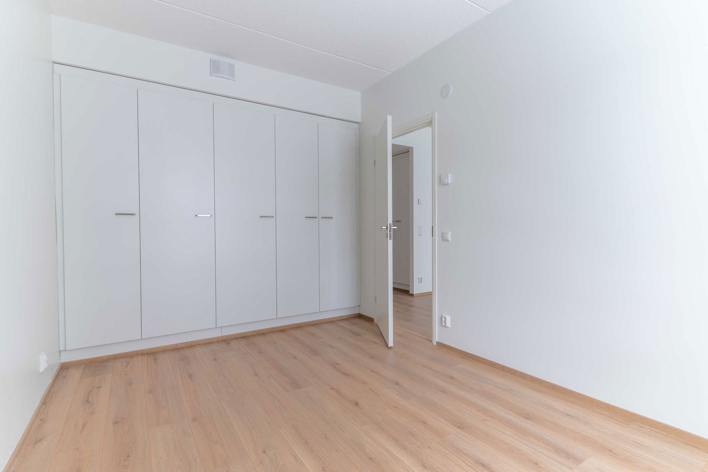 Makuuhuoneessa on erinomaiset säilytystilat, jotka helpottavat arkea ja pitävät kodin siistinä. Huoneen koko mahdollistaa monipuolisen sisustamisen, ja ikkuna tuo tilaan luonnonvaloa.