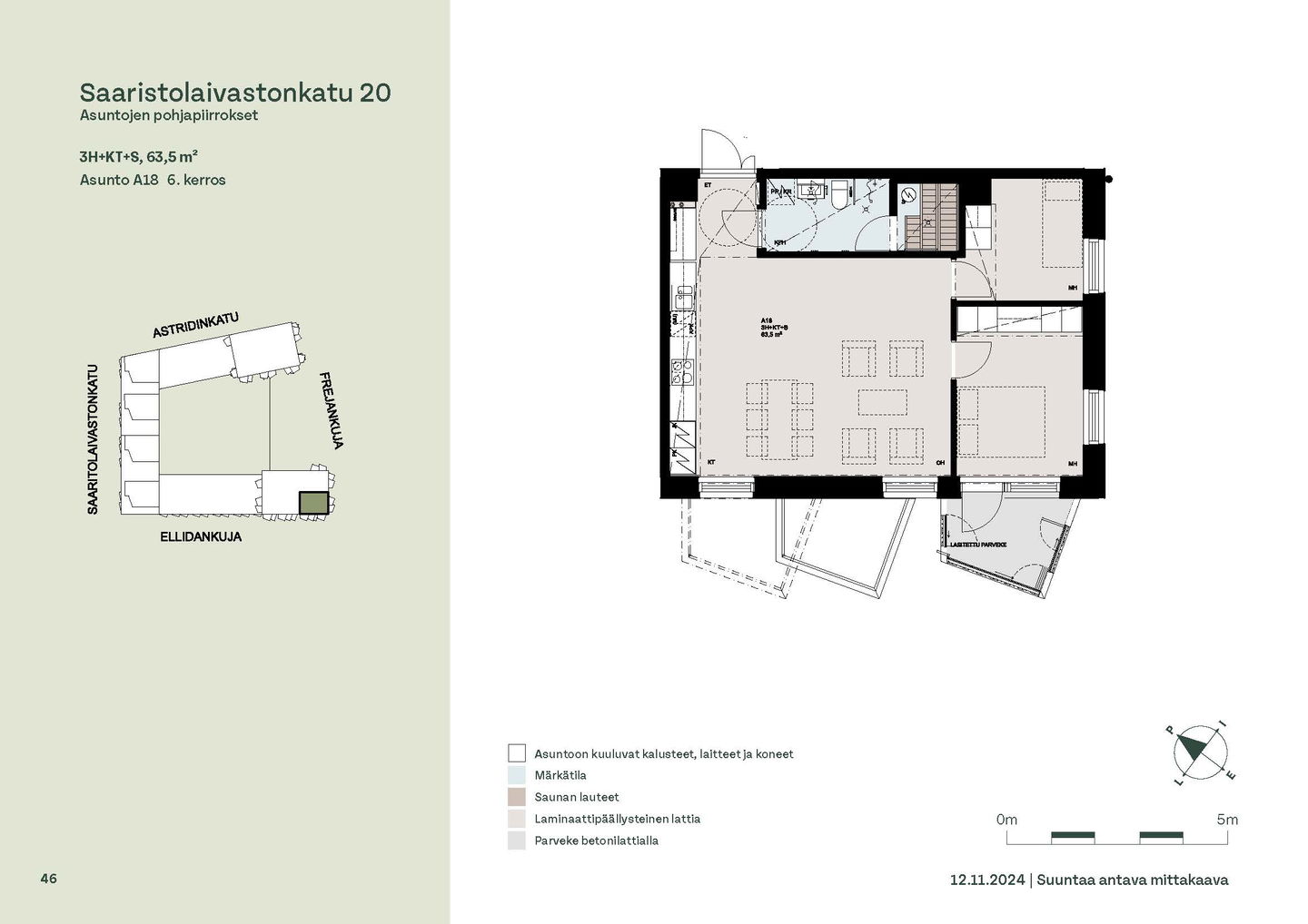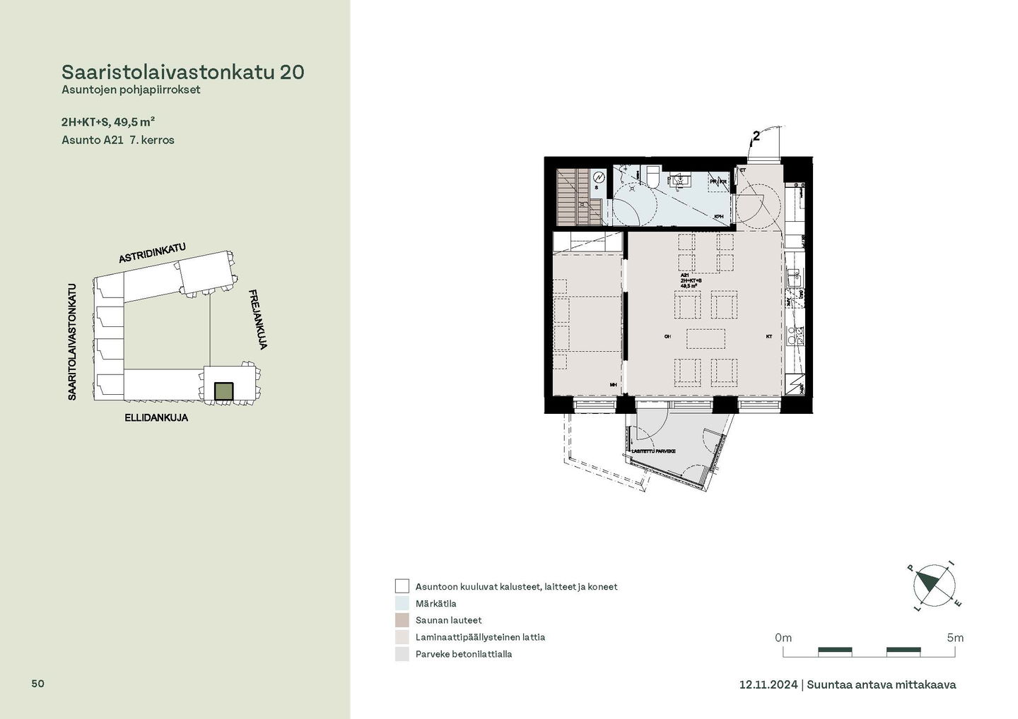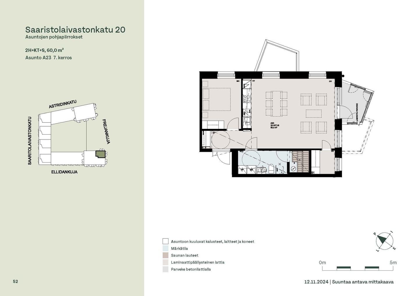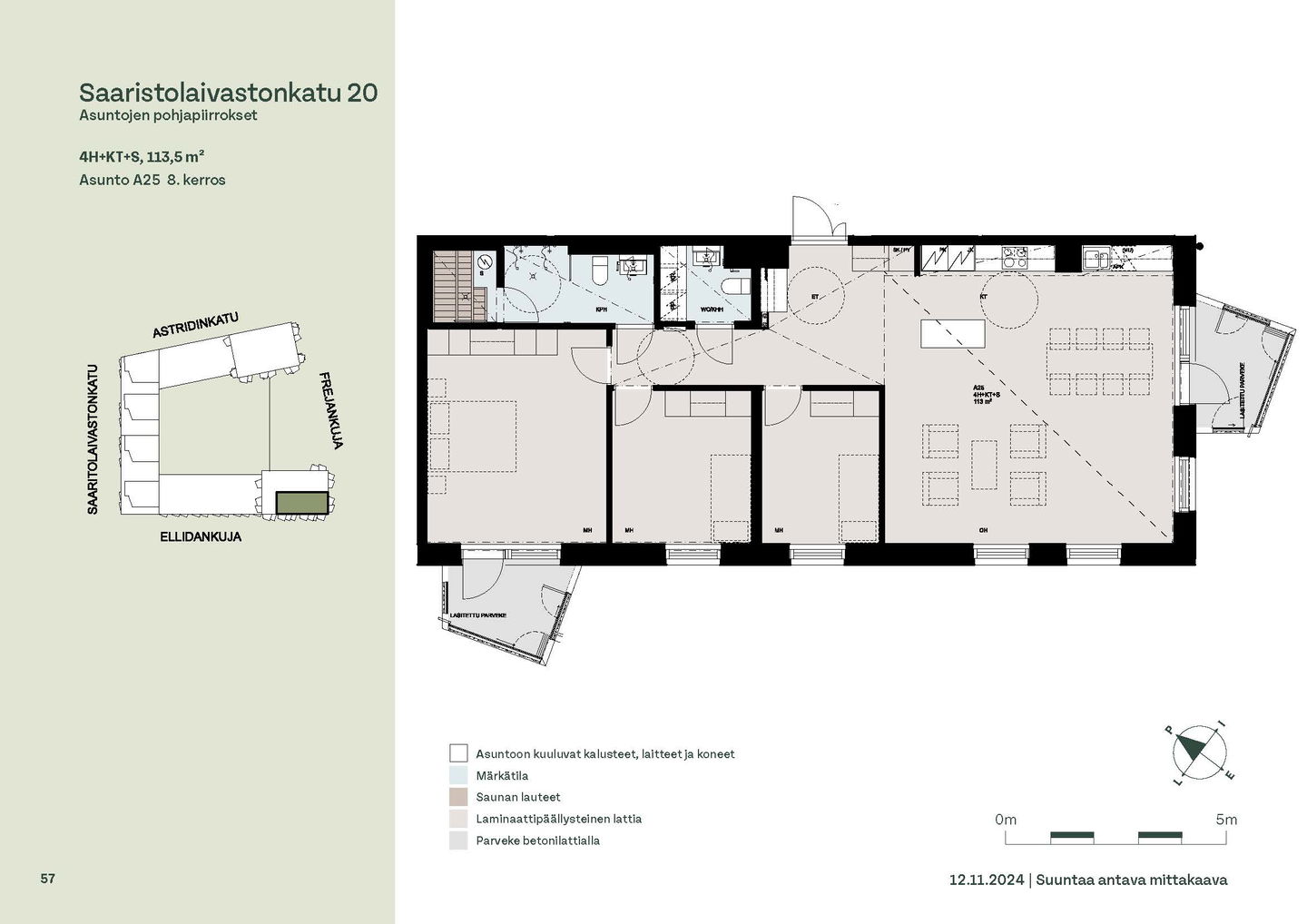 Asuntosäätiön ainutlaatuinen asumisoikeuskohde nousee lähelle meren rantaa Kruunuvuorenrannan upeimpien näkymien äärelle. Suojaisan korttelin muodostava kohde valmistuu kahdessa vaiheessa ja käsittää yhteensä kaksi 4–8-kerroksista asuinrakennusta. Vuoden 2026 alkupuolella valmistuvat toisen vaiheen 51 asumisoikeuskotia, joista osasta avautuvat upeat merimaisemat. Uuden aikakauden kaupunkiasumista edustavan korttelin suunnittelussa on panostettu yhteisöllisyyteen, jopa matalampien luhtitalojen kattoalueet on varattu asukkaiden virkistyskäyttöön. Talosaunan vilvoitteluterassilta avautuvat huikeat maisemat ja korttelipihalta löytyvät suojaisat leikki- ja oleskelualueet. Asukkaiden käytössä on talopesula, monipuoliset harraste- ja varastotilat sekä alueen yhteiskäyttöauto kadun varteen. Kaksioista tilaviin, viiden huoneen asuntoihin vaihtelevissa kodeissa on useita erilaisia asuntopohjia, jotka inspiroivat kokenuttakin sisustajaa. Kaikissa asunnoissa on lasitetut parvekkeet tai terassit ja keittiön varusteluun sisältyy astianpesukone. Kodit kylpevät luonnonvalossa ja ylimmistä kerroksista löytyvät tämän kohteen helmet: kaksikerroksiset parviasunnot, joissa on koko huoneiston levyinen parveke sekä kattoterassi. Osassa koteja on oma sauna ja ikkuna myös kylpyhuoneessa, sekä muutamissa pihatason kodeissa istutusten ympäröimät lasitetut terassit. Saaristolaivastonkadulla nautit mukavasta ja ekologisesta asumisesta. Kohde varustetaan sähköisellä lukitusjärjestelmällä, ja asuntojen vesikiertoisen lattialämmityksen ja -viilennyksen tarvitsema lämmitysenergia tuotetaan maalämmöllä. Kotiovelta avautuvat mitä kauneimmat ulkoilureitit merenrantaan ja alueen viehättäviin puistoihin – lyhyen venematkan päässä kaupungin sykkeestä.
