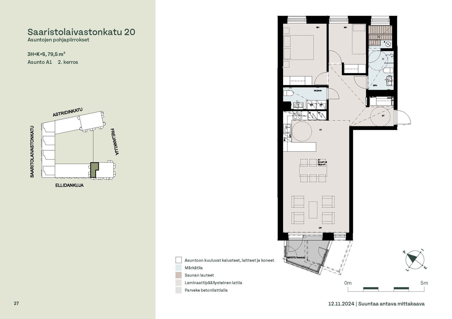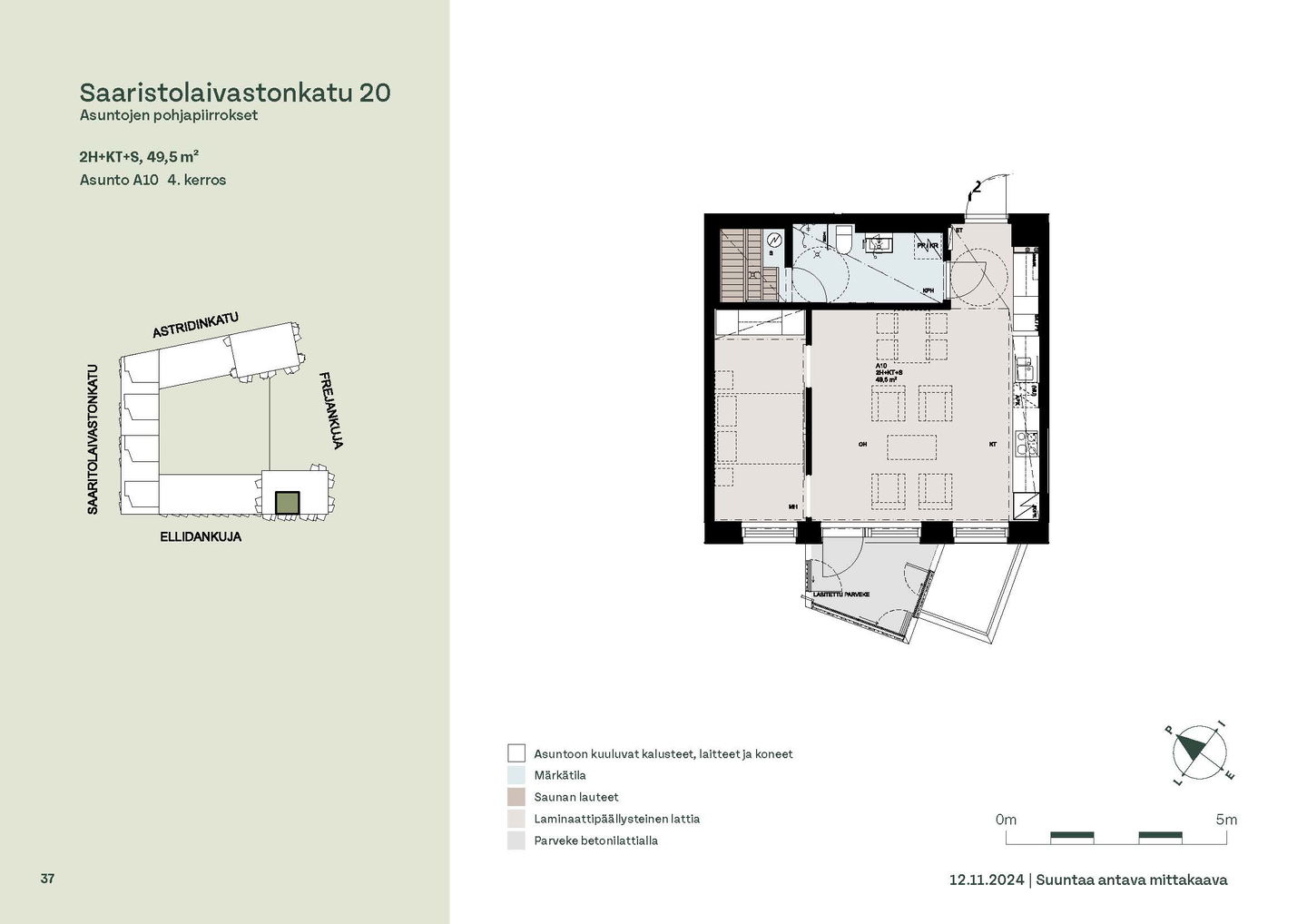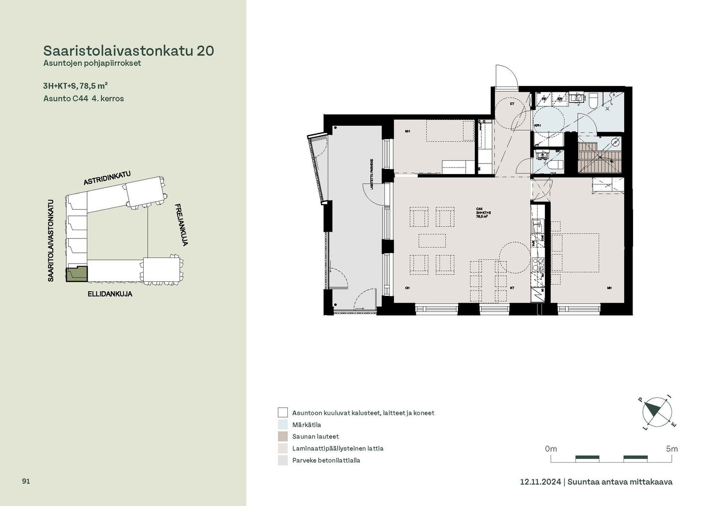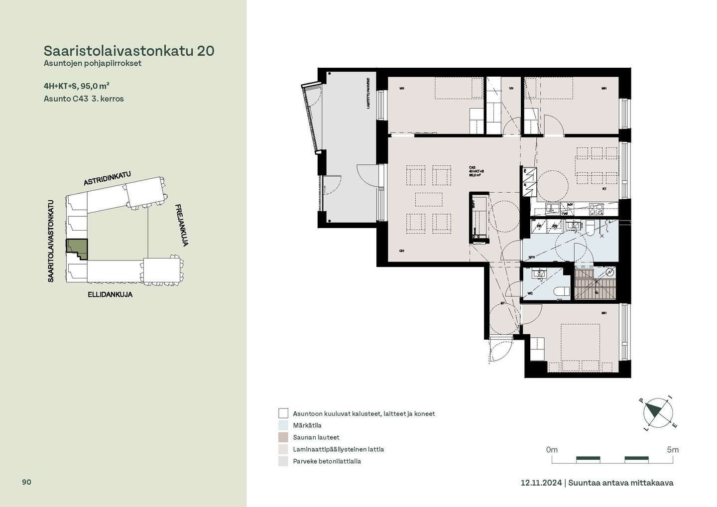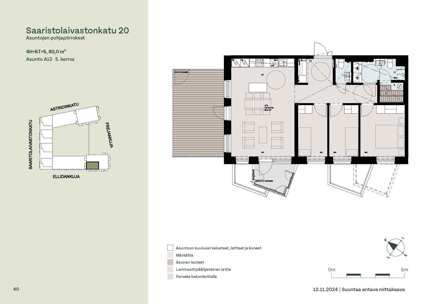 Asuntosäätiön ainutlaatuinen asumisoikeuskohde nousee lähelle meren rantaa Kruunuvuorenrannan upeimpien näkymien äärelle. Suojaisan korttelin muodostava kohde valmistuu kahdessa vaiheessa ja käsittää yhteensä kaksi 4–8-kerroksista asuinrakennusta. Vuoden 2026 alkupuolella valmistuvat toisen vaiheen 51 asumisoikeuskotia, joista osasta avautuvat upeat merimaisemat. Uuden aikakauden kaupunkiasumista edustavan korttelin suunnittelussa on panostettu yhteisöllisyyteen, jopa matalampien luhtitalojen kattoalueet on varattu asukkaiden virkistyskäyttöön. Talosaunan vilvoitteluterassilta avautuvat huikeat maisemat ja korttelipihalta löytyvät suojaisat leikki- ja oleskelualueet. Asukkaiden käytössä on talopesula, monipuoliset harraste- ja varastotilat sekä alueen yhteiskäyttöauto kadun varteen. Kaksioista tilaviin, viiden huoneen asuntoihin vaihtelevissa kodeissa on useita erilaisia asuntopohjia, jotka inspiroivat kokenuttakin sisustajaa. Kaikissa asunnoissa on lasitetut parvekkeet tai terassit ja keittiön varusteluun sisältyy astianpesukone. Kodit kylpevät luonnonvalossa ja ylimmistä kerroksista löytyvät tämän kohteen helmet: kaksikerroksiset parviasunnot, joissa on koko huoneiston levyinen parveke sekä kattoterassi. Osassa koteja on oma sauna ja ikkuna myös kylpyhuoneessa, sekä muutamissa pihatason kodeissa istutusten ympäröimät lasitetut terassit. Saaristolaivastonkadulla nautit mukavasta ja ekologisesta asumisesta. Kohde varustetaan sähköisellä lukitusjärjestelmällä, ja asuntojen vesikiertoisen lattialämmityksen ja -viilennyksen tarvitsema lämmitysenergia tuotetaan maalämmöllä. Kotiovelta avautuvat mitä kauneimmat ulkoilureitit merenrantaan ja alueen viehättäviin puistoihin – lyhyen venematkan päässä kaupungin sykkeestä.