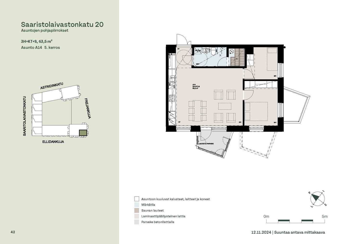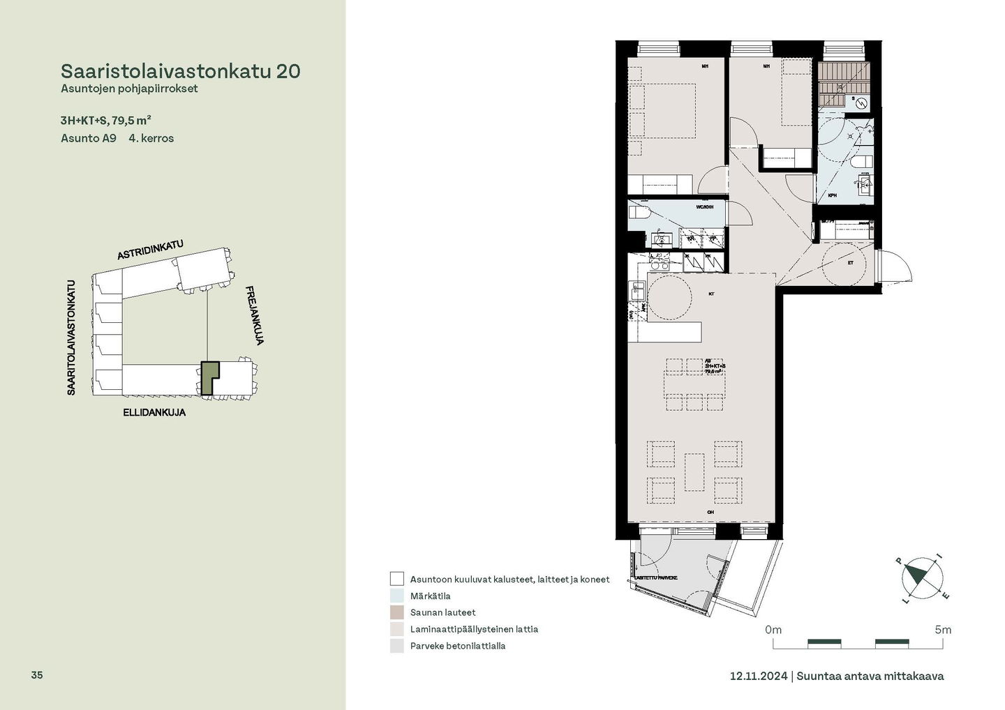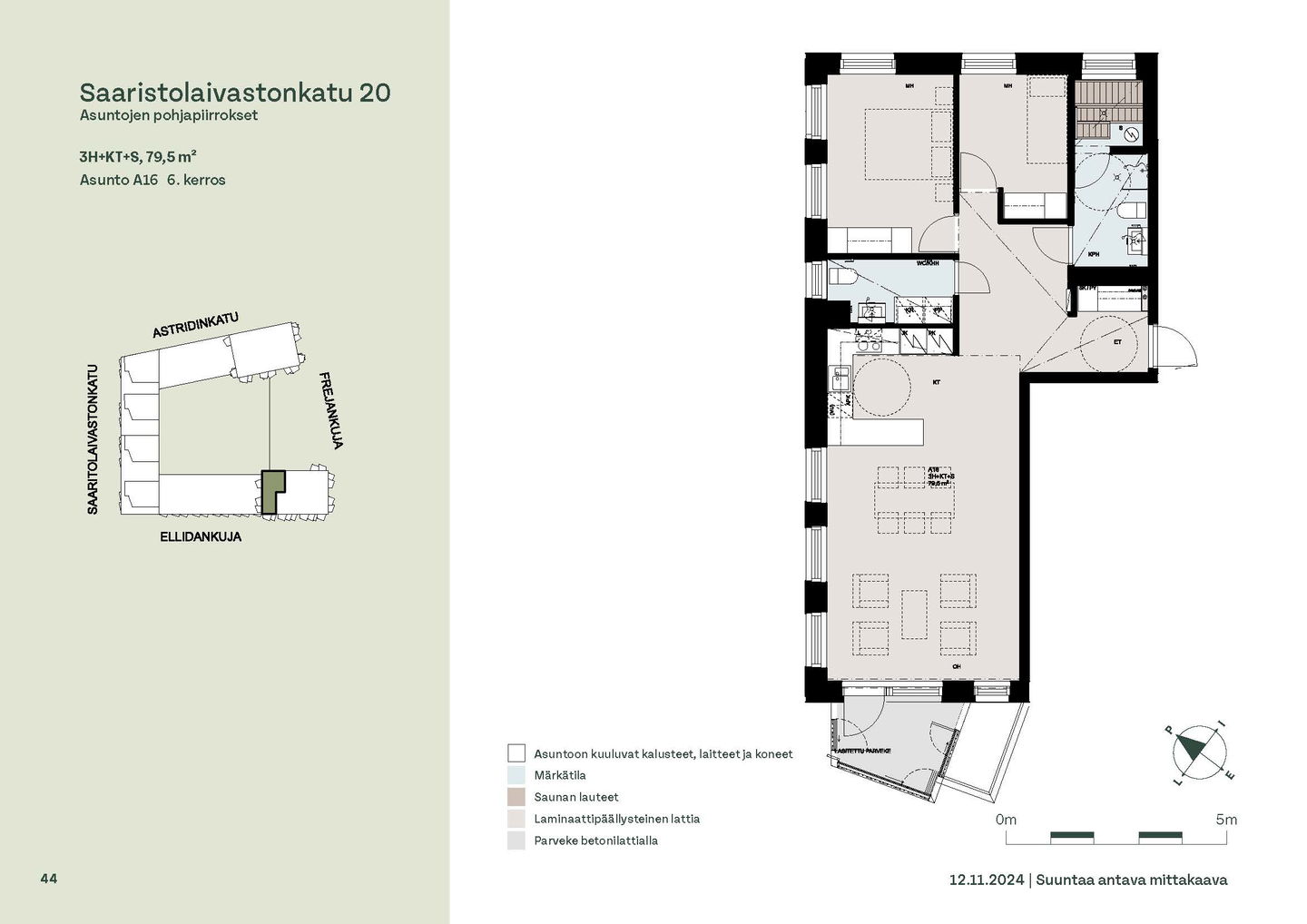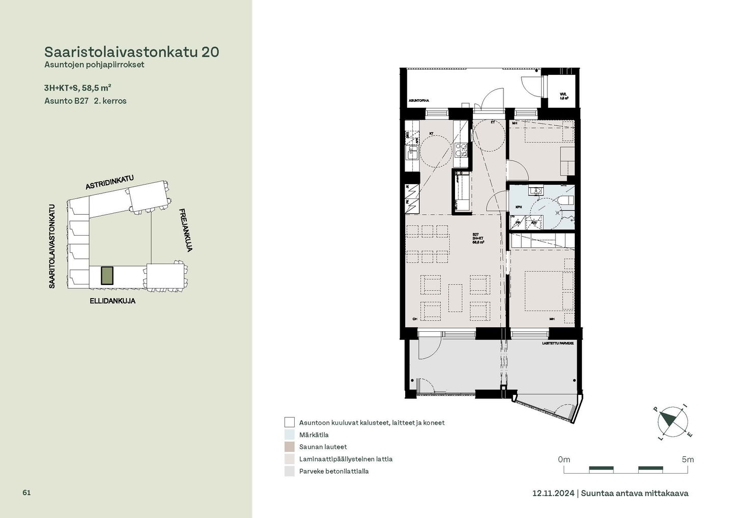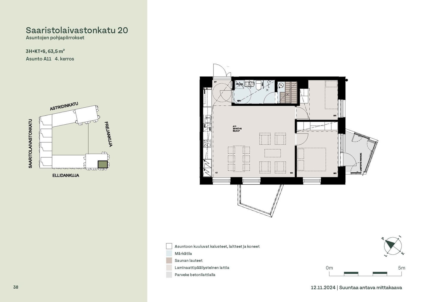 Asuntosäätiön ainutlaatuinen asumisoikeuskohde nousee lähelle meren rantaa Kruunuvuorenrannan upeimpien näkymien äärelle. Suojaisan korttelin muodostava kohde valmistuu kahdessa vaiheessa ja käsittää yhteensä kaksi 4–8-kerroksista asuinrakennusta. Vuoden 2026 alkupuolella valmistuvat toisen vaiheen 51 asumisoikeuskotia, joista osasta avautuvat upeat merimaisemat. Uuden aikakauden kaupunkiasumista edustavan korttelin suunnittelussa on panostettu yhteisöllisyyteen, jopa matalampien luhtitalojen kattoalueet on varattu asukkaiden virkistyskäyttöön. Talosaunan vilvoitteluterassilta avautuvat huikeat maisemat ja korttelipihalta löytyvät suojaisat leikki- ja oleskelualueet. Asukkaiden käytössä on talopesula, monipuoliset harraste- ja varastotilat sekä alueen yhteiskäyttöauto kadun varteen. Kaksioista tilaviin, viiden huoneen asuntoihin vaihtelevissa kodeissa on useita erilaisia asuntopohjia, jotka inspiroivat kokenuttakin sisustajaa. Kaikissa asunnoissa on lasitetut parvekkeet tai terassit ja keittiön varusteluun sisältyy astianpesukone. Kodit kylpevät luonnonvalossa ja ylimmistä kerroksista löytyvät tämän kohteen helmet: kaksikerroksiset parviasunnot, joissa on koko huoneiston levyinen parveke sekä kattoterassi. Osassa koteja on oma sauna ja ikkuna myös kylpyhuoneessa, sekä muutamissa pihatason kodeissa istutusten ympäröimät lasitetut terassit. Saaristolaivastonkadulla nautit mukavasta ja ekologisesta asumisesta. Kohde varustetaan sähköisellä lukitusjärjestelmällä, ja asuntojen vesikiertoisen lattialämmityksen ja -viilennyksen tarvitsema lämmitysenergia tuotetaan maalämmöllä. Kotiovelta avautuvat mitä kauneimmat ulkoilureitit merenrantaan ja alueen viehättäviin puistoihin – lyhyen venematkan päässä kaupungin sykkeestä.
