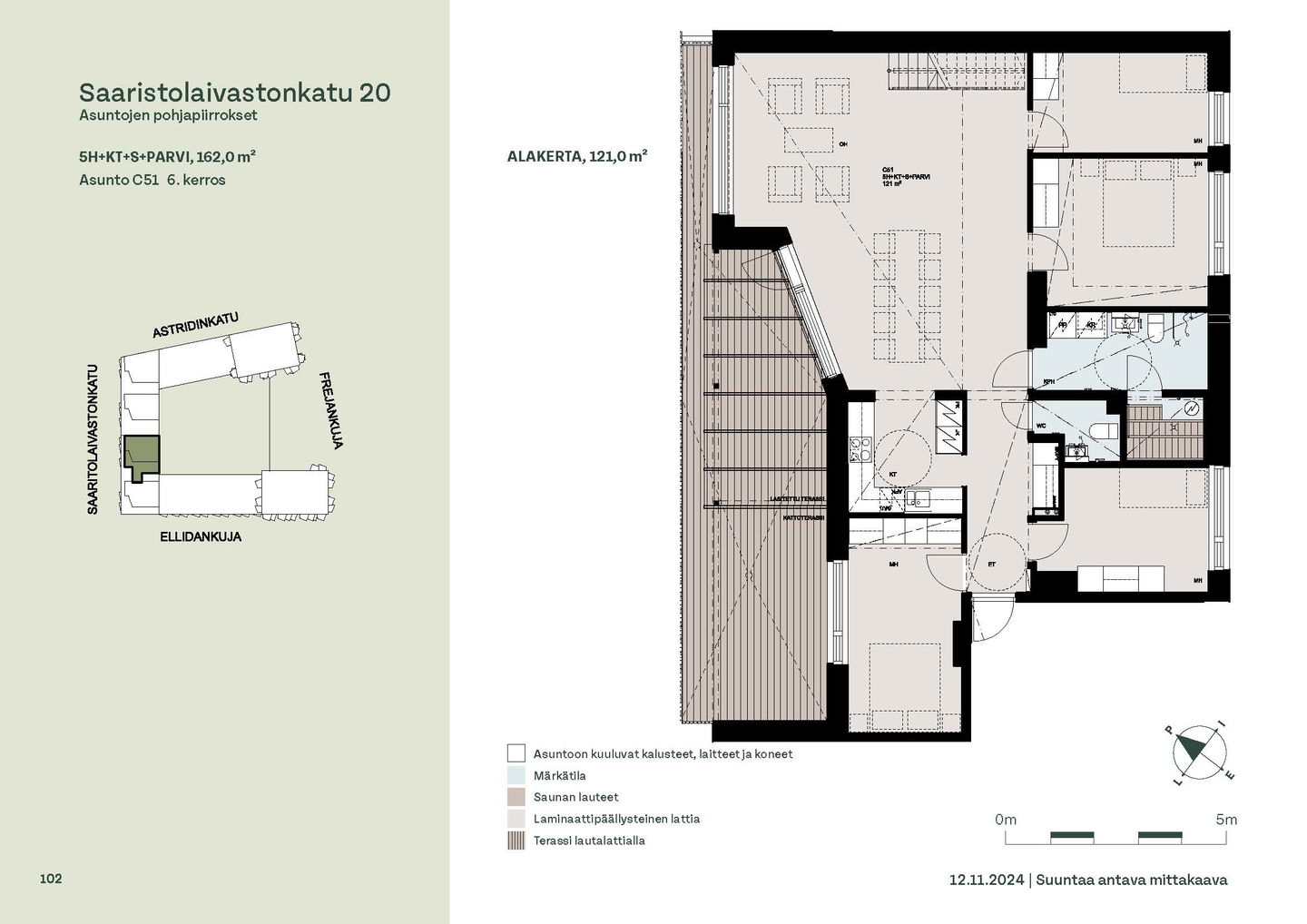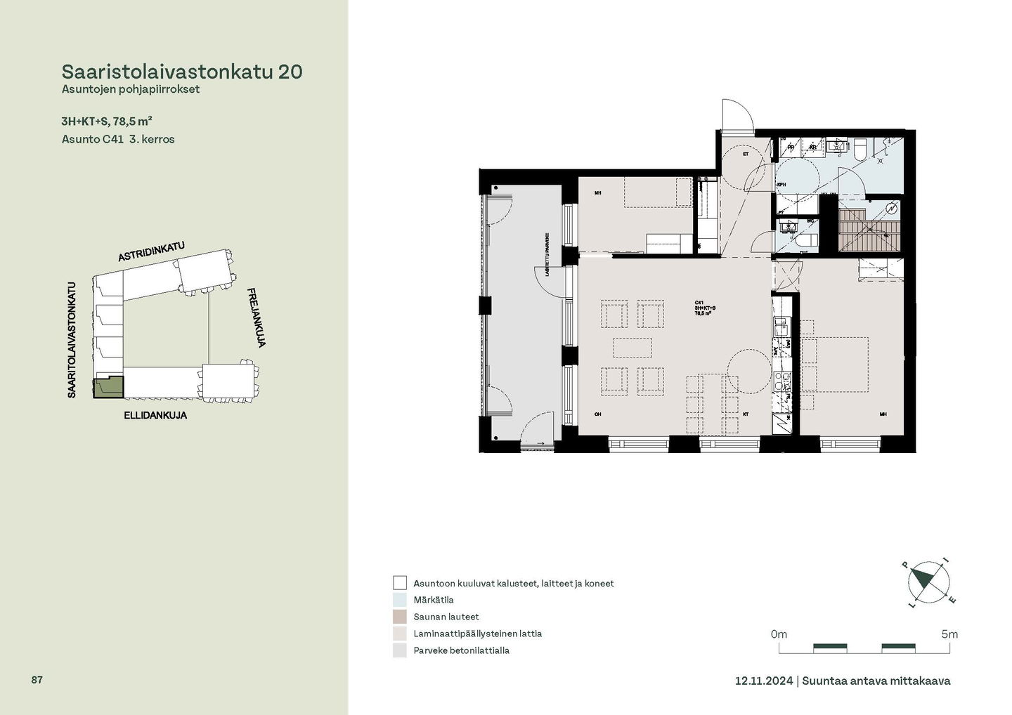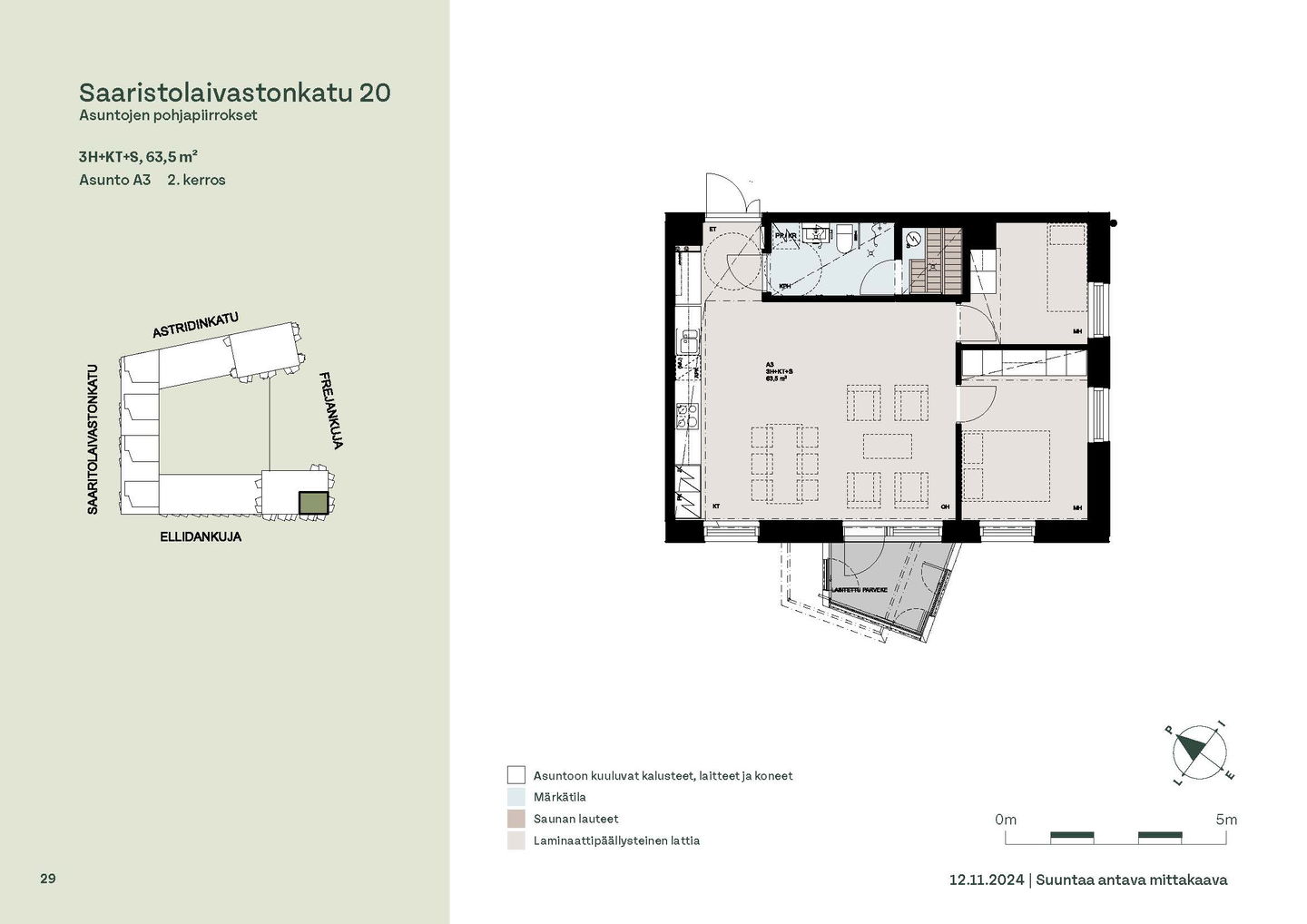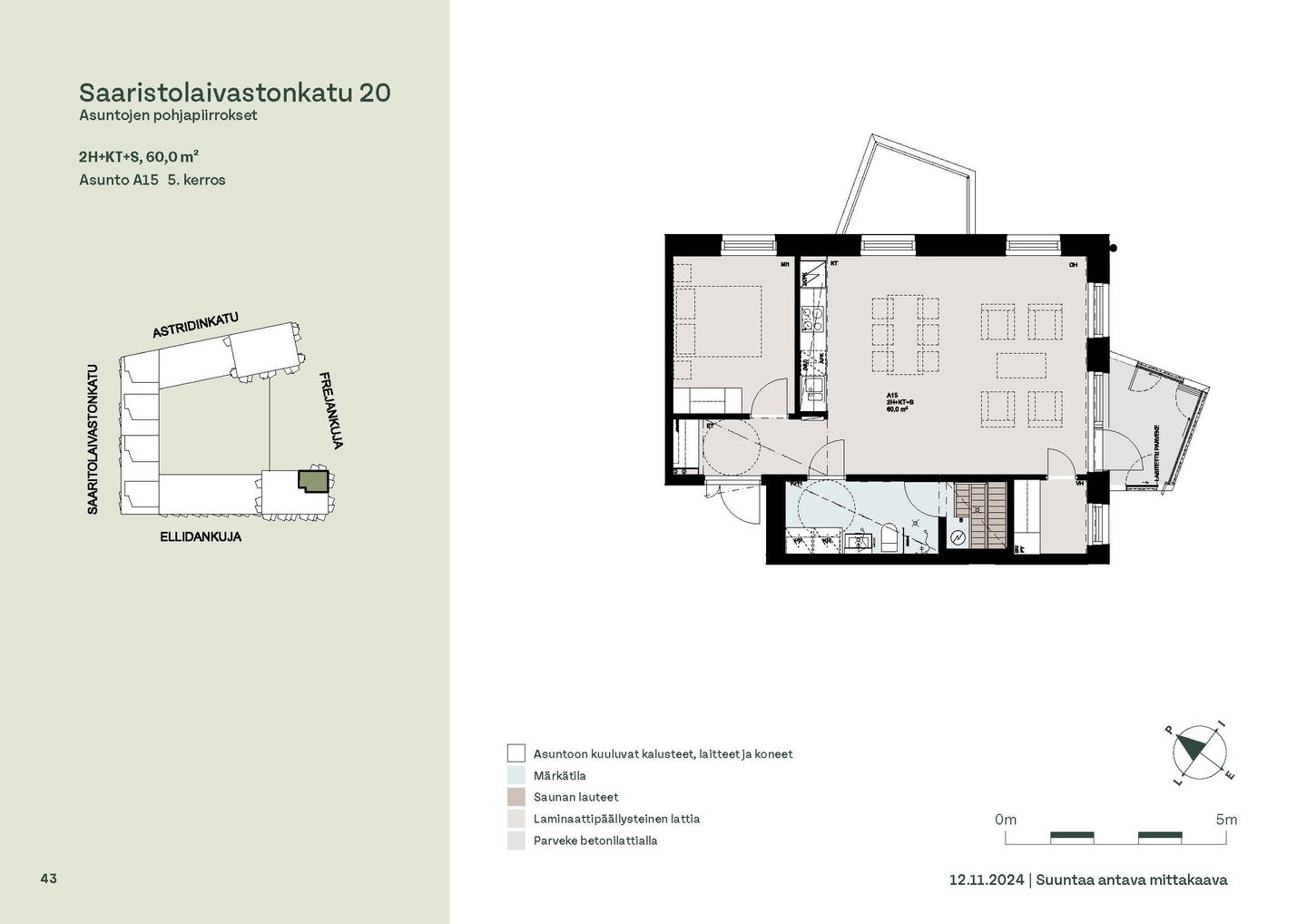 Asuntosäätiön ainutlaatuinen asumisoikeuskohde nousee lähelle meren rantaa Kruunuvuorenrannan upeimpien näkymien äärelle. Suojaisan korttelin muodostava kohde valmistuu kahdessa vaiheessa ja käsittää yhteensä kaksi 4–8-kerroksista asuinrakennusta. Vuoden 2026 alkupuolella valmistuvat toisen vaiheen 51 asumisoikeuskotia, joista osasta avautuvat upeat merimaisemat. Uuden aikakauden kaupunkiasumista edustavan korttelin suunnittelussa on panostettu yhteisöllisyyteen, jopa matalampien luhtitalojen kattoalueet on varattu asukkaiden virkistyskäyttöön. Talosaunan vilvoitteluterassilta avautuvat huikeat maisemat ja korttelipihalta löytyvät suojaisat leikki- ja oleskelualueet. Asukkaiden käytössä on talopesula, monipuoliset harraste- ja varastotilat sekä alueen yhteiskäyttöauto kadun varteen. Kaksioista tilaviin, viiden huoneen asuntoihin vaihtelevissa kodeissa on useita erilaisia asuntopohjia, jotka inspiroivat kokenuttakin sisustajaa. Kaikissa asunnoissa on lasitetut parvekkeet tai terassit ja keittiön varusteluun sisältyy astianpesukone. Kodit kylpevät luonnonvalossa ja ylimmistä kerroksista löytyvät tämän kohteen helmet: kaksikerroksiset parviasunnot, joissa on koko huoneiston levyinen parveke sekä kattoterassi. Osassa koteja on oma sauna ja ikkuna myös kylpyhuoneessa, sekä muutamissa pihatason kodeissa istutusten ympäröimät lasitetut terassit. Saaristolaivastonkadulla nautit mukavasta ja ekologisesta asumisesta. Kohde varustetaan sähköisellä lukitusjärjestelmällä, ja asuntojen vesikiertoisen lattialämmityksen ja -viilennyksen tarvitsema lämmitysenergia tuotetaan maalämmöllä. Kotiovelta avautuvat mitä kauneimmat ulkoilureitit merenrantaan ja alueen viehättäviin puistoihin – lyhyen venematkan päässä kaupungin sykkeestä.