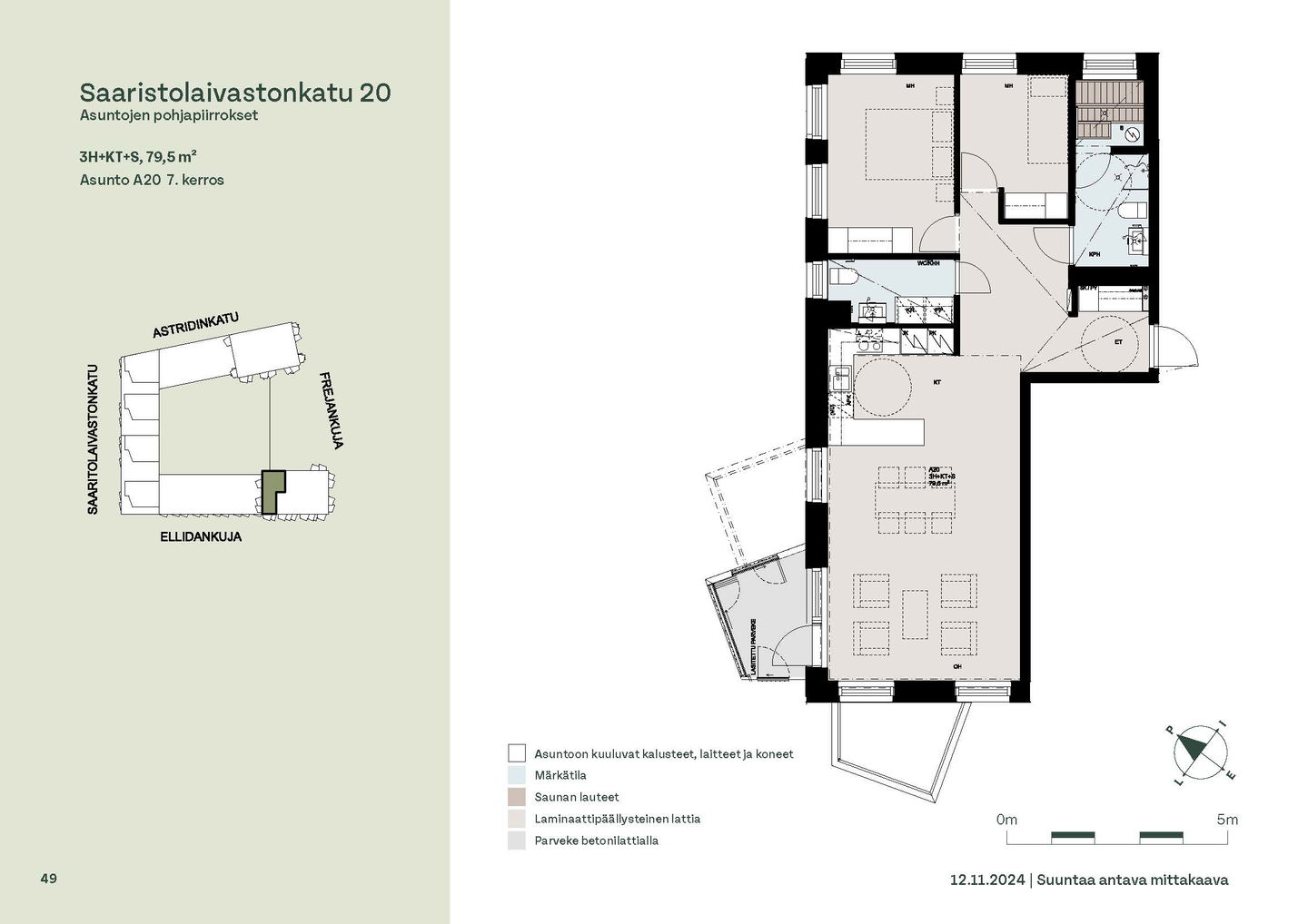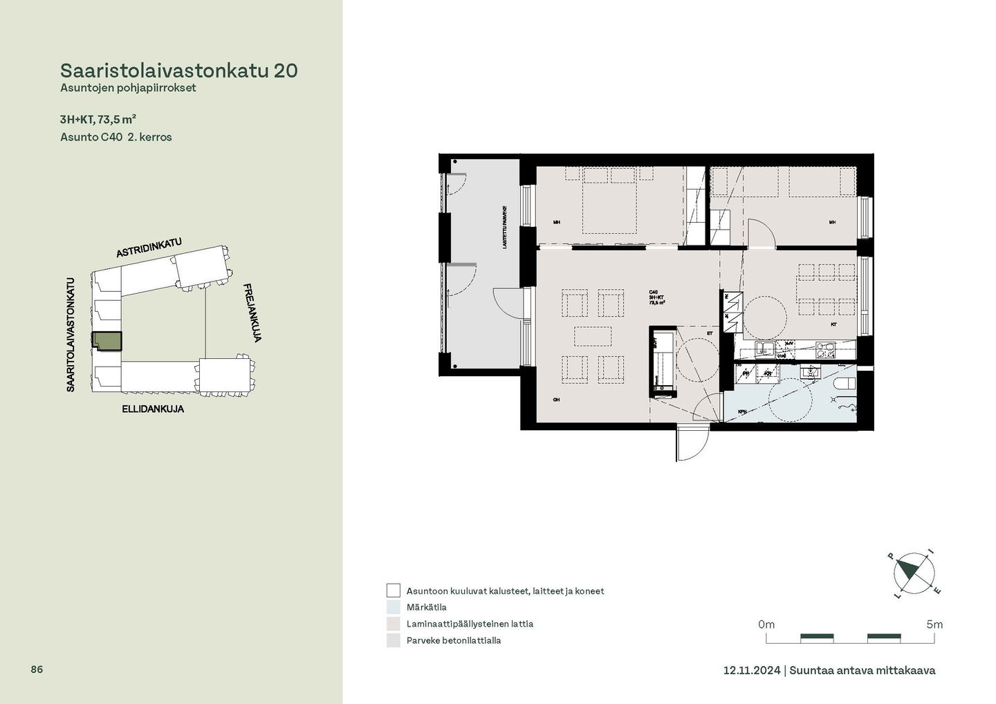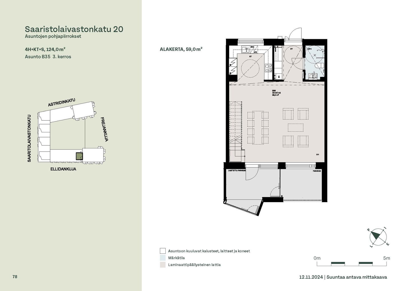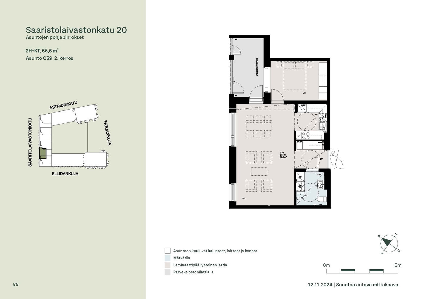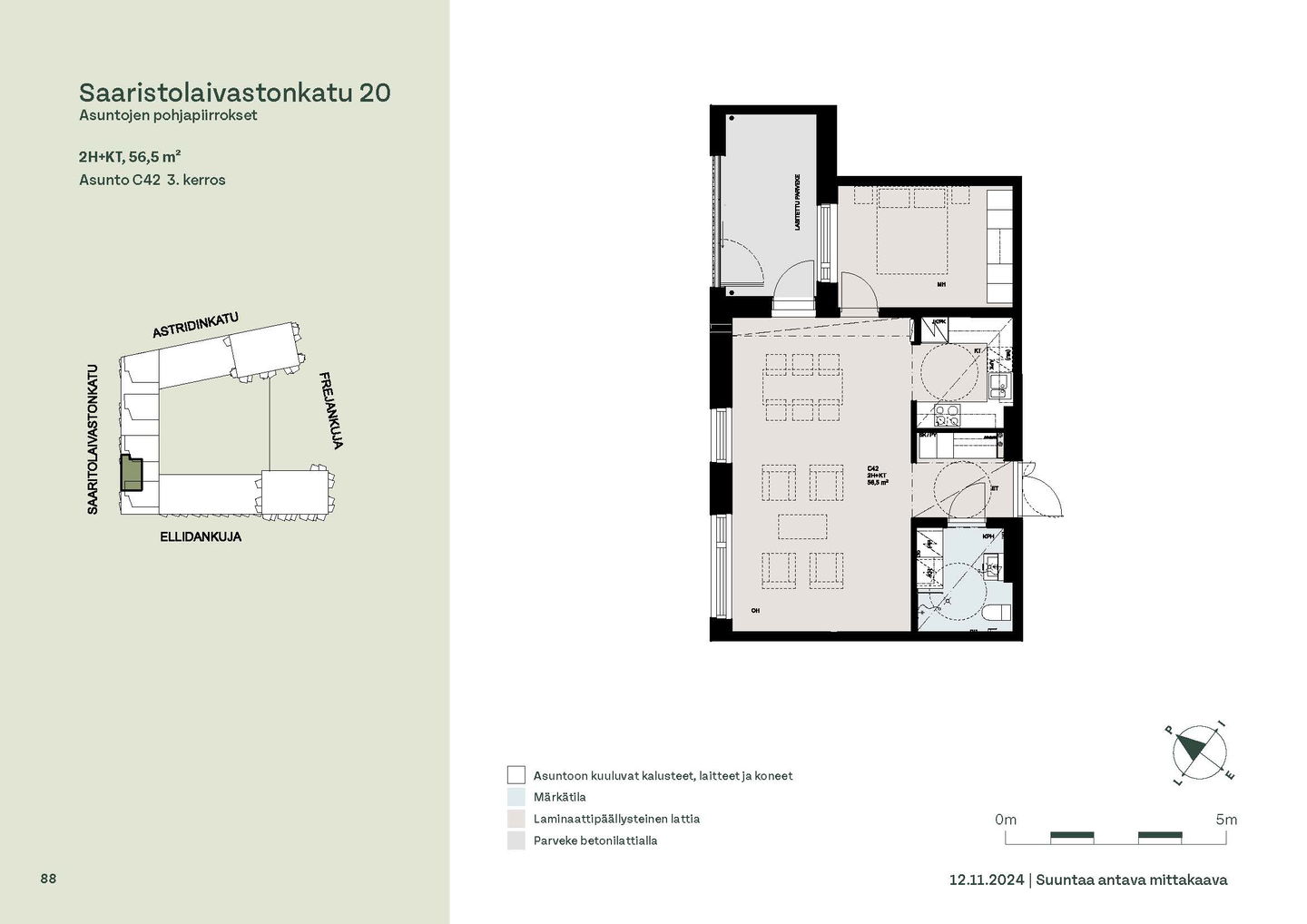 Asuntosäätiön ainutlaatuinen asumisoikeuskohde nousee lähelle meren rantaa Kruunuvuorenrannan upeimpien näkymien äärelle. Suojaisan korttelin muodostava kohde valmistuu kahdessa vaiheessa ja käsittää yhteensä kaksi 4–8-kerroksista asuinrakennusta. Vuoden 2026 alkupuolella valmistuvat toisen vaiheen 51 asumisoikeuskotia, joista osasta avautuvat upeat merimaisemat. Uuden aikakauden kaupunkiasumista edustavan korttelin suunnittelussa on panostettu yhteisöllisyyteen, jopa matalampien luhtitalojen kattoalueet on varattu asukkaiden virkistyskäyttöön. Talosaunan vilvoitteluterassilta avautuvat huikeat maisemat ja korttelipihalta löytyvät suojaisat leikki- ja oleskelualueet. Asukkaiden käytössä on talopesula, monipuoliset harraste- ja varastotilat sekä alueen yhteiskäyttöauto kadun varteen. Kaksioista tilaviin, viiden huoneen asuntoihin vaihtelevissa kodeissa on useita erilaisia asuntopohjia, jotka inspiroivat kokenuttakin sisustajaa. Kaikissa asunnoissa on lasitetut parvekkeet tai terassit ja keittiön varusteluun sisältyy astianpesukone. Kodit kylpevät luonnonvalossa ja ylimmistä kerroksista löytyvät tämän kohteen helmet: kaksikerroksiset parviasunnot, joissa on koko huoneiston levyinen parveke sekä kattoterassi. Osassa koteja on oma sauna ja ikkuna myös kylpyhuoneessa, sekä muutamissa pihatason kodeissa istutusten ympäröimät lasitetut terassit. Saaristolaivastonkadulla nautit mukavasta ja ekologisesta asumisesta. Kohde varustetaan sähköisellä lukitusjärjestelmällä, ja asuntojen vesikiertoisen lattialämmityksen ja -viilennyksen tarvitsema lämmitysenergia tuotetaan maalämmöllä. Kotiovelta avautuvat mitä kauneimmat ulkoilureitit merenrantaan ja alueen viehättäviin puistoihin – lyhyen venematkan päässä kaupungin sykkeestä.