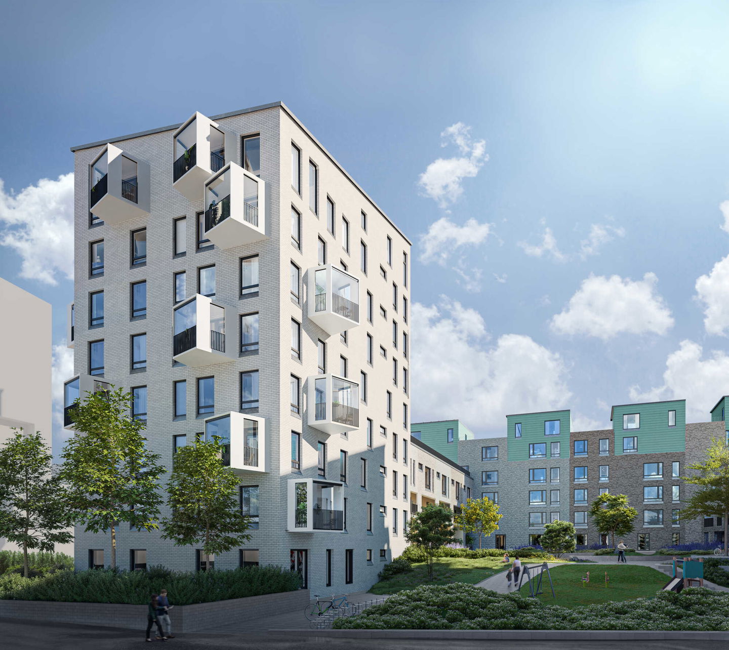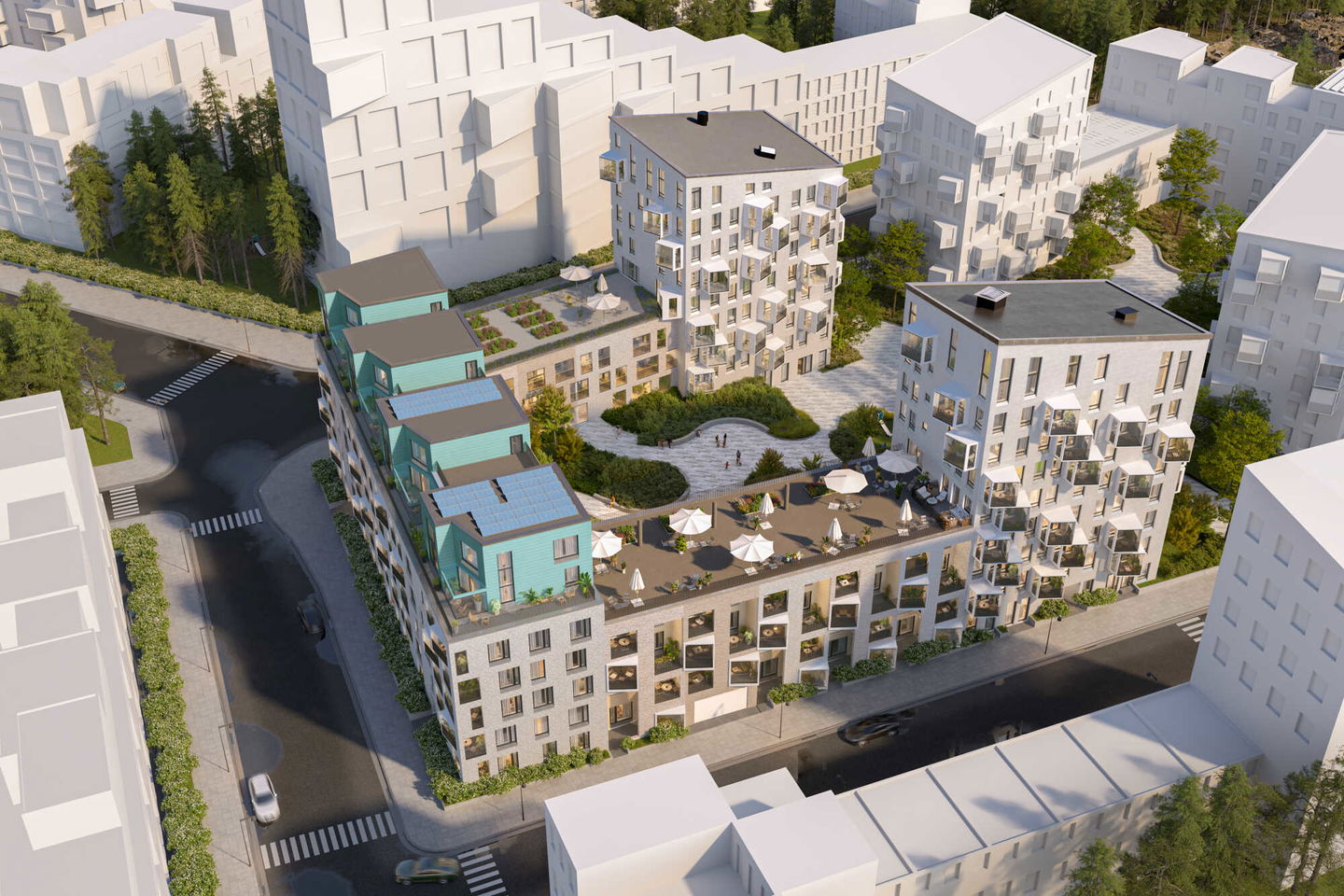 Uuden aikakauden kaupunkiasumista edustavan korttelin suunnittelussa on panostettu yhteisöllisyyteen, jopa matalampien luhtitalojen kattoalueet on varattu asukkaiden virkistyskäyttöön. Talosaunan vilvoitteluterassilta avautuvat huikeat maisemat ja korttelipihalta löytyvät suojaisat leikki- ja oleskelualueet. Asukkaiden käytössä on talopesula, monipuoliset harraste- ja varastotilat sekä alueen yhteiskäyttöauto kadun varteen.