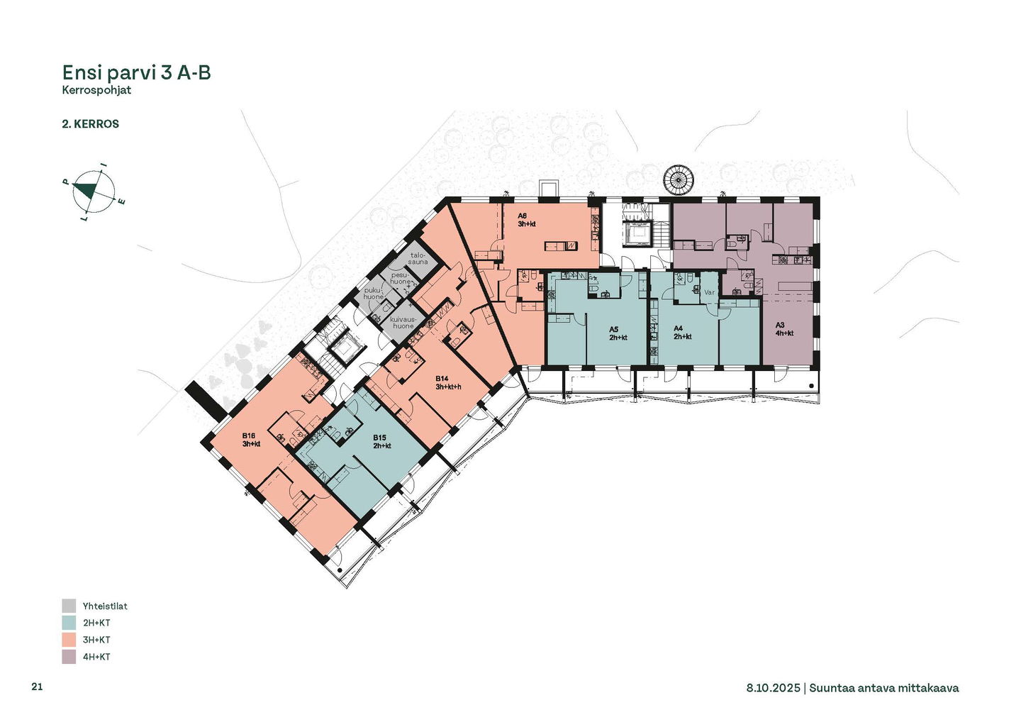 Ensi parven upeat, valoisat kodit tarjoavat rauhallisen asuinympäristön kaupungin kupeessa, arvostettujen luontokohteiden äärellä. Kolmeen 5-6 -kerroksiseen taloon valmistuu yhteensä 115 hyvin suunniteltua asumisoikeuskotia. Huoneistojen koot vaihtelevat 32-neliöisistä yksiöistä lähes sadan neliön viisihuoneisiin perheasuntoihin. Monipuoliset huoneistopohjat ja toimivat pohjaratkaisut inspiroivat sisustajaa – näistä asunnoista jokainen saa luotua juuri omannäköisen kodin. Asunnon materiaalivalintoihin on mahdollista vaikuttaa C-D -rapuissa 10.3.26 asti ja A-B -rapuissa 22.6.26 asti. Huom. Lisähintaisten tuotteiden valintojen eräpäivät erikseen. E-F rapuissa asuntojen materiaalit vaihtelevat kerroksittain. Tutustu valittavissa oleviin materiaaleihin oheisista materiaaliesitteistä!