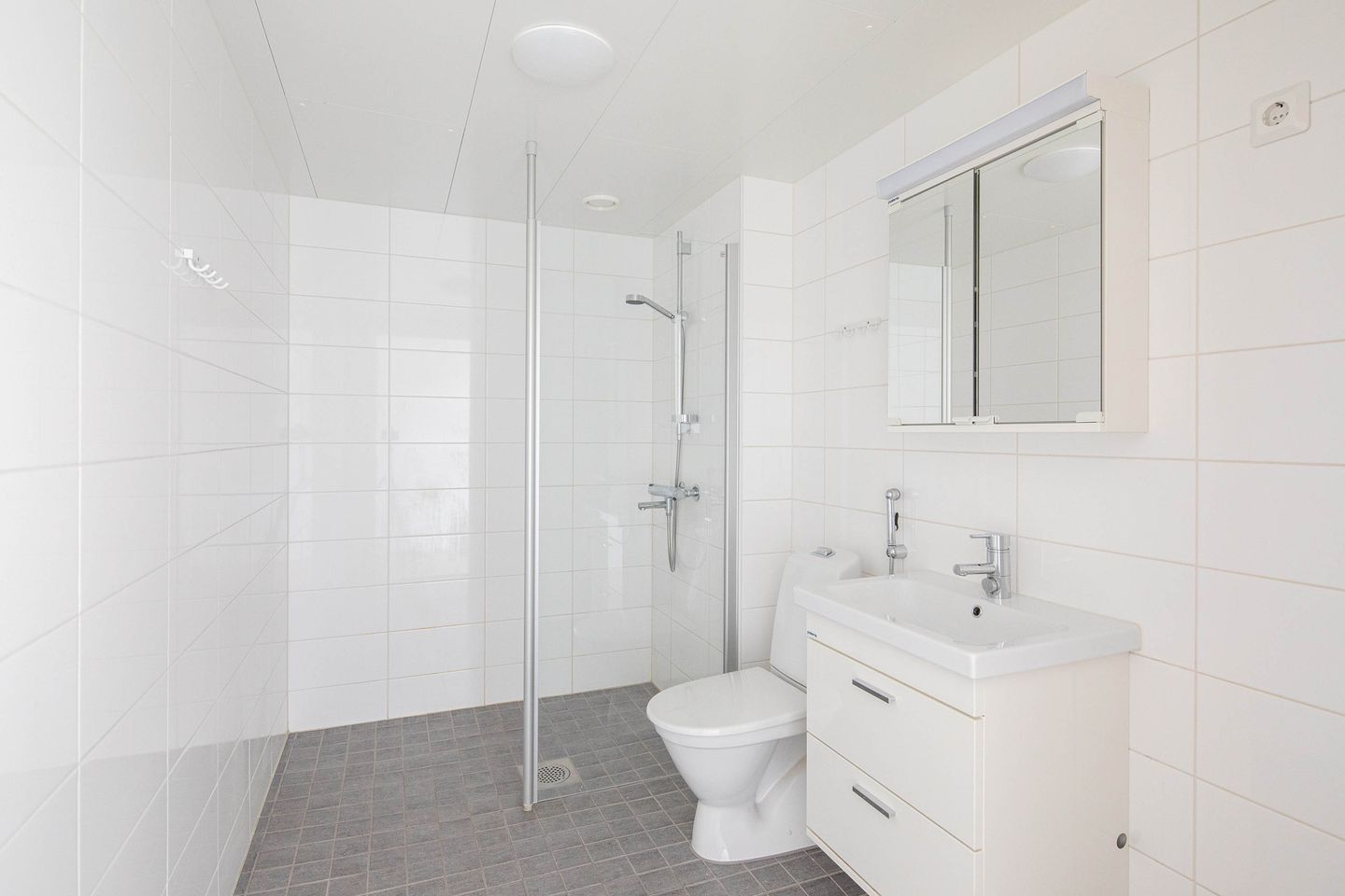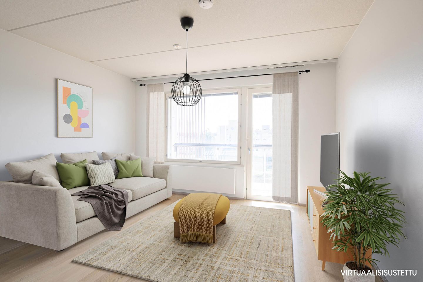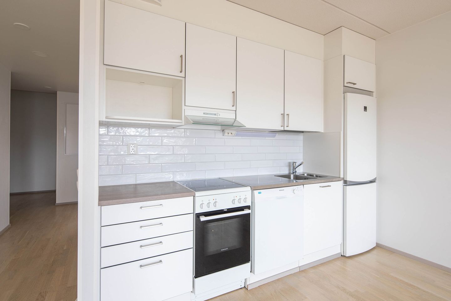 Olohuone ja keittiö muodostavat avaran oleskelutilan, jossa on hyvin tilaa ruokailuryhmälle ja sohvaryhmälle. Keittiössä on nykyaikaiset kodinkoneet ja runsaasti säilytystilaa. Makuuhuoneessa on runsaasti kaappitilaa ja eteiseen on sijoitettu lisää käytännöllisiä säilytysratkaisuja. Tilava kylpyhuone tarjoaa paikan pyykinpesukoneelle.