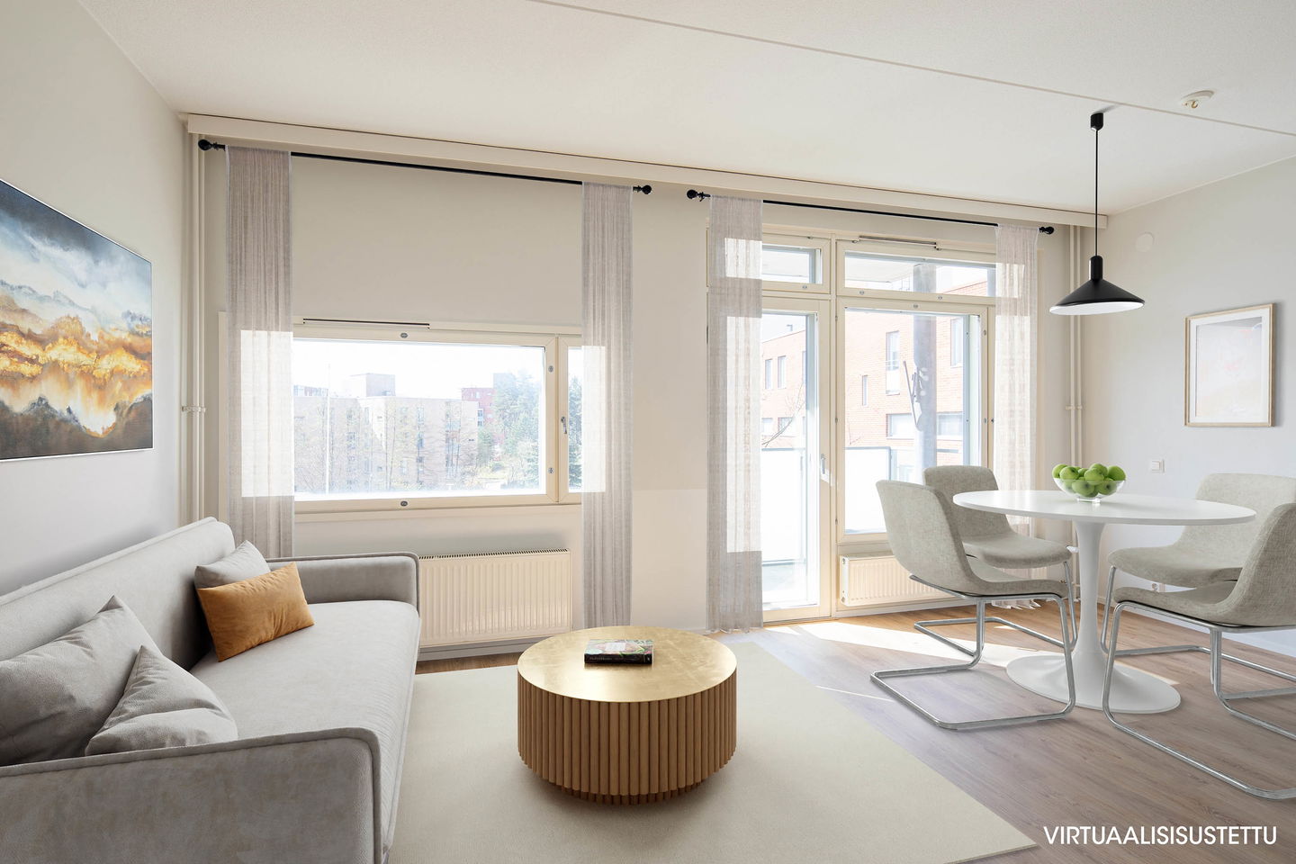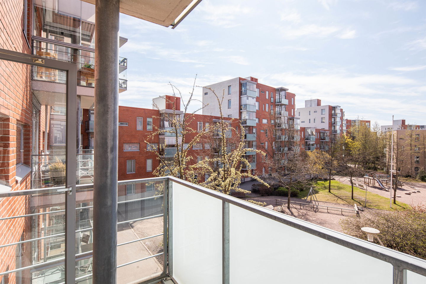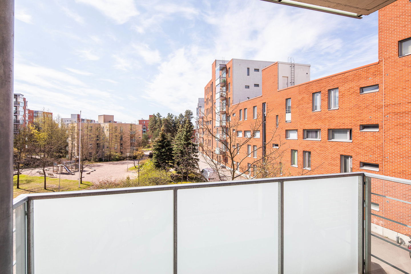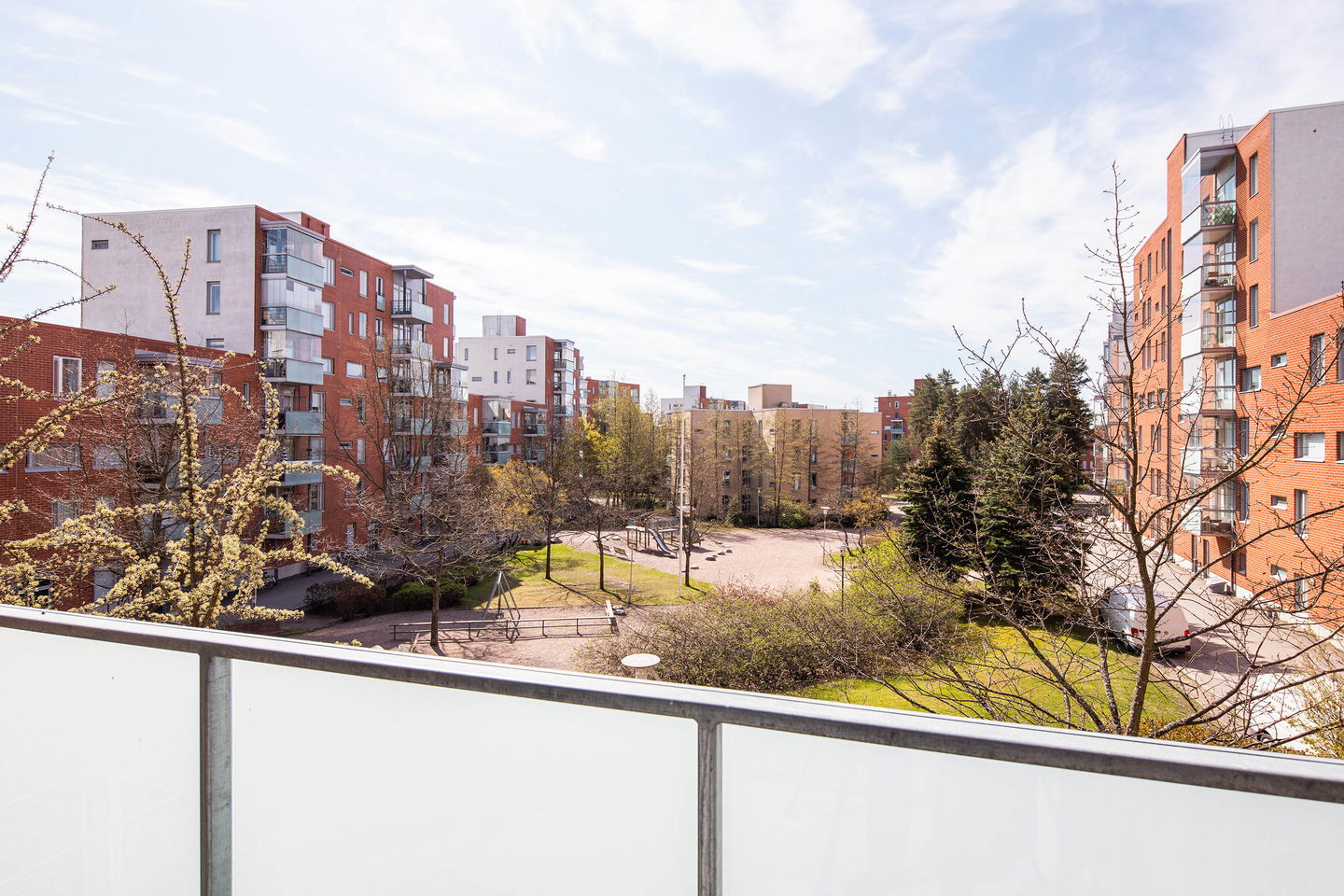 Tervetuloa tutustumaan tähän kaksioon Helsingin Vuosaaressa! Tämä asunto sijaitsee talon kolmannessa kerroksessa, ja sen ikkunat sekä oma terassi avautuvat suojaisalle sisäpihalle.