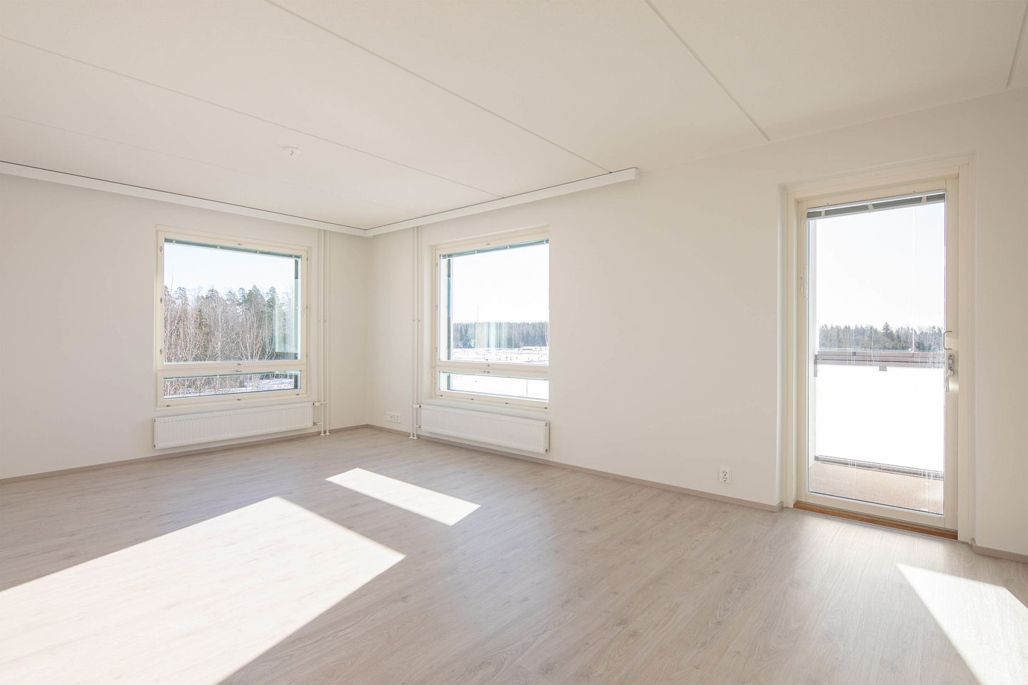 Tähän kotiin tulvii luonnonvaloa kahdesta ilmansuunnasta: etelästä ja idästä.