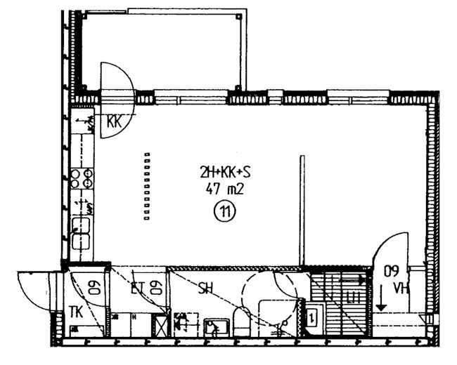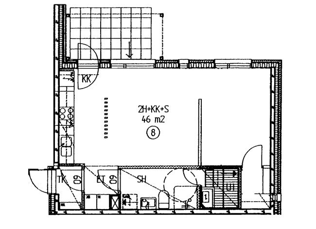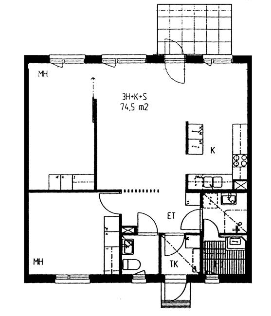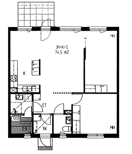 Apartments and floor plans: Haukkamäentie 4, Luhtikäytävätalo, Piharakennus