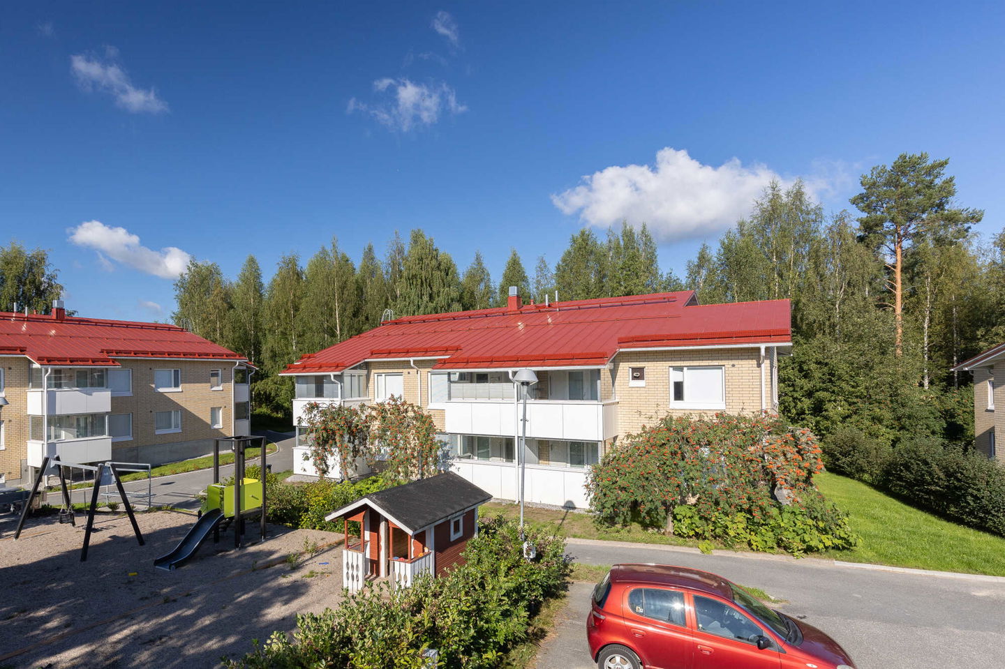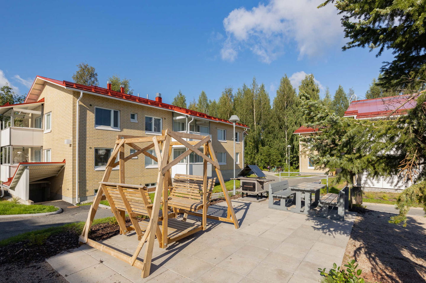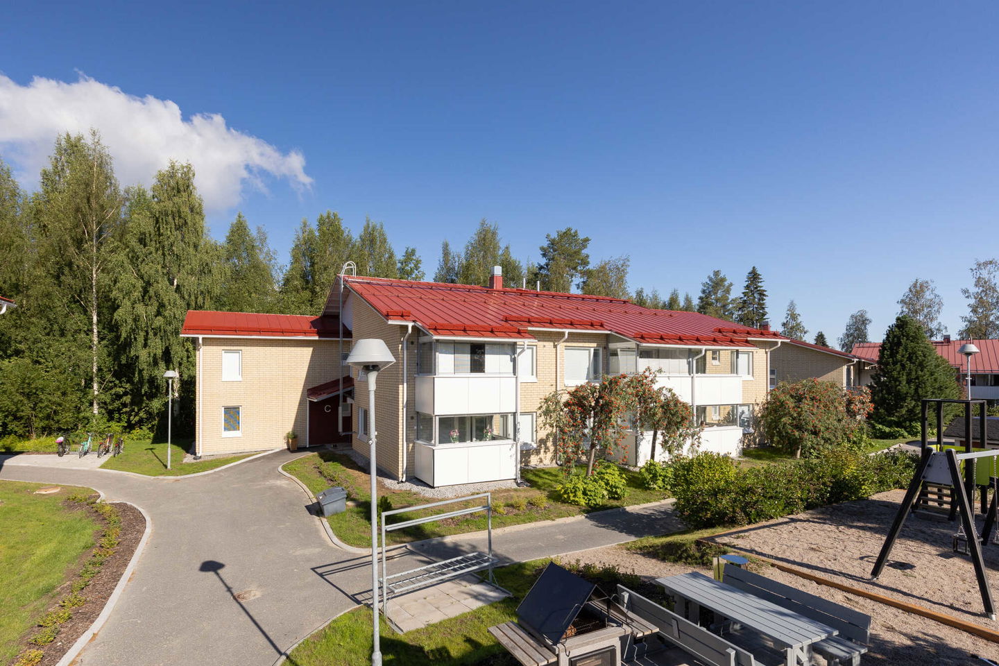 Kodikas, kylämäinen kokonaisuus kattavien palveluiden välittömässä läheisyydessä. Kohde on peruskorjattu 2020.