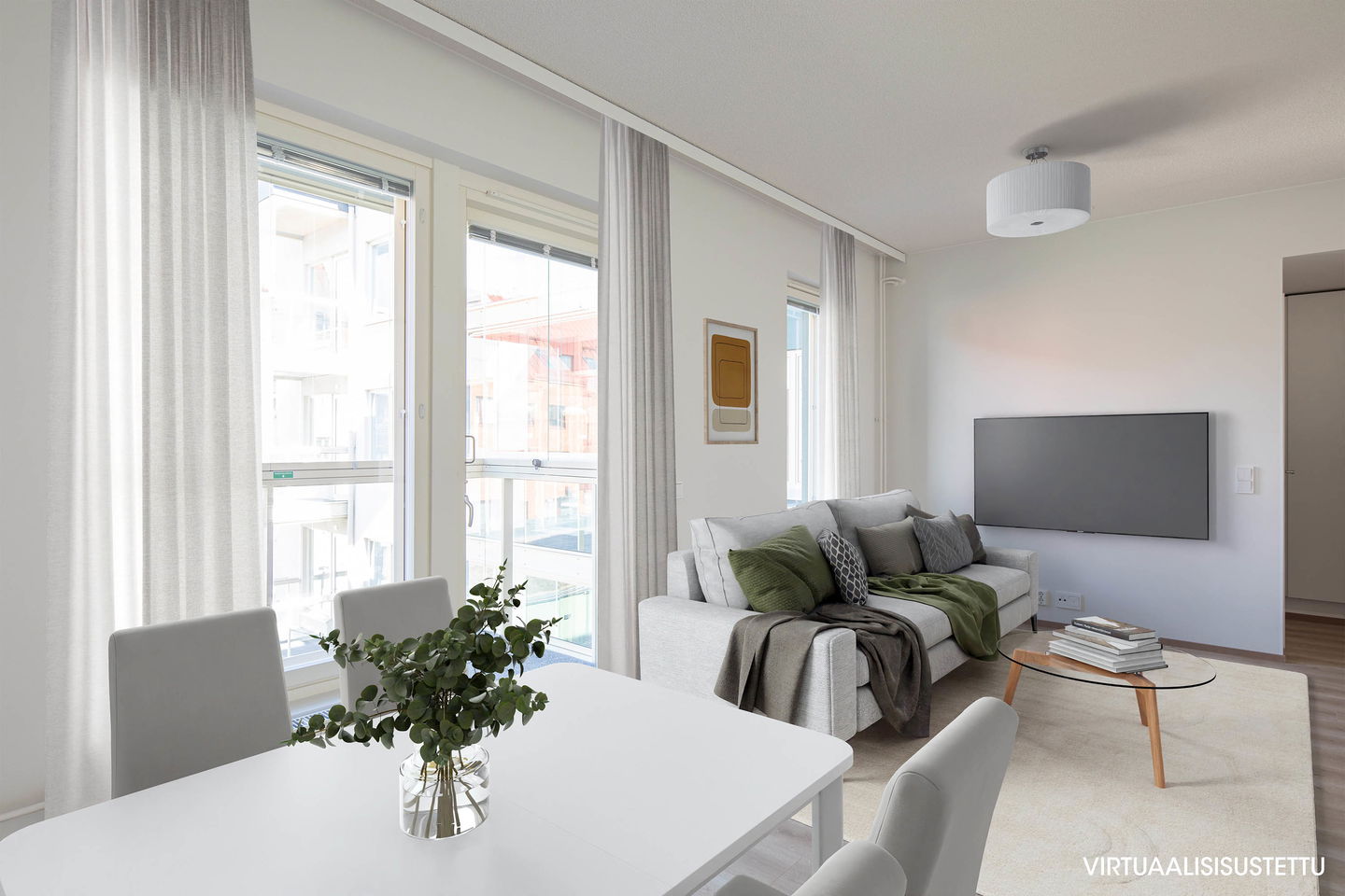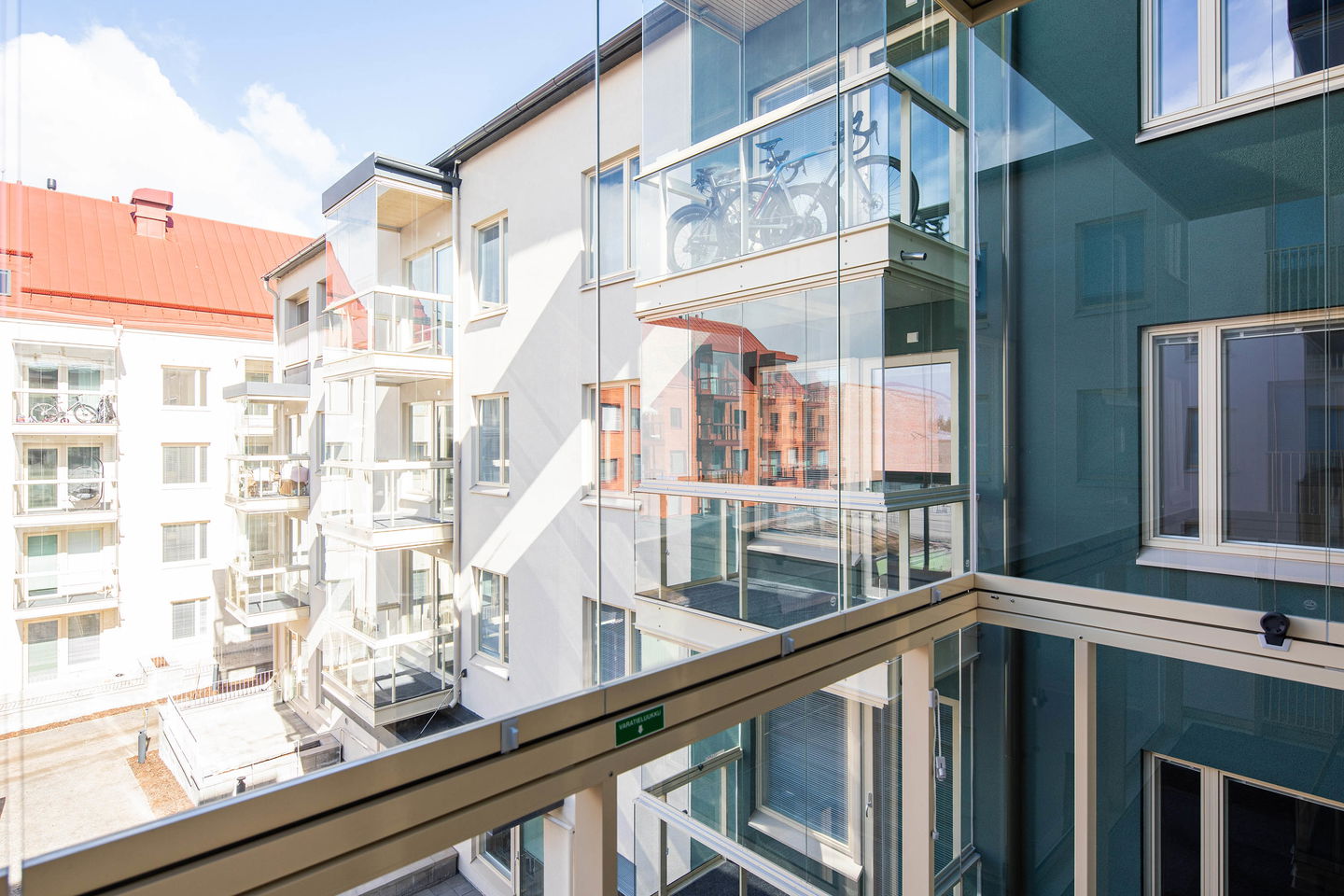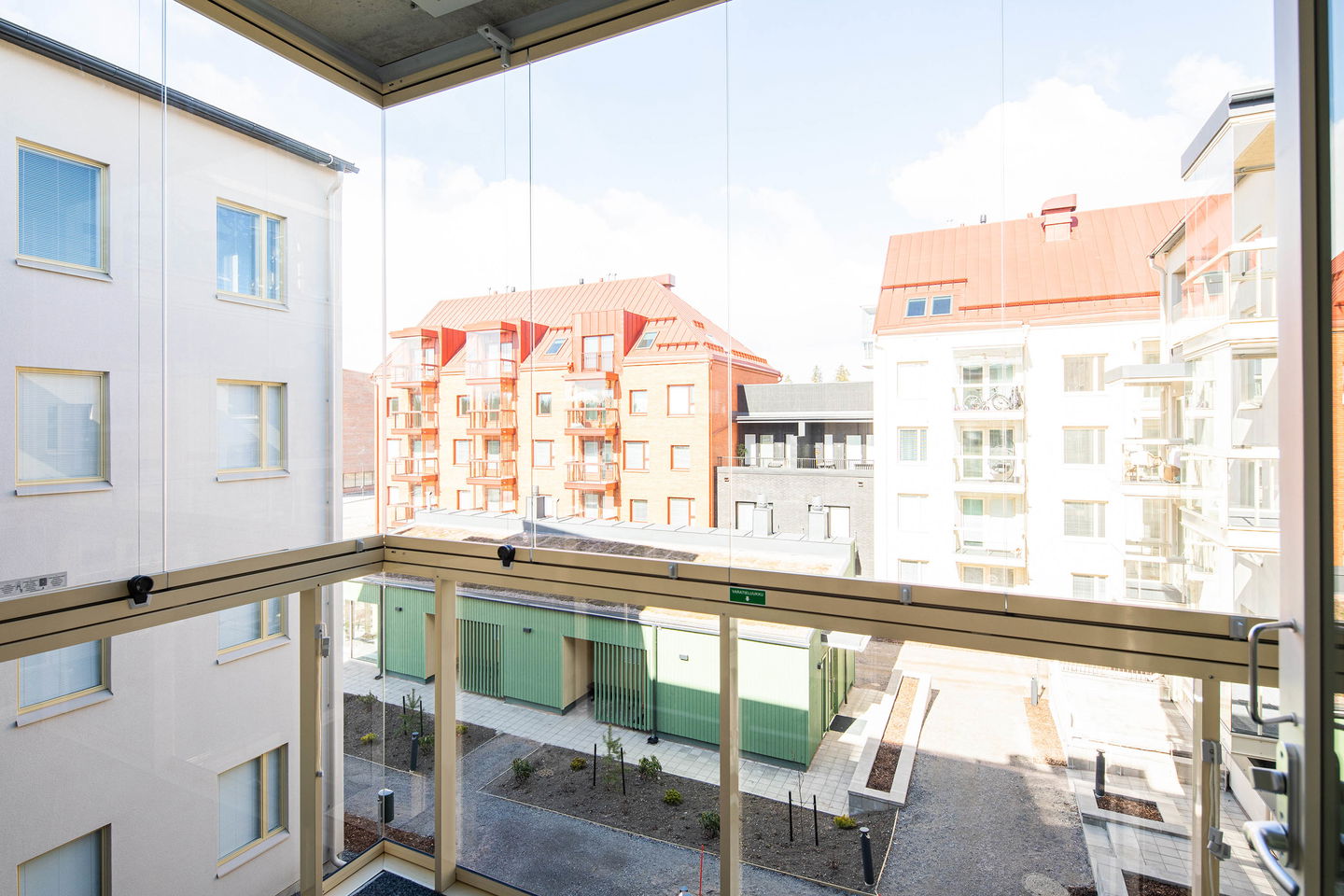 Tämä viihtyisä kaksio tarjoaa mukavaa asumista kolmannessa kerroksessa. Lasitettu parveke, joka on suojaisalle sisäpihalle päin, tuo lisää tilaa ja mahdollisuuden nauttia ulkoilmasta pitkälle syksyyn.
