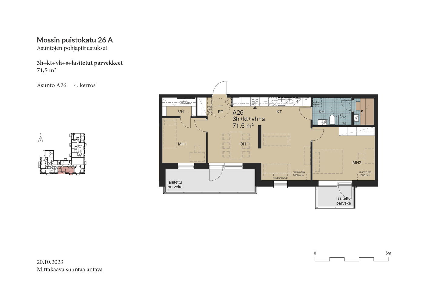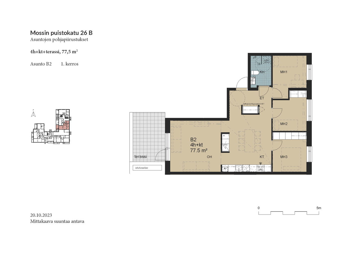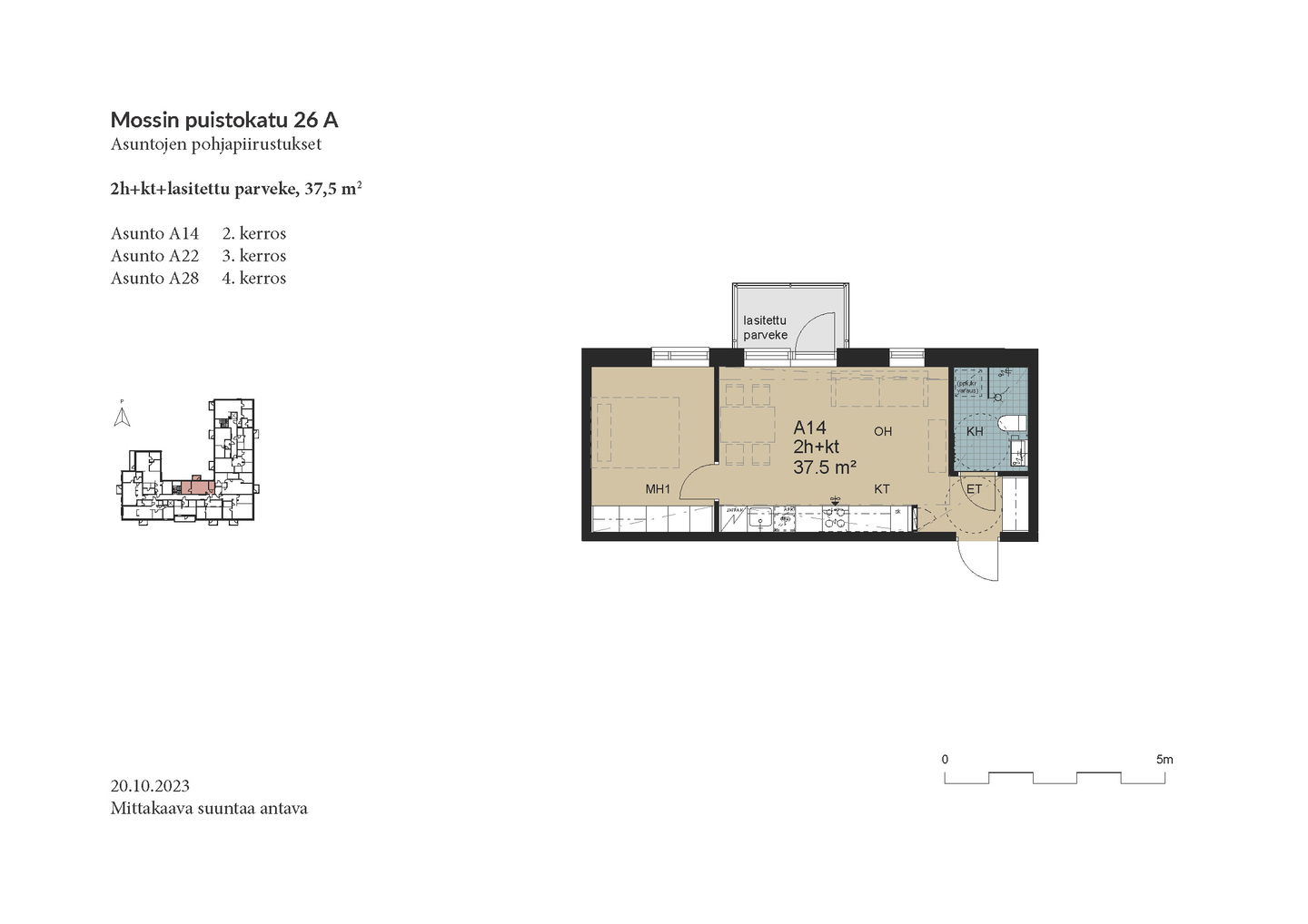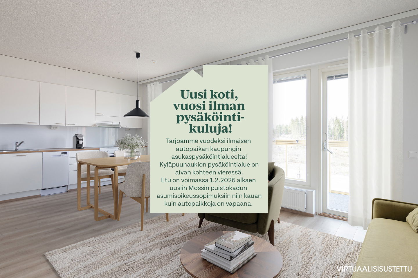 Esittely: torstai 12.2 klo 16-17 tervetuloa! Tapaaminen sisäpihalla F-rapun alaovella, tervetuloa! Tai varaa oma esittelyaikaisi: tarja.seeslahti@asuntosaatio.fi tai puh 020 161 2421 KAMPANJAETU: ILMAINEN PYSÄKÖINTI VUODEKSI! Kun teet uuden asumisoikeussopimuksen Mossin puistokadulle, Asuntosäätiö hyvittää käyttöösi Lamminrahkan asukaspysäköinnin kustannukset ensimmäisen vuoden ajalta. Kyläpuunaukion asukaspysäköintialue sijaitsee kätevästi aivan Mossin puistokadun vieressä! Etu on voimassa 1.2.2026 alkaen uusiin Mossin puistokadun asumisoikeussopimuksiin niin kauan kuin autopaikkoja on vapaana. Kysy lisää myyjältä! Kohteeseen kuuluu A-B-raput käsittävä 4-kerroksinen talo ja C-F-raput käsittävä 5-kerroksinen talo, jonka keskellä on 3-kerroksiset town house -asunnot etelään avautuvine kattoterasseineen ja omine sisäänkäynteineen. Molempien rakennusten ylimpien kerroksen asunnoissa on tunnelmalliset lapeikkunat ja viistettyä kattopintaa. Neliöihin on laskettu vain yli 160-senttinen tila, joten ylimmät asunnot ovat hieman todellisia neliöitään suuremmat. A-B-rappujen kadun puoleisella sivulla on ranskalaisia parvekkeita, muihin suuntiin olevat parvekkeet ovat lasitettuja parvekkeita. Osassa alimman kerroksen asuntoja on oma terassi, johon tulevien istutusten lisäksi suojaa tuo ylemmän kerroksen katoksena toimiva parveke. Raput C-F rajautuvat pohjoisessa Kyläpuunaukioon ja vehreään metsään. Niiden eteläpuolelle jää A-B-rappujen muodostama J:n mallinen rakennus. Talojen väliin jää suojaisa sisäpiha, jossa on istutuksia ja korttelitupa. Korttelituvassa on kerhotila, kaksi saunaa, pesutupa ja kuivaushuoneita. Kaikkiin asuntoihin kuuluu irtaimistovarasto. Kohteella on valmiina omat lämpötolpalliset autopaikat ja myöhemmin valmistuu parkkihalli. Lisäksi talomme vieressä on asukkaille asukaspysäköintimahdollisuus 20 €/kk, joka toimii eParking sovelluksella. Lamminrahkan uusi koulu liikuntapuistoineen sijaitsee kadun toisella puolella. Isot päivittäistavarakaupat ovat lyhyen ajomatkan päässä. Laajat ulkoilu- ja latureitit alkavat lähes kotiovelta. Alueelle on avattu myös koirametsä.