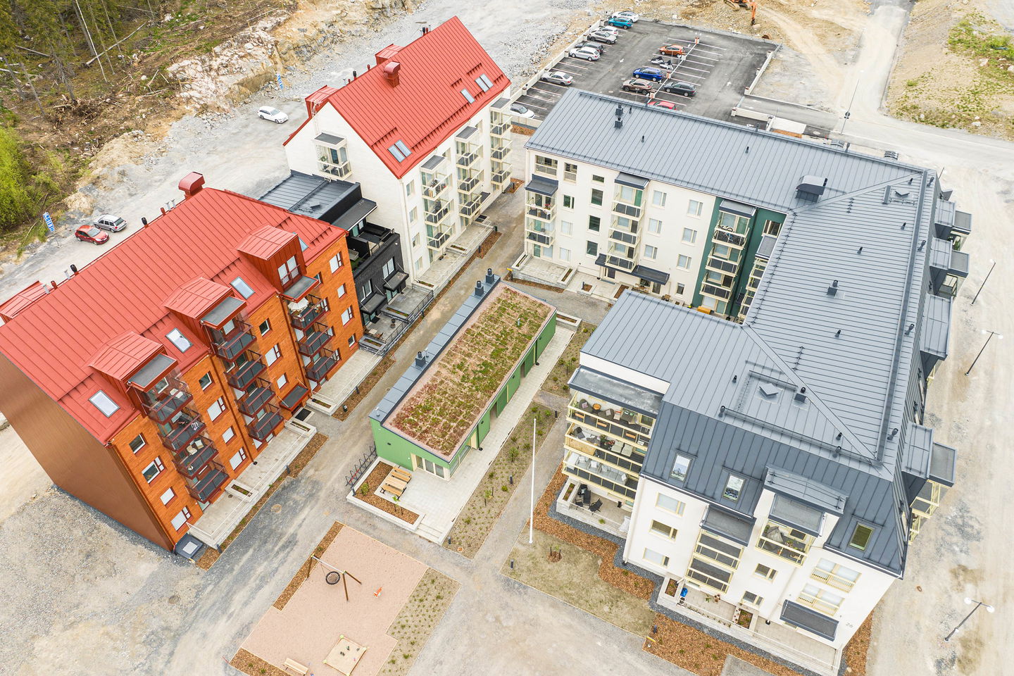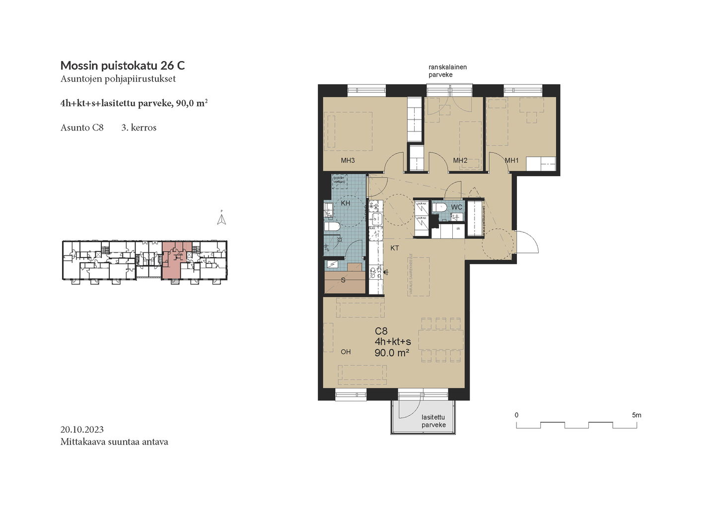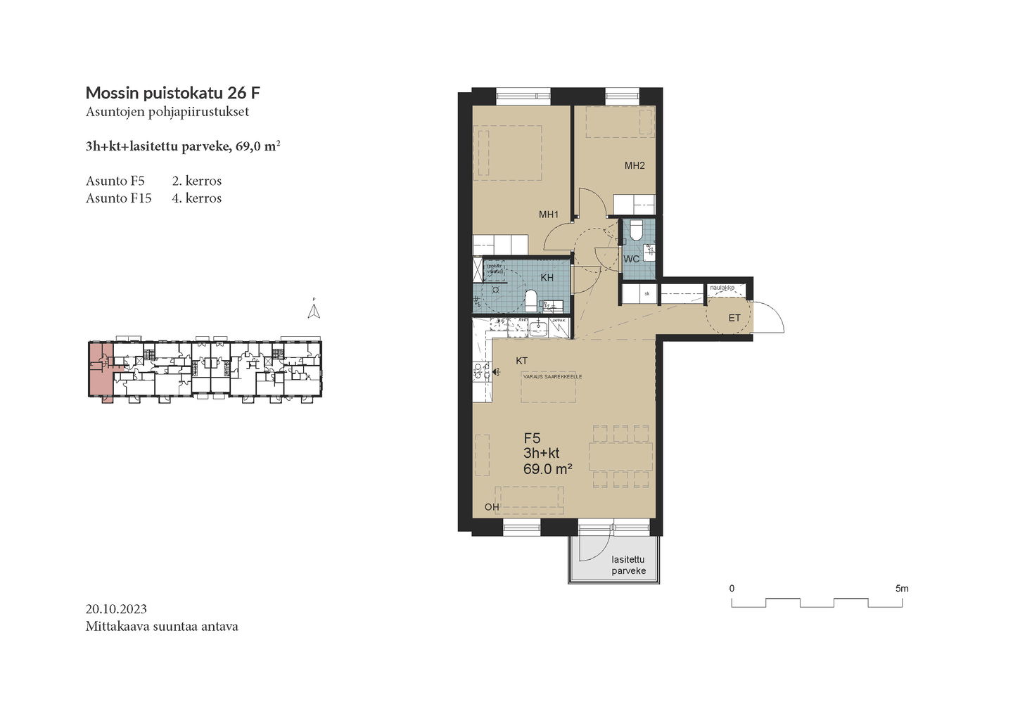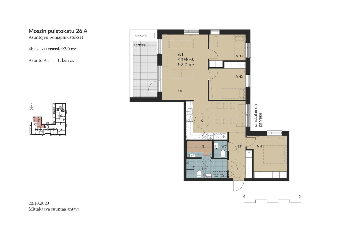 Esittely: torstai 12.2 klo 16-17 tervetuloa! Tapaaminen sisäpihalla F-rapun alaovella, tervetuloa! Tai varaa oma esittelyaikaisi: tarja.seeslahti@asuntosaatio.fi tai puh 020 161 2421 KAMPANJAETU: ILMAINEN PYSÄKÖINTI VUODEKSI! Kun teet uuden asumisoikeussopimuksen Mossin puistokadulle, Asuntosäätiö hyvittää käyttöösi Lamminrahkan asukaspysäköinnin kustannukset ensimmäisen vuoden ajalta. Kyläpuunaukion asukaspysäköintialue sijaitsee kätevästi aivan Mossin puistokadun vieressä! Etu on voimassa 1.2.2026 alkaen uusiin Mossin puistokadun asumisoikeussopimuksiin niin kauan kuin autopaikkoja on vapaana. Kysy lisää myyjältä! Kohteeseen kuuluu A-B-raput käsittävä 4-kerroksinen talo ja C-F-raput käsittävä 5-kerroksinen talo, jonka keskellä on 3-kerroksiset town house -asunnot etelään avautuvine kattoterasseineen ja omine sisäänkäynteineen. Molempien rakennusten ylimpien kerroksen asunnoissa on tunnelmalliset lapeikkunat ja viistettyä kattopintaa. Neliöihin on laskettu vain yli 160-senttinen tila, joten ylimmät asunnot ovat hieman todellisia neliöitään suuremmat. A-B-rappujen kadun puoleisella sivulla on ranskalaisia parvekkeita, muihin suuntiin olevat parvekkeet ovat lasitettuja parvekkeita. Osassa alimman kerroksen asuntoja on oma terassi, johon tulevien istutusten lisäksi suojaa tuo ylemmän kerroksen katoksena toimiva parveke. Raput C-F rajautuvat pohjoisessa Kyläpuunaukioon ja vehreään metsään. Niiden eteläpuolelle jää A-B-rappujen muodostama J:n mallinen rakennus. Talojen väliin jää suojaisa sisäpiha, jossa on istutuksia ja korttelitupa. Korttelituvassa on kerhotila, kaksi saunaa, pesutupa ja kuivaushuoneita. Kaikkiin asuntoihin kuuluu irtaimistovarasto. Kohteella on valmiina omat lämpötolpalliset autopaikat ja myöhemmin valmistuu parkkihalli. Lisäksi talomme vieressä on asukkaille asukaspysäköintimahdollisuus 20 €/kk, joka toimii eParking sovelluksella. Lamminrahkan uusi koulu liikuntapuistoineen sijaitsee kadun toisella puolella. Isot päivittäistavarakaupat ovat lyhyen ajomatkan päässä. Laajat ulkoilu- ja latureitit alkavat lähes kotiovelta. Alueelle on avattu myös koirametsä.