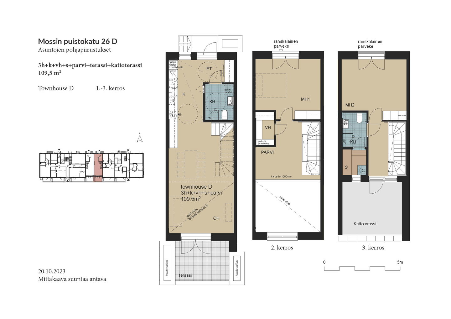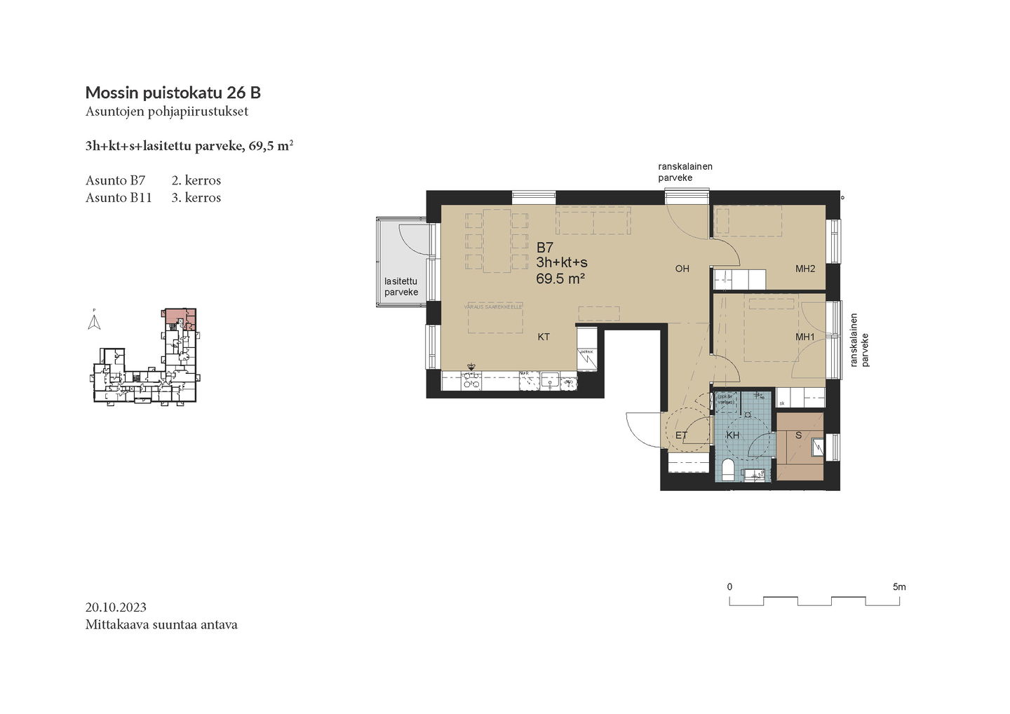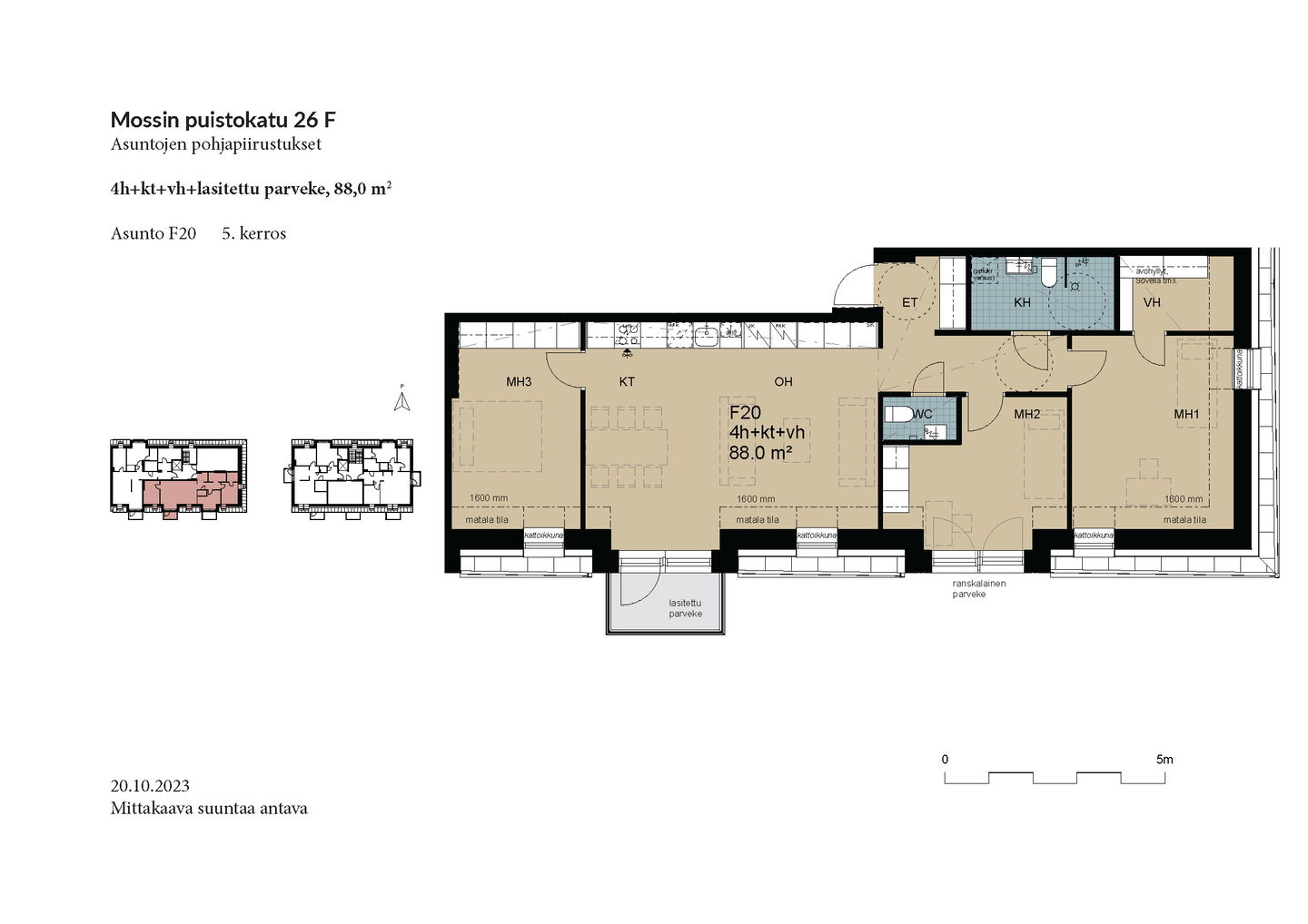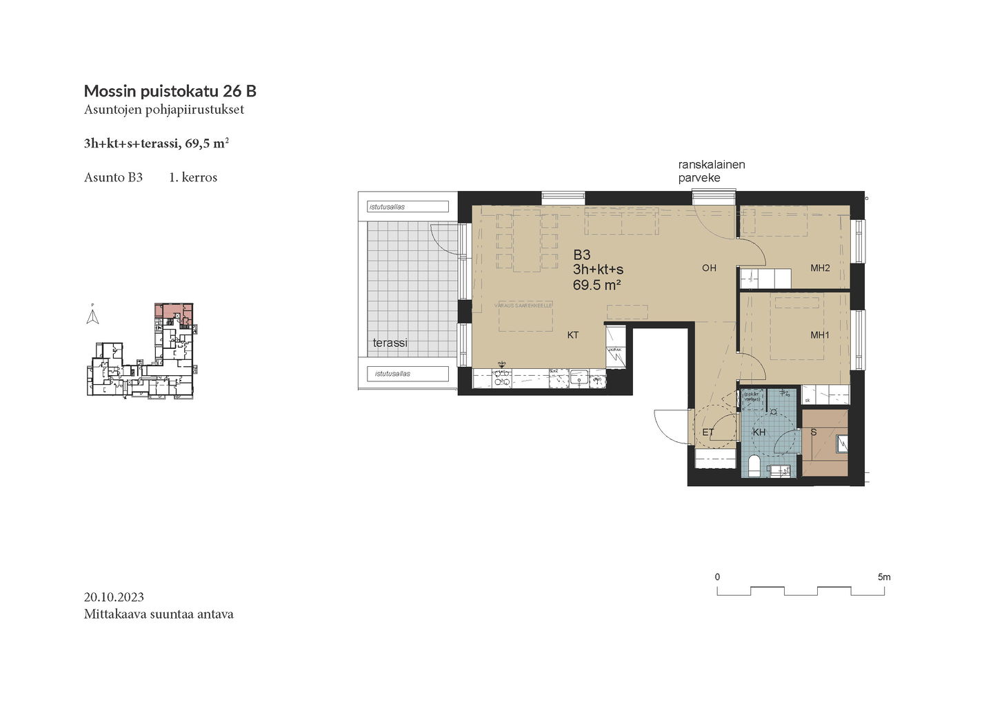 Esittely: torstai 12.2 klo 16-17 tervetuloa! Tapaaminen sisäpihalla F-rapun alaovella, tervetuloa! Tai varaa oma esittelyaikaisi: tarja.seeslahti@asuntosaatio.fi tai puh 020 161 2421 KAMPANJAETU: ILMAINEN PYSÄKÖINTI VUODEKSI! Kun teet uuden asumisoikeussopimuksen Mossin puistokadulle, Asuntosäätiö hyvittää käyttöösi Lamminrahkan asukaspysäköinnin kustannukset ensimmäisen vuoden ajalta. Kyläpuunaukion asukaspysäköintialue sijaitsee kätevästi aivan Mossin puistokadun vieressä! Etu on voimassa 1.2.2026 alkaen uusiin Mossin puistokadun asumisoikeussopimuksiin niin kauan kuin autopaikkoja on vapaana. Kysy lisää myyjältä! Kohteeseen kuuluu A-B-raput käsittävä 4-kerroksinen talo ja C-F-raput käsittävä 5-kerroksinen talo, jonka keskellä on 3-kerroksiset town house -asunnot etelään avautuvine kattoterasseineen ja omine sisäänkäynteineen. Molempien rakennusten ylimpien kerroksen asunnoissa on tunnelmalliset lapeikkunat ja viistettyä kattopintaa. Neliöihin on laskettu vain yli 160-senttinen tila, joten ylimmät asunnot ovat hieman todellisia neliöitään suuremmat. A-B-rappujen kadun puoleisella sivulla on ranskalaisia parvekkeita, muihin suuntiin olevat parvekkeet ovat lasitettuja parvekkeita. Osassa alimman kerroksen asuntoja on oma terassi, johon tulevien istutusten lisäksi suojaa tuo ylemmän kerroksen katoksena toimiva parveke. Raput C-F rajautuvat pohjoisessa Kyläpuunaukioon ja vehreään metsään. Niiden eteläpuolelle jää A-B-rappujen muodostama J:n mallinen rakennus. Talojen väliin jää suojaisa sisäpiha, jossa on istutuksia ja korttelitupa. Korttelituvassa on kerhotila, kaksi saunaa, pesutupa ja kuivaushuoneita. Kaikkiin asuntoihin kuuluu irtaimistovarasto. Kohteella on valmiina omat lämpötolpalliset autopaikat ja myöhemmin valmistuu parkkihalli. Lisäksi talomme vieressä on asukkaille asukaspysäköintimahdollisuus 20 €/kk, joka toimii eParking sovelluksella. Lamminrahkan uusi koulu liikuntapuistoineen sijaitsee kadun toisella puolella. Isot päivittäistavarakaupat ovat lyhyen ajomatkan päässä. Laajat ulkoilu- ja latureitit alkavat lähes kotiovelta. Alueelle on avattu myös koirametsä.