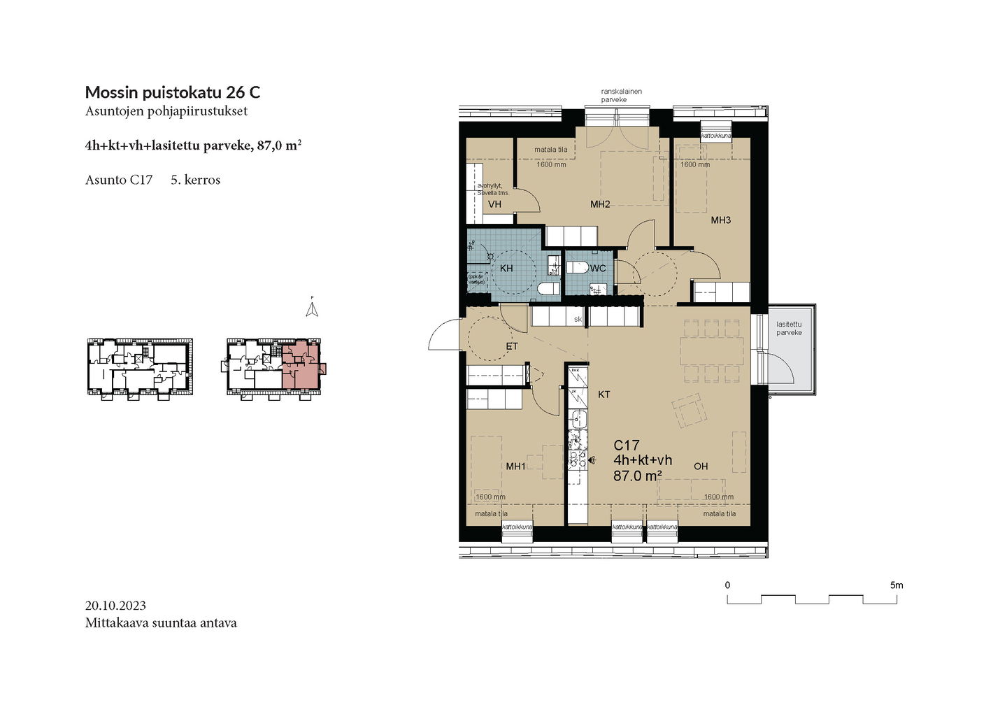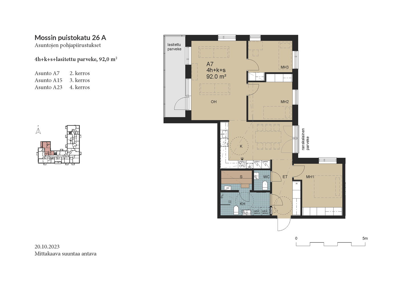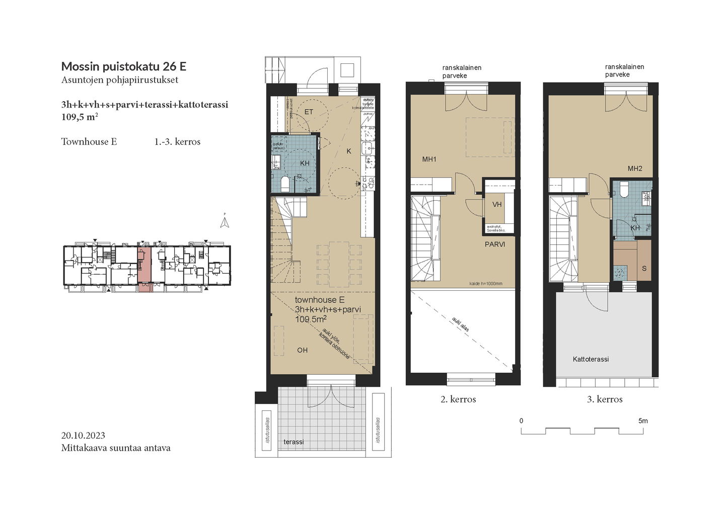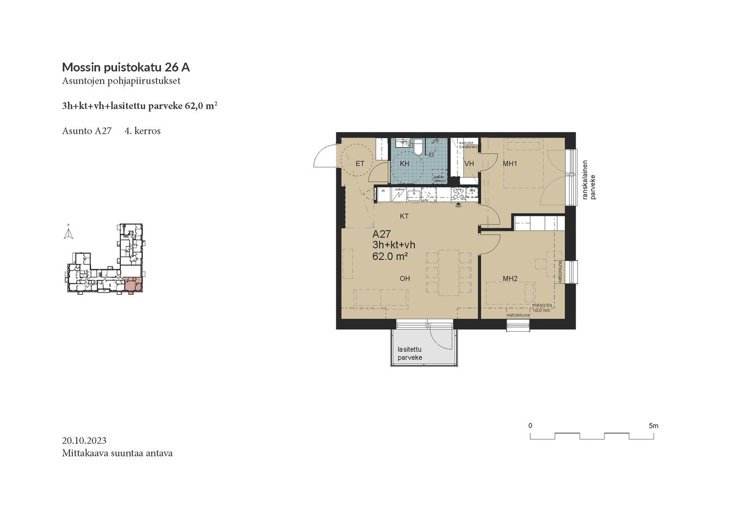Esittely: torstai 12.2 klo 16-17 tervetuloa! Tapaaminen sisäpihalla F-rapun alaovella, tervetuloa! Tai varaa oma esittelyaikaisi: tarja.seeslahti@asuntosaatio.fi tai puh 020 161 2421 KAMPANJAETU: ILMAINEN PYSÄKÖINTI VUODEKSI! Kun teet uuden asumisoikeussopimuksen Mossin puistokadulle, Asuntosäätiö hyvittää käyttöösi Lamminrahkan asukaspysäköinnin kustannukset ensimmäisen vuoden ajalta. Kyläpuunaukion asukaspysäköintialue sijaitsee kätevästi aivan Mossin puistokadun vieressä! Etu on voimassa 1.2.2026 alkaen uusiin Mossin puistokadun asumisoikeussopimuksiin niin kauan kuin autopaikkoja on vapaana. Kysy lisää myyjältä! Kohteeseen kuuluu A-B-raput käsittävä 4-kerroksinen talo ja C-F-raput käsittävä 5-kerroksinen talo, jonka keskellä on 3-kerroksiset town house -asunnot etelään avautuvine kattoterasseineen ja omine sisäänkäynteineen. Molempien rakennusten ylimpien kerroksen asunnoissa on tunnelmalliset lapeikkunat ja viistettyä kattopintaa. Neliöihin on laskettu vain yli 160-senttinen tila, joten ylimmät asunnot ovat hieman todellisia neliöitään suuremmat. A-B-rappujen kadun puoleisella sivulla on ranskalaisia parvekkeita, muihin suuntiin olevat parvekkeet ovat lasitettuja parvekkeita. Osassa alimman kerroksen asuntoja on oma terassi, johon tulevien istutusten lisäksi suojaa tuo ylemmän kerroksen katoksena toimiva parveke. Raput C-F rajautuvat pohjoisessa Kyläpuunaukioon ja vehreään metsään. Niiden eteläpuolelle jää A-B-rappujen muodostama J:n mallinen rakennus. Talojen väliin jää suojaisa sisäpiha, jossa on istutuksia ja korttelitupa. Korttelituvassa on kerhotila, kaksi saunaa, pesutupa ja kuivaushuoneita. Kaikkiin asuntoihin kuuluu irtaimistovarasto. Kohteella on valmiina omat lämpötolpalliset autopaikat ja myöhemmin valmistuu parkkihalli. Lisäksi talomme vieressä on asukkaille asukaspysäköintimahdollisuus 20 €/kk, joka toimii eParking sovelluksella. Lamminrahkan uusi koulu liikuntapuistoineen sijaitsee kadun toisella puolella. Isot päivittäistavarakaupat ovat lyhyen ajomatkan päässä. Laajat ulkoilu- ja latureitit alkavat lähes kotiovelta. Alueelle on avattu myös koirametsä.